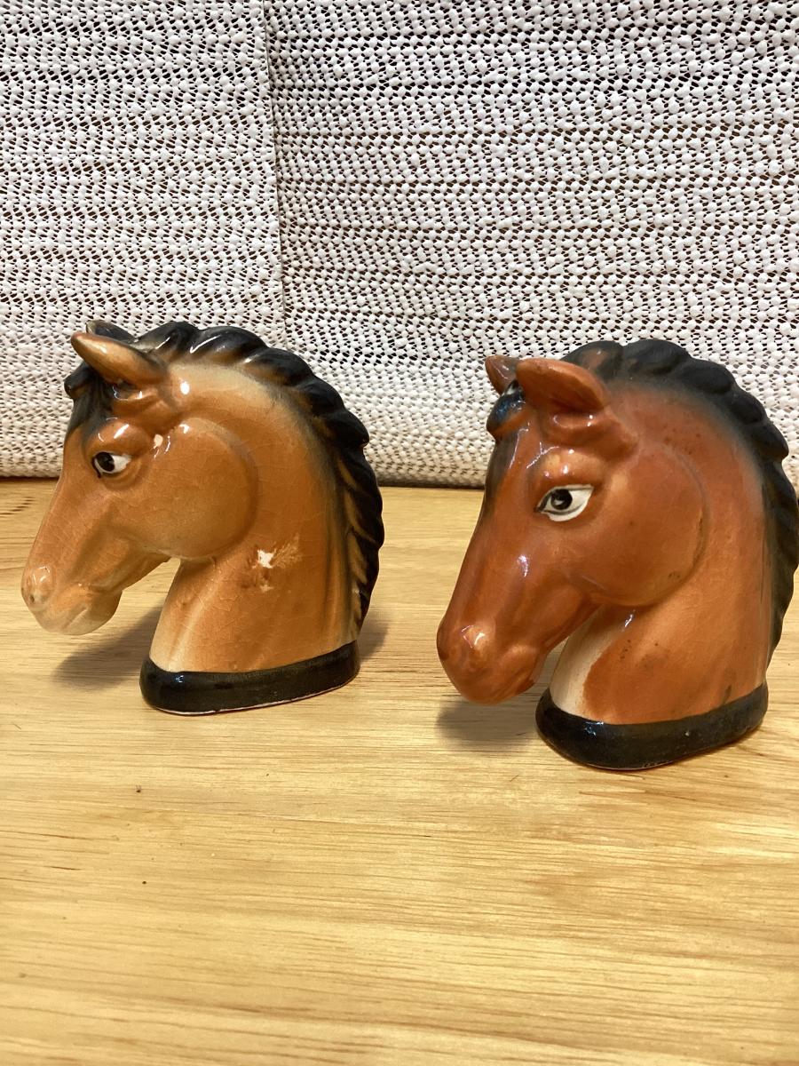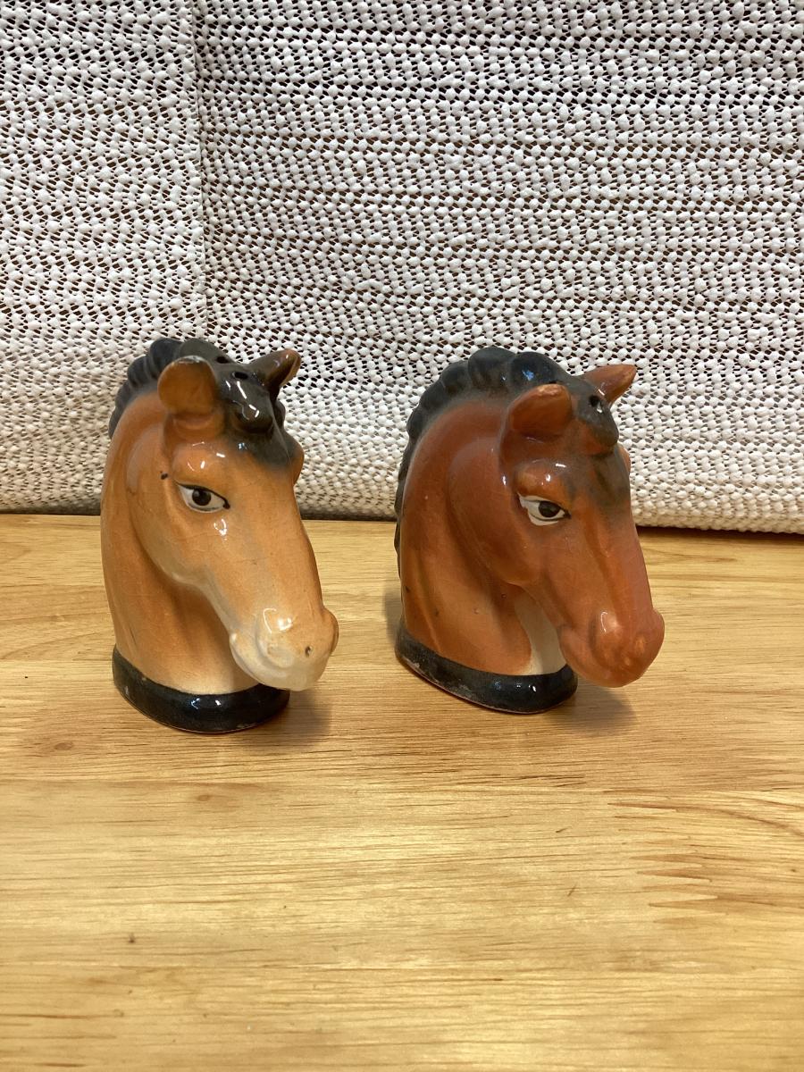 vintage ceramic horse head salt and pepper shakers