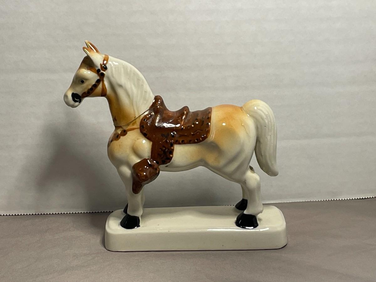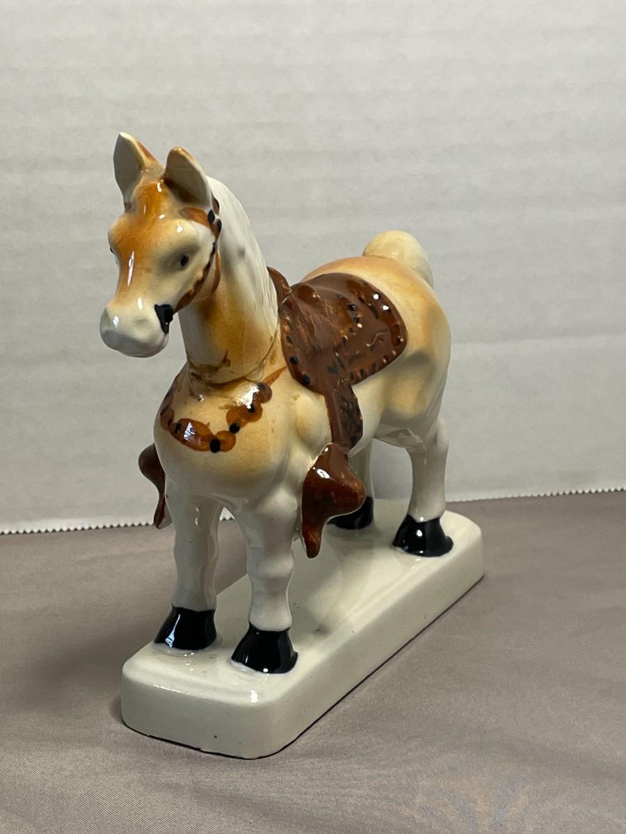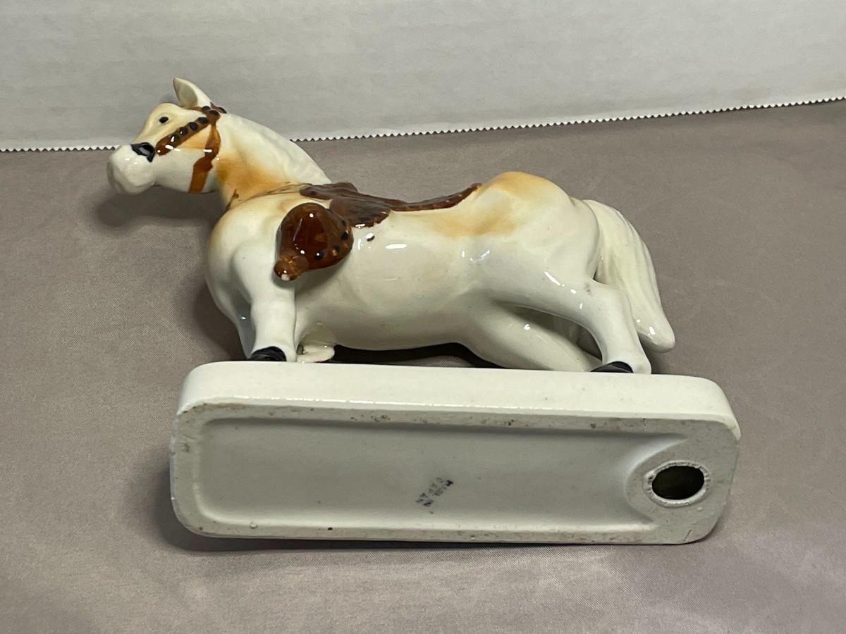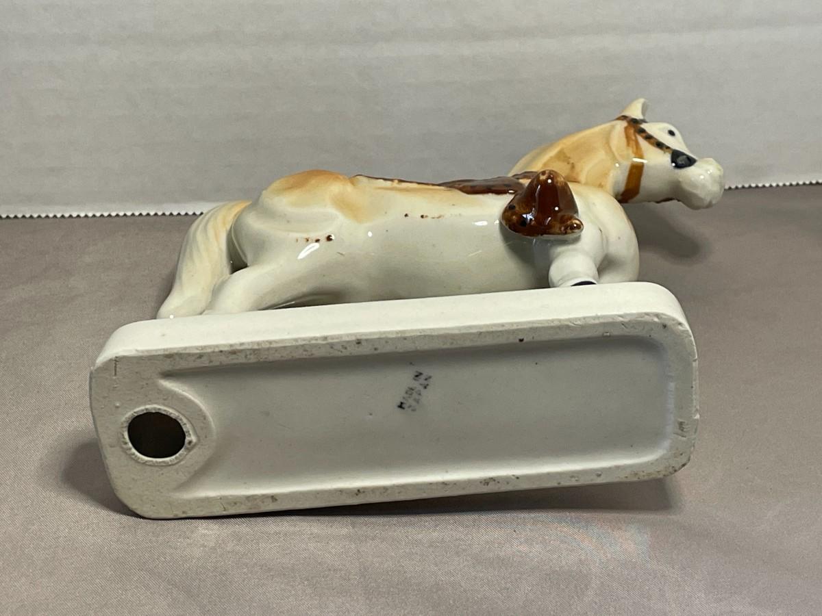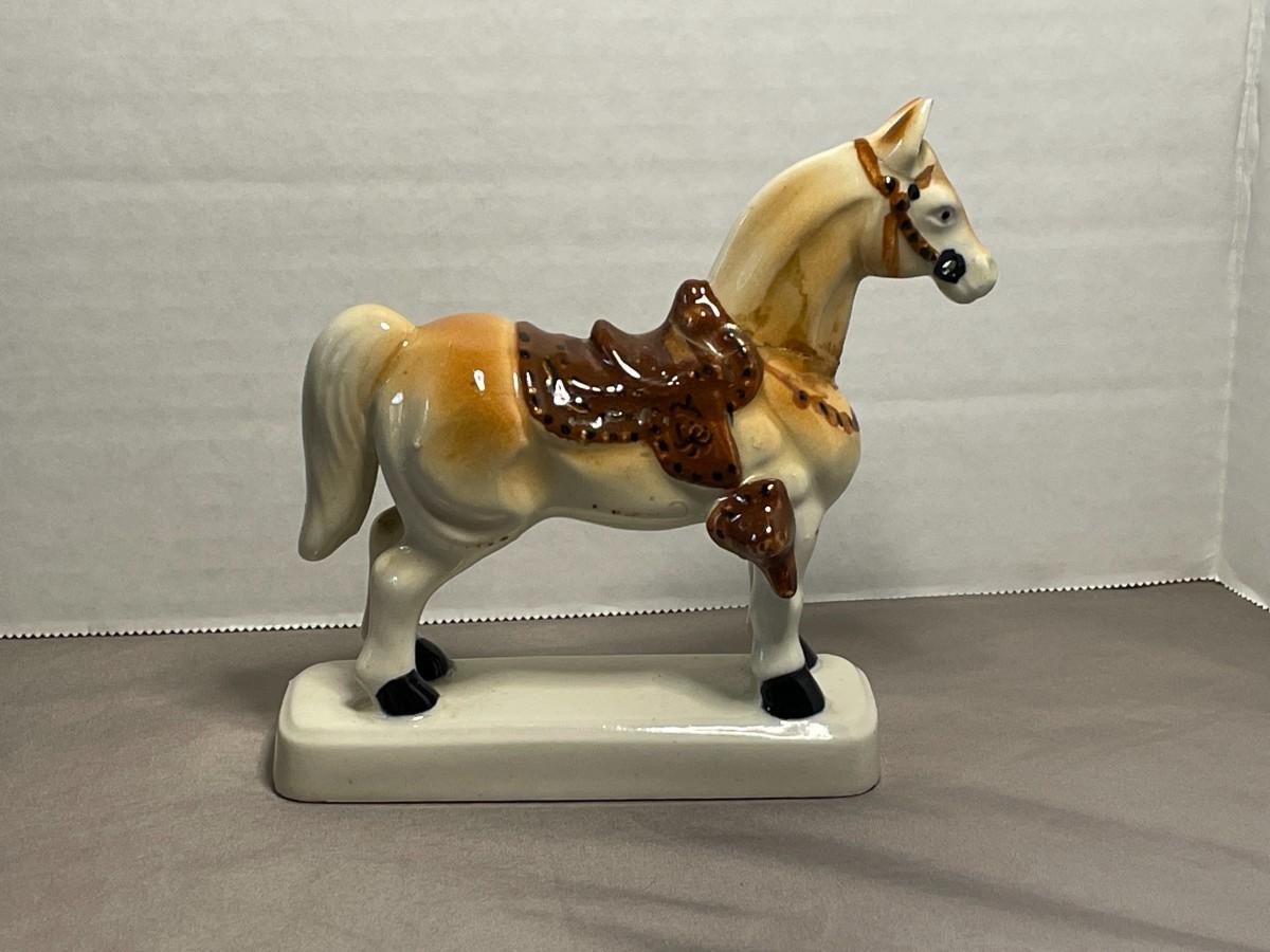 I found another horse that looked very similar to this gorgeous one that was identified as Enesco, but I'm not sure if this one is also Enesco. It is marked in black ink Made in Japan and I don't see any other identifying marks. No issues noted, the horse stands about 5.75 inches at the highest point and is about 5.5 inches long.