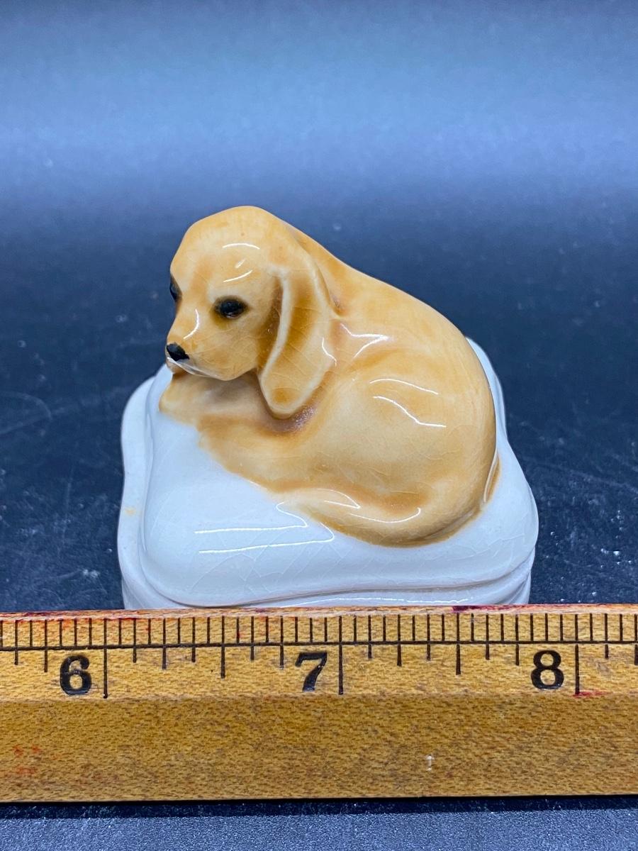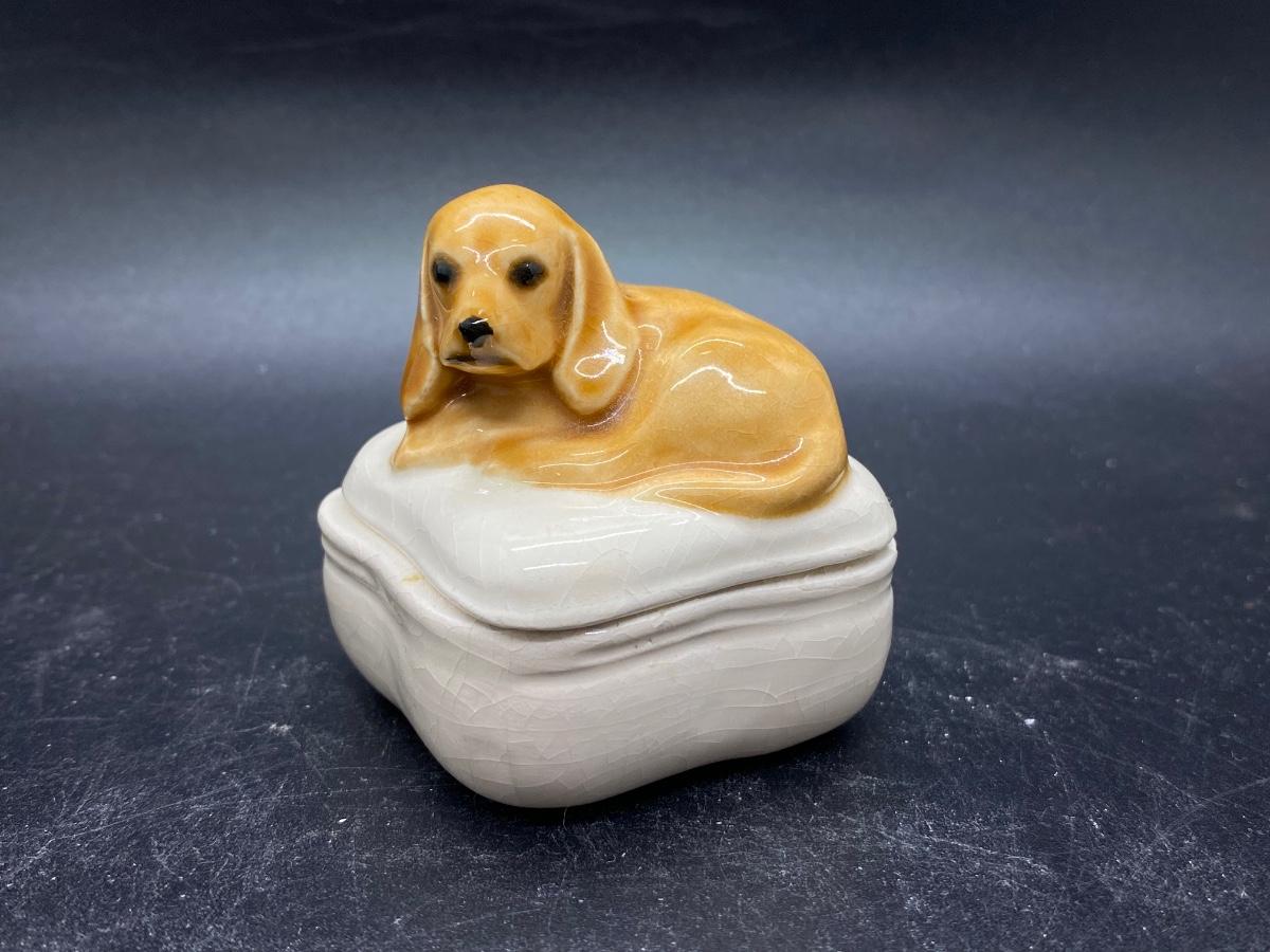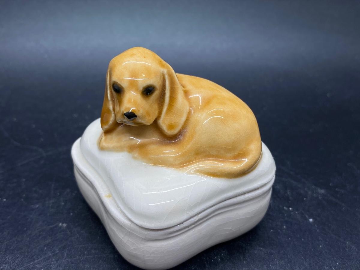 Vintage Ceramic Lidded Trinket Dish with Puppy on Top