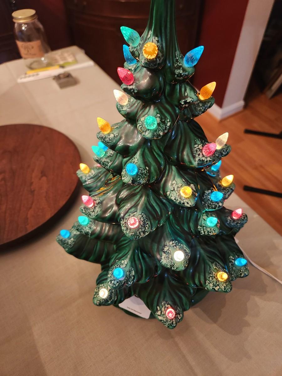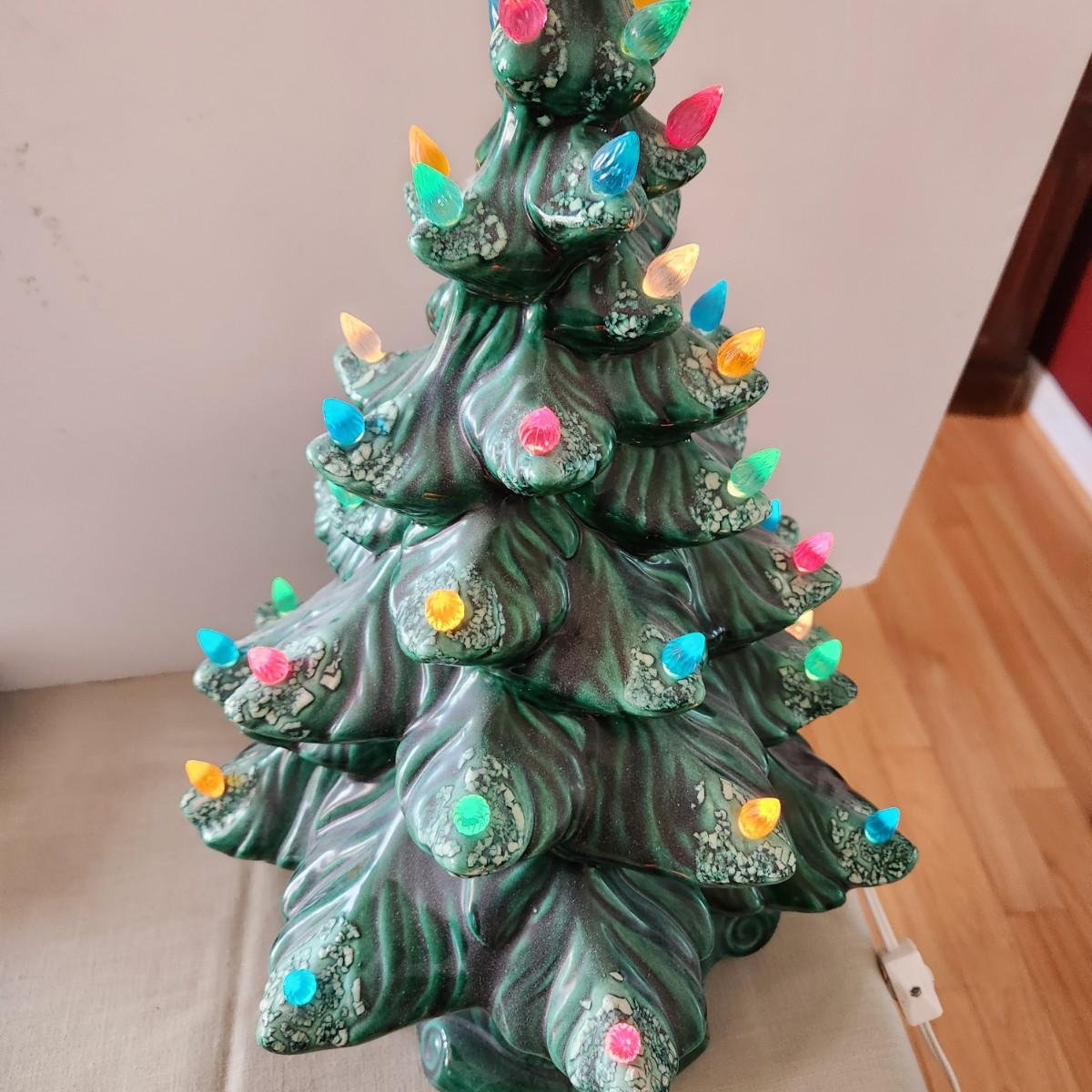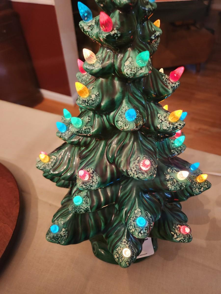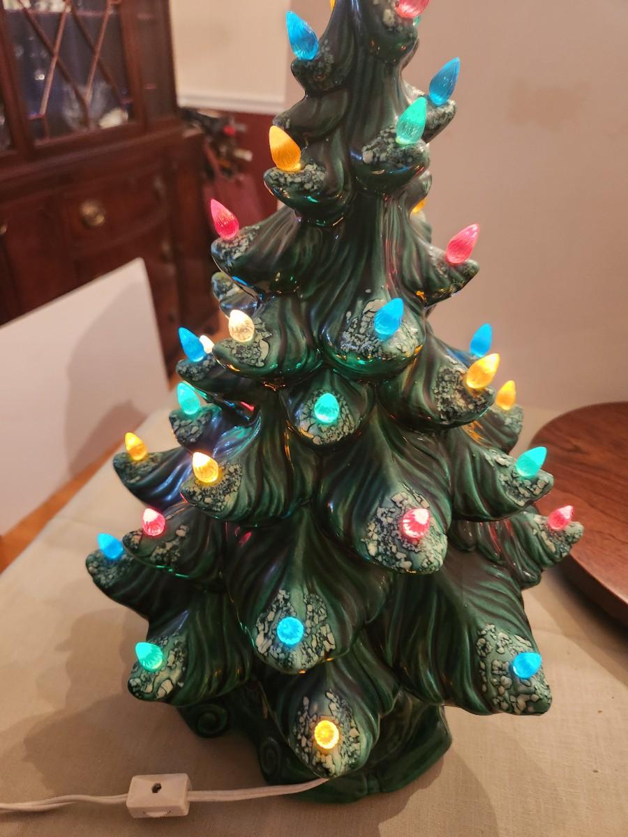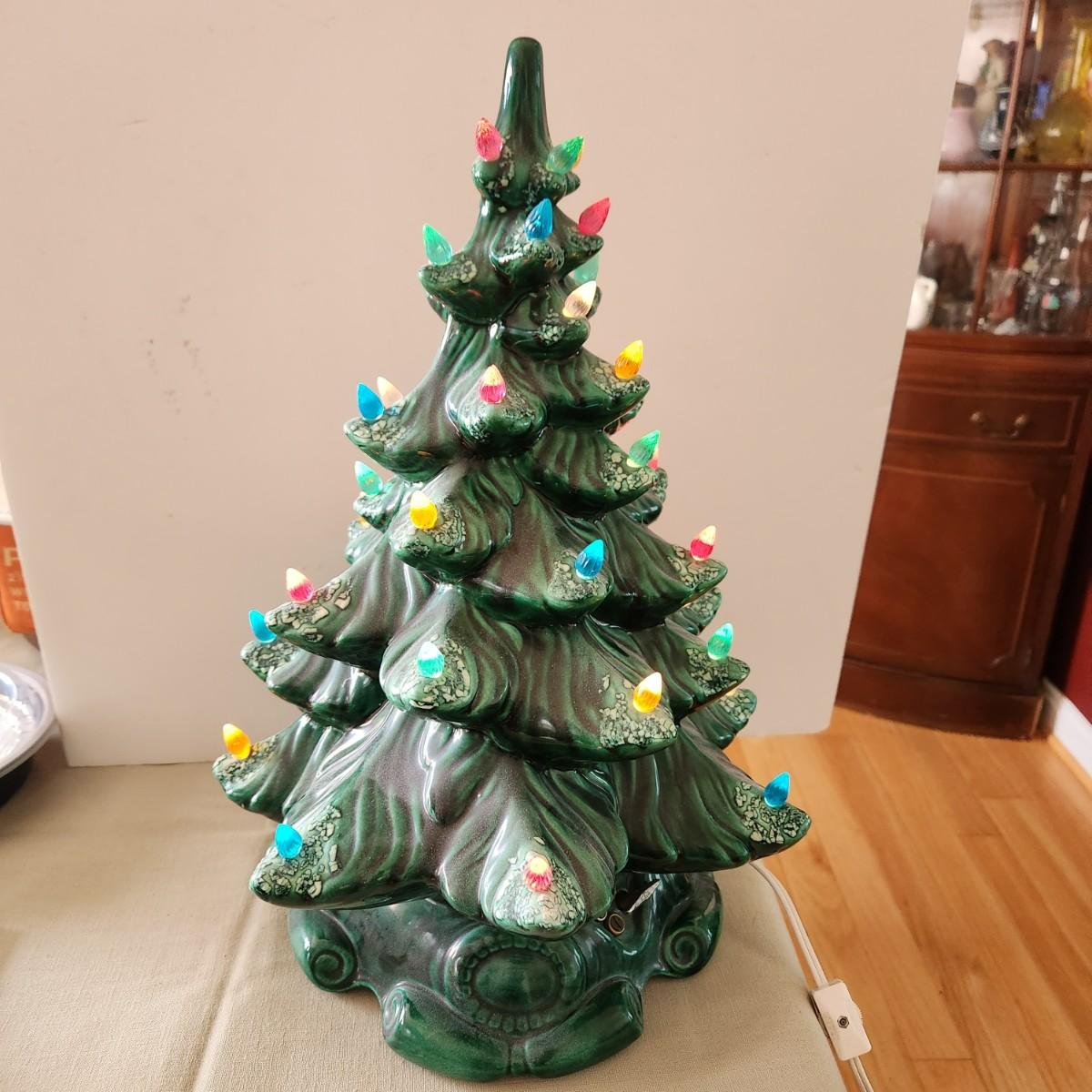 Vintage Ceramic Lighted Christmas Tree w music box 16" tall