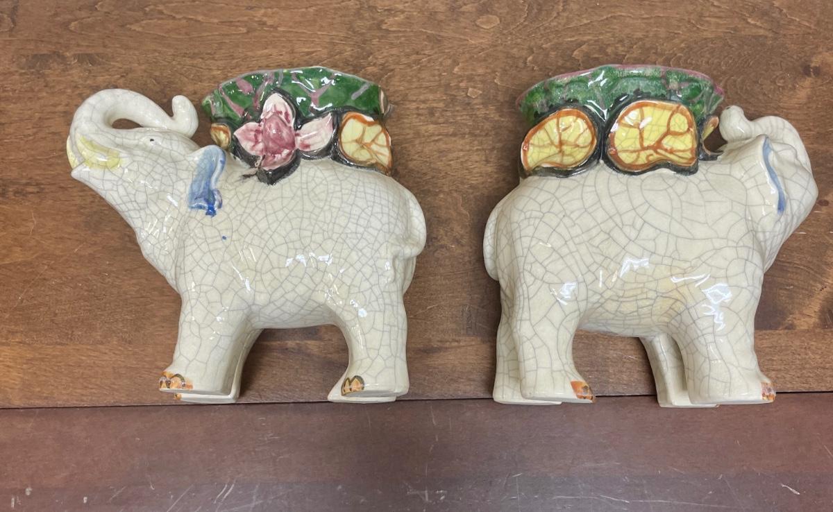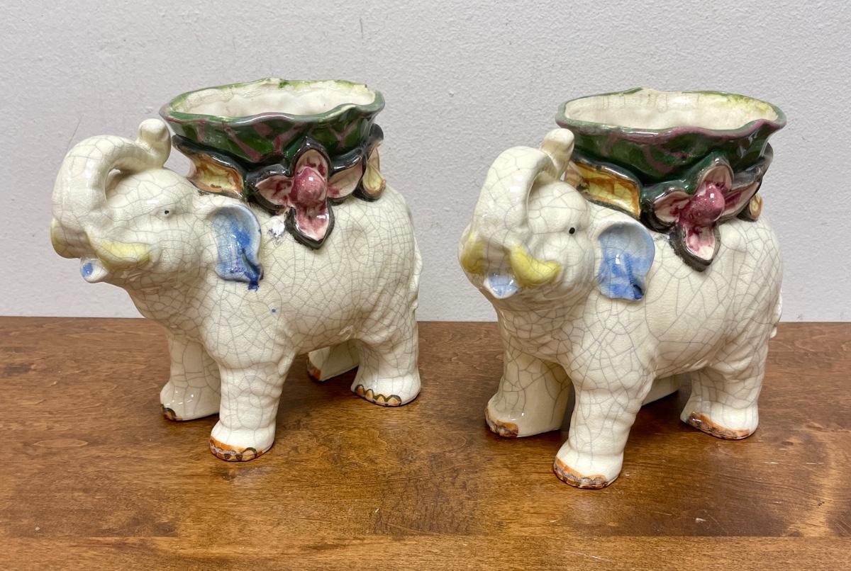 Vintage Ceramic Lucky Elephant Planter Vase Pair Japan