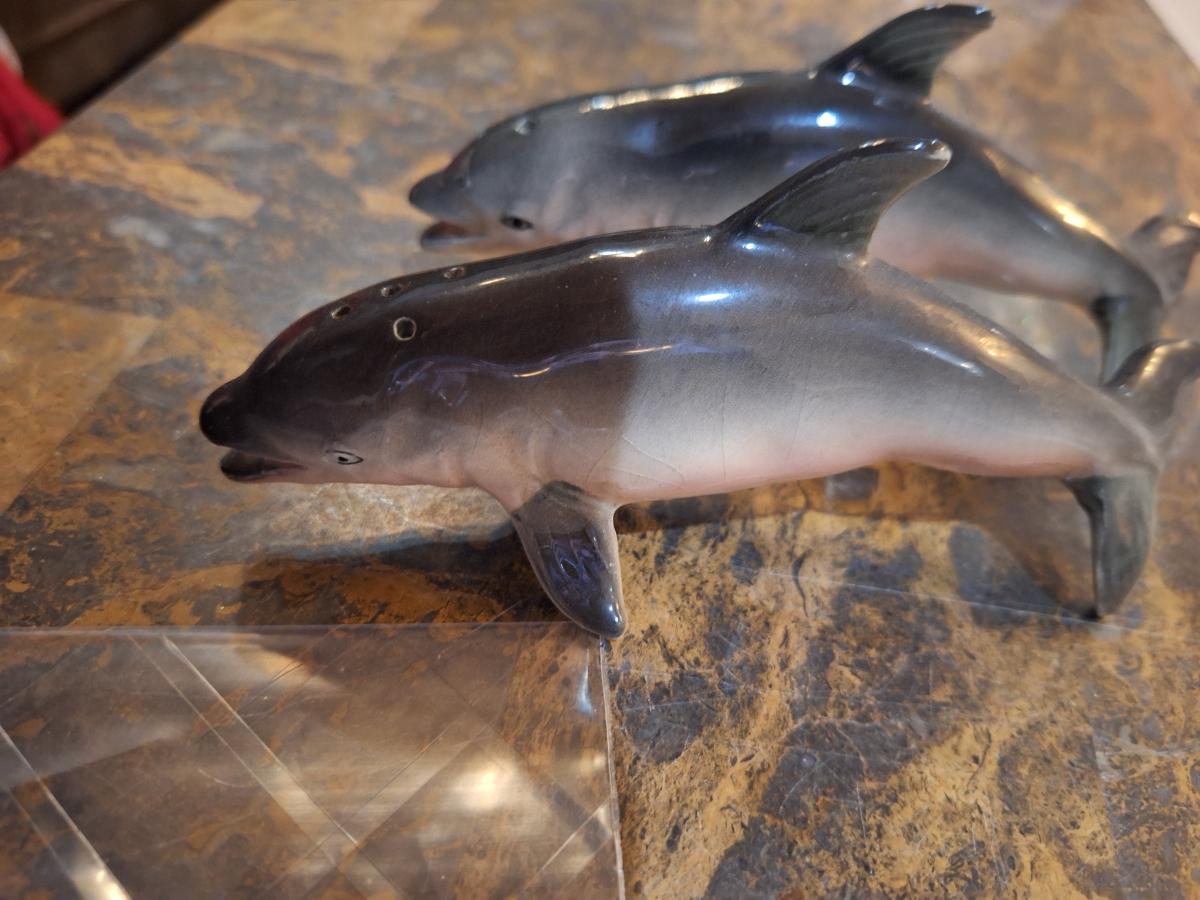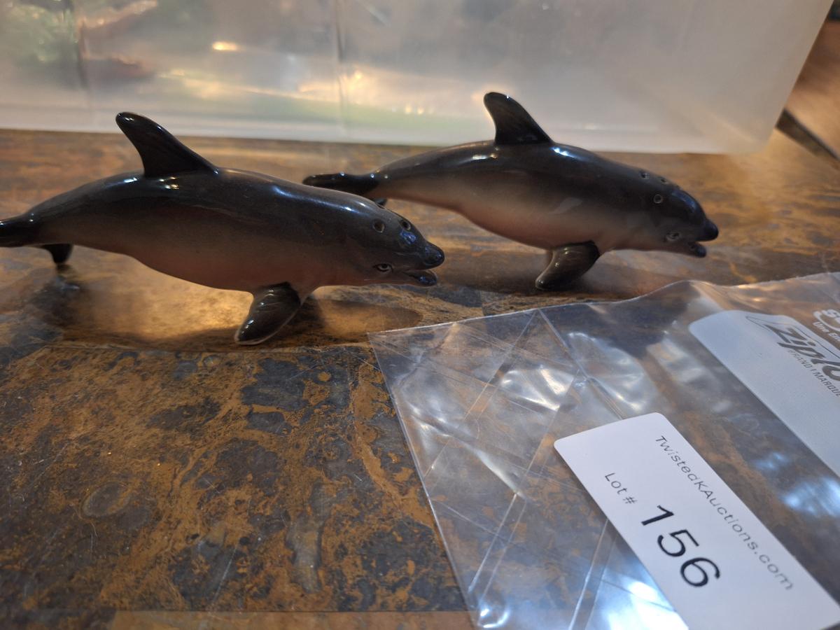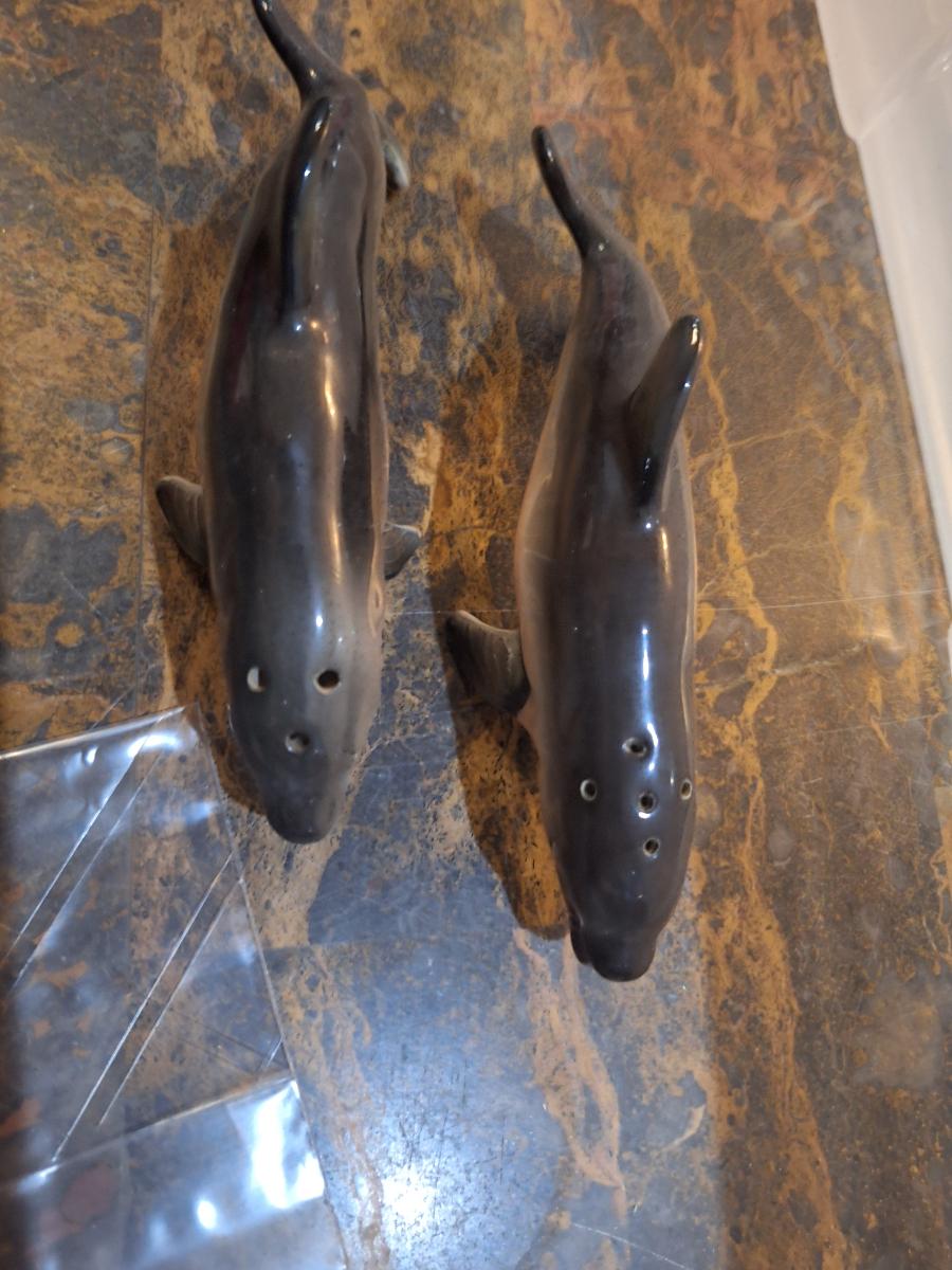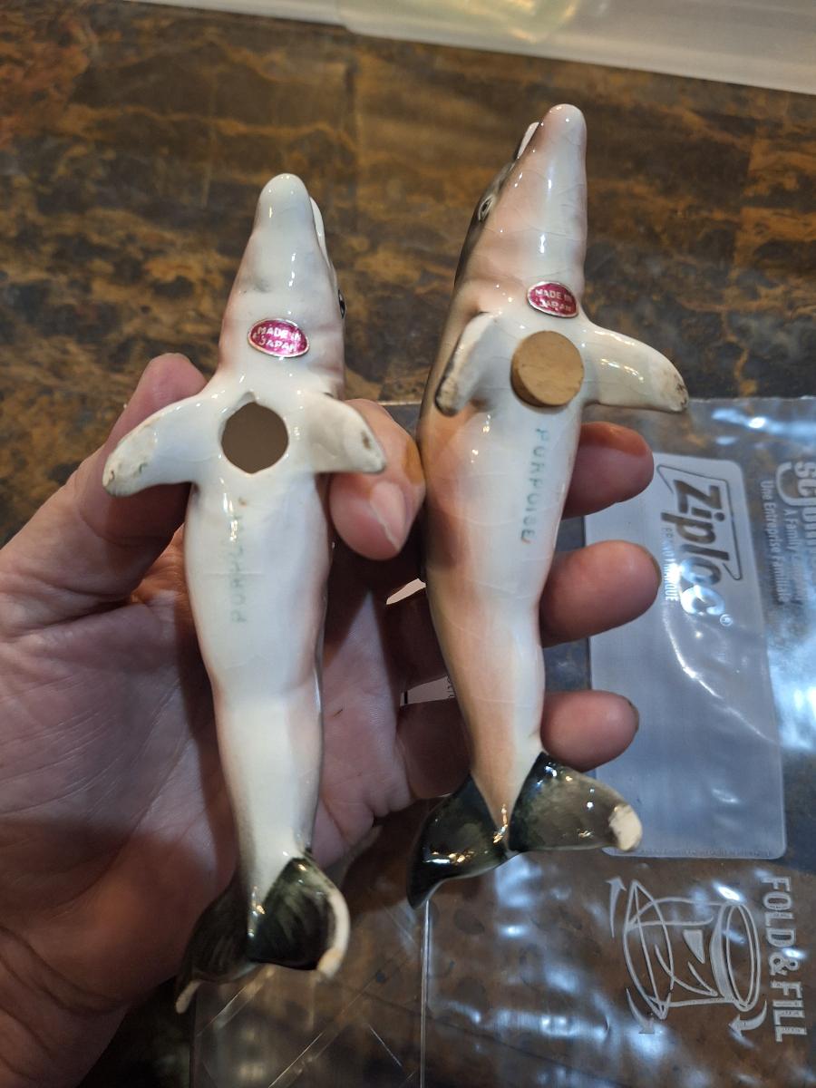 vintage ceramic or porcelain dolphin salt and pepper shakers.