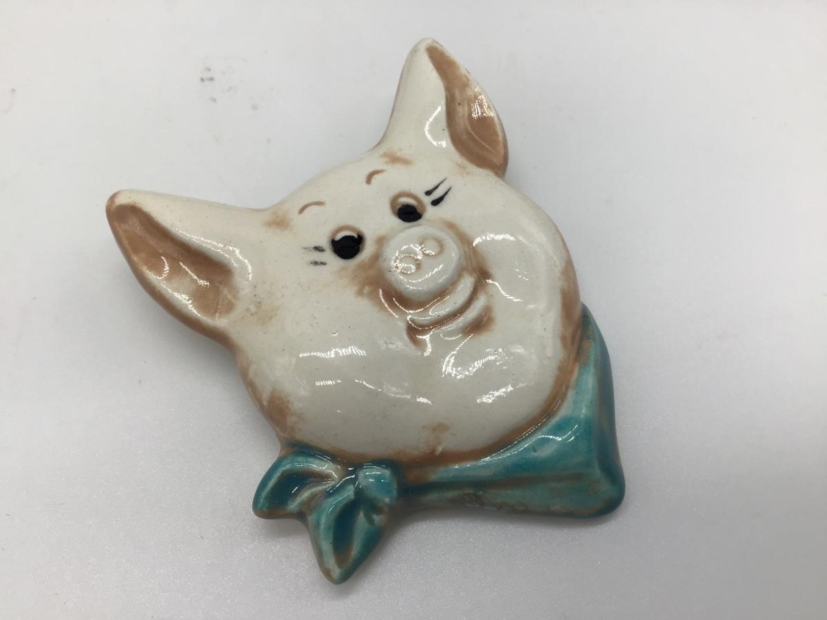 Vintage Ceramic pig Brooch
