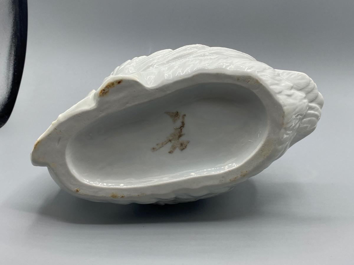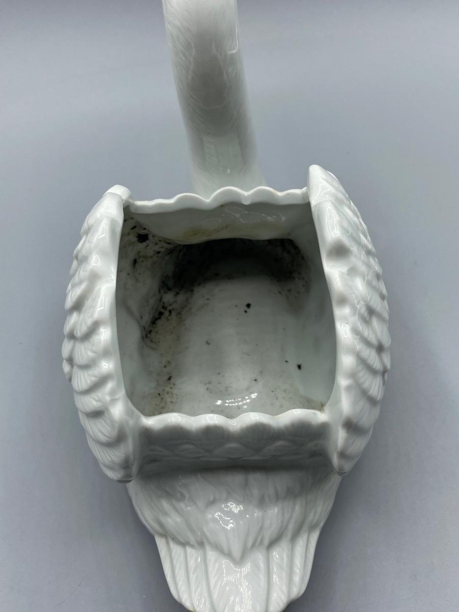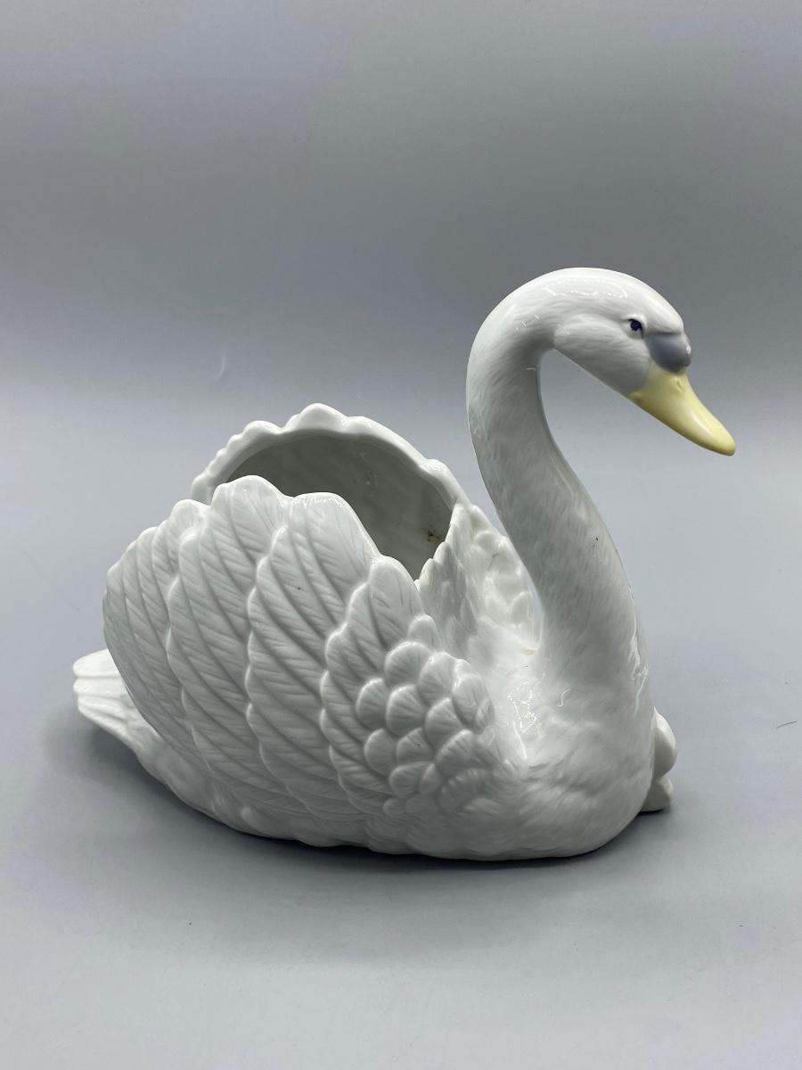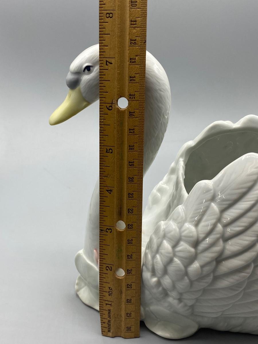 Vintage swan shaped planter pot. White ceramic with pale details. In good condition. Unbranded. Inside needs to be cleaned a little from previous use. About 8" size.