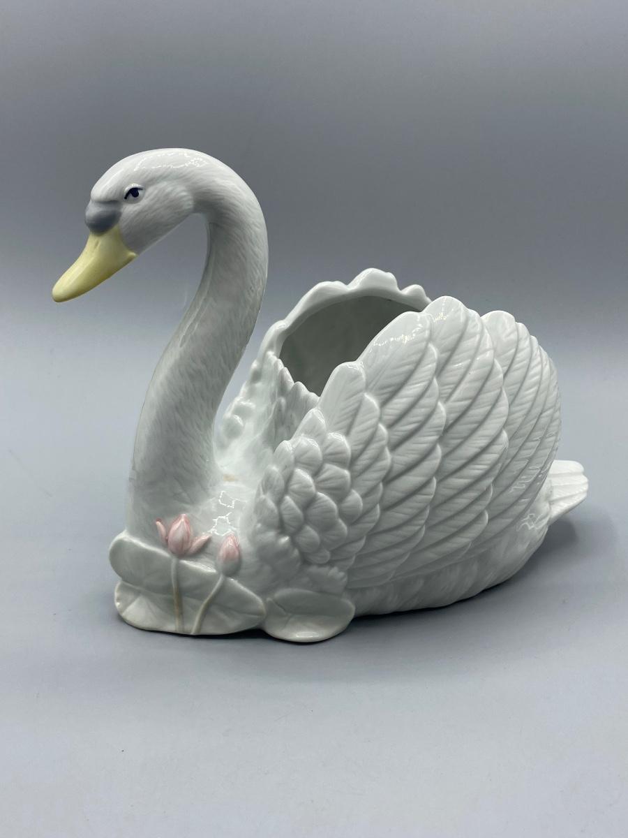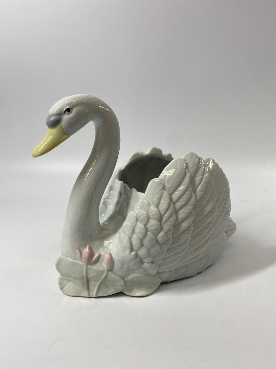 Vintage Ceramic Porcelain Swan Planter Pot Unbranded