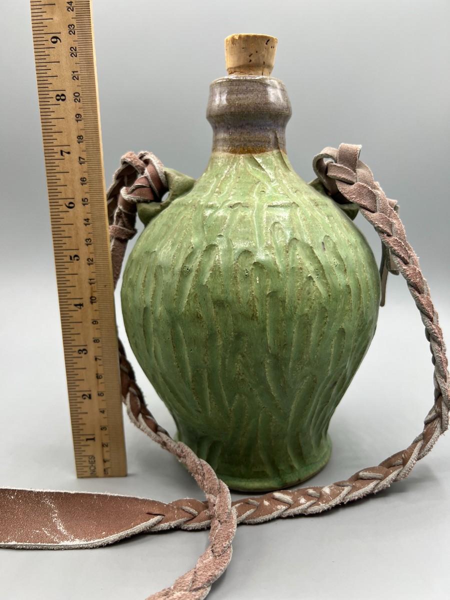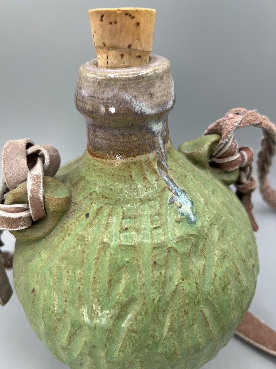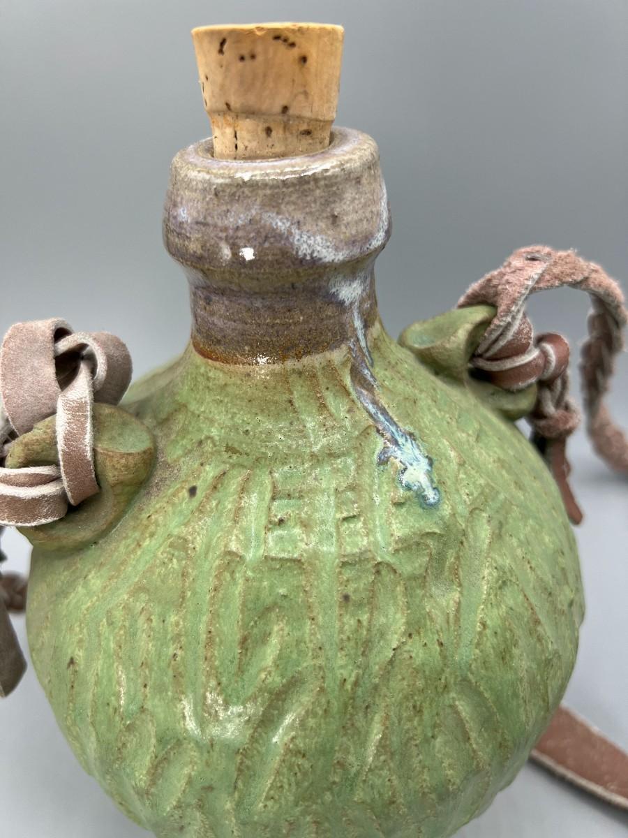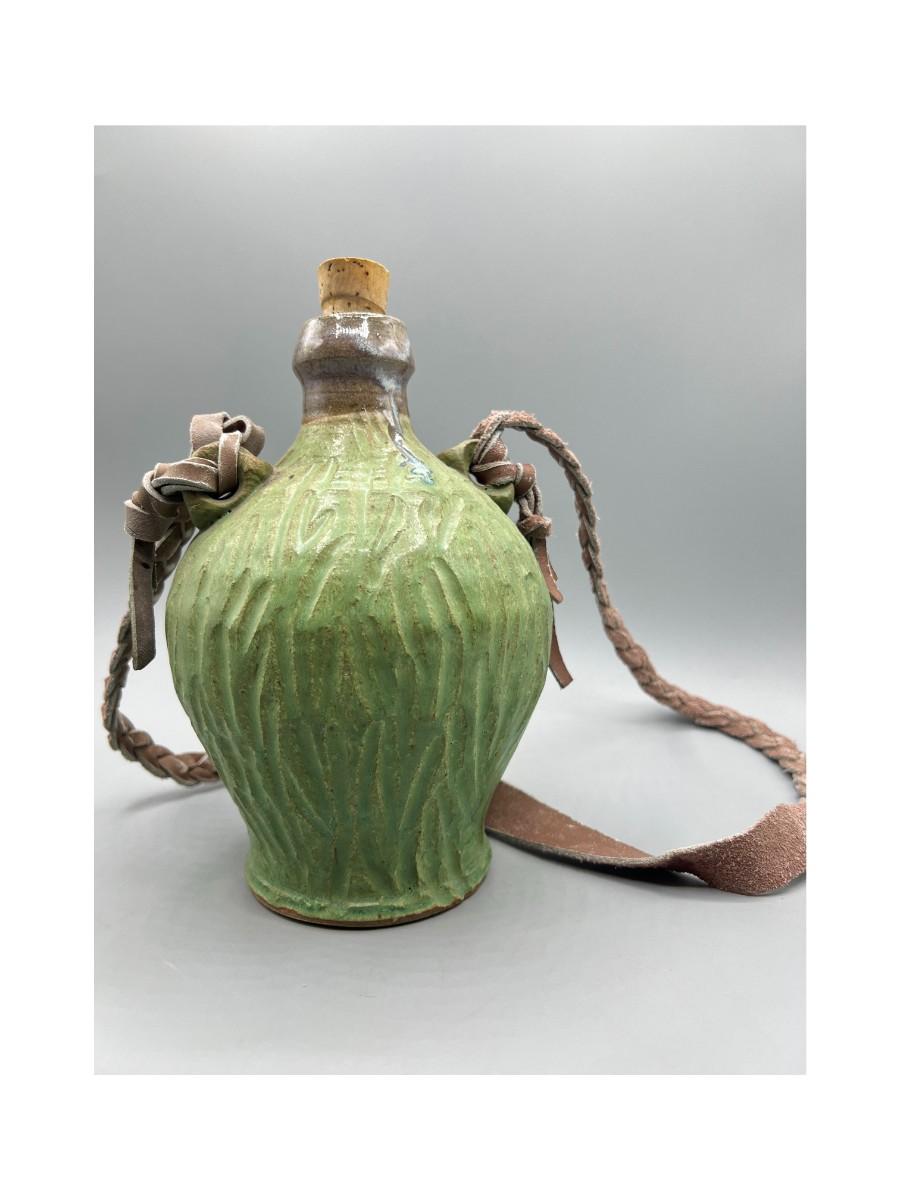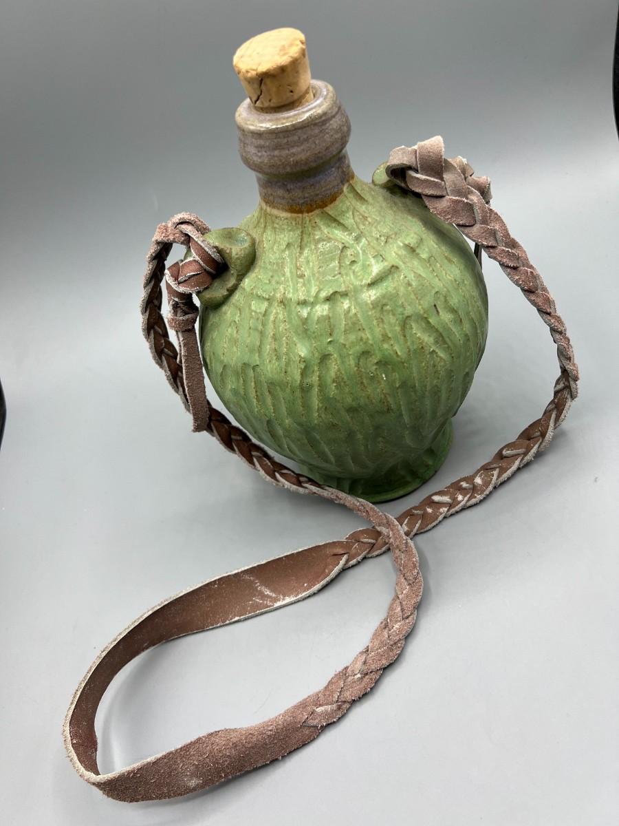 Vintage Ceramic Pottery Strapped Carrying Travel Decanter Corked Bottle