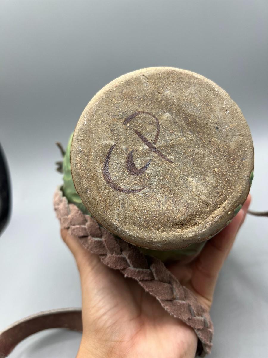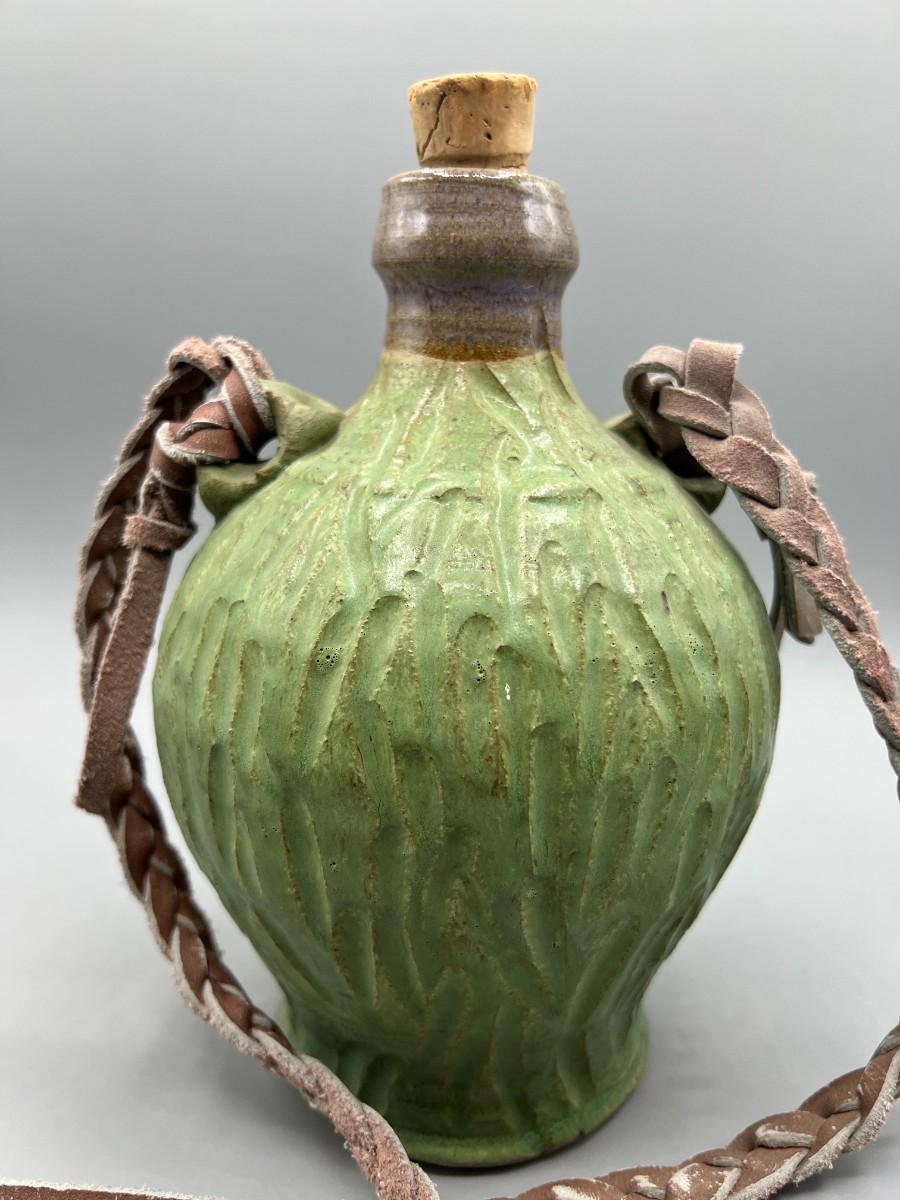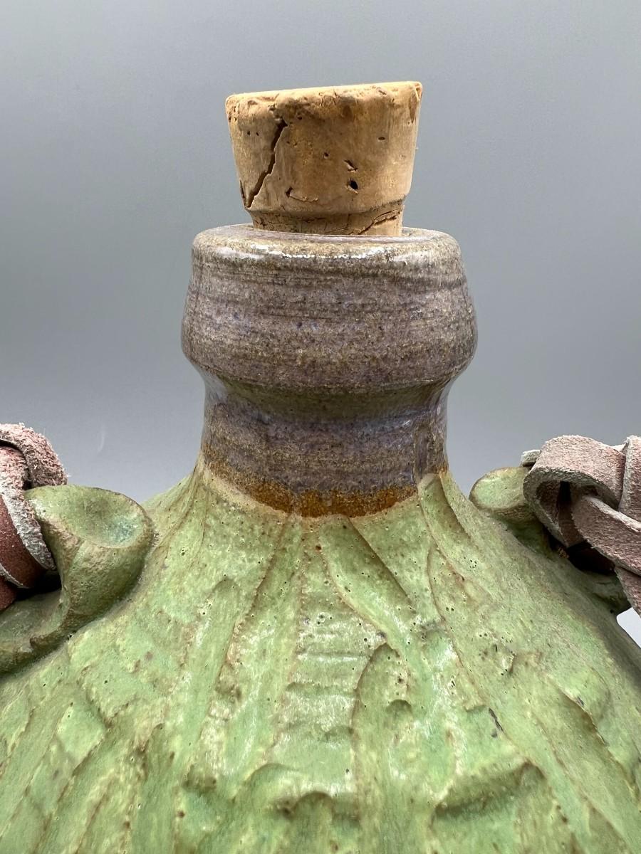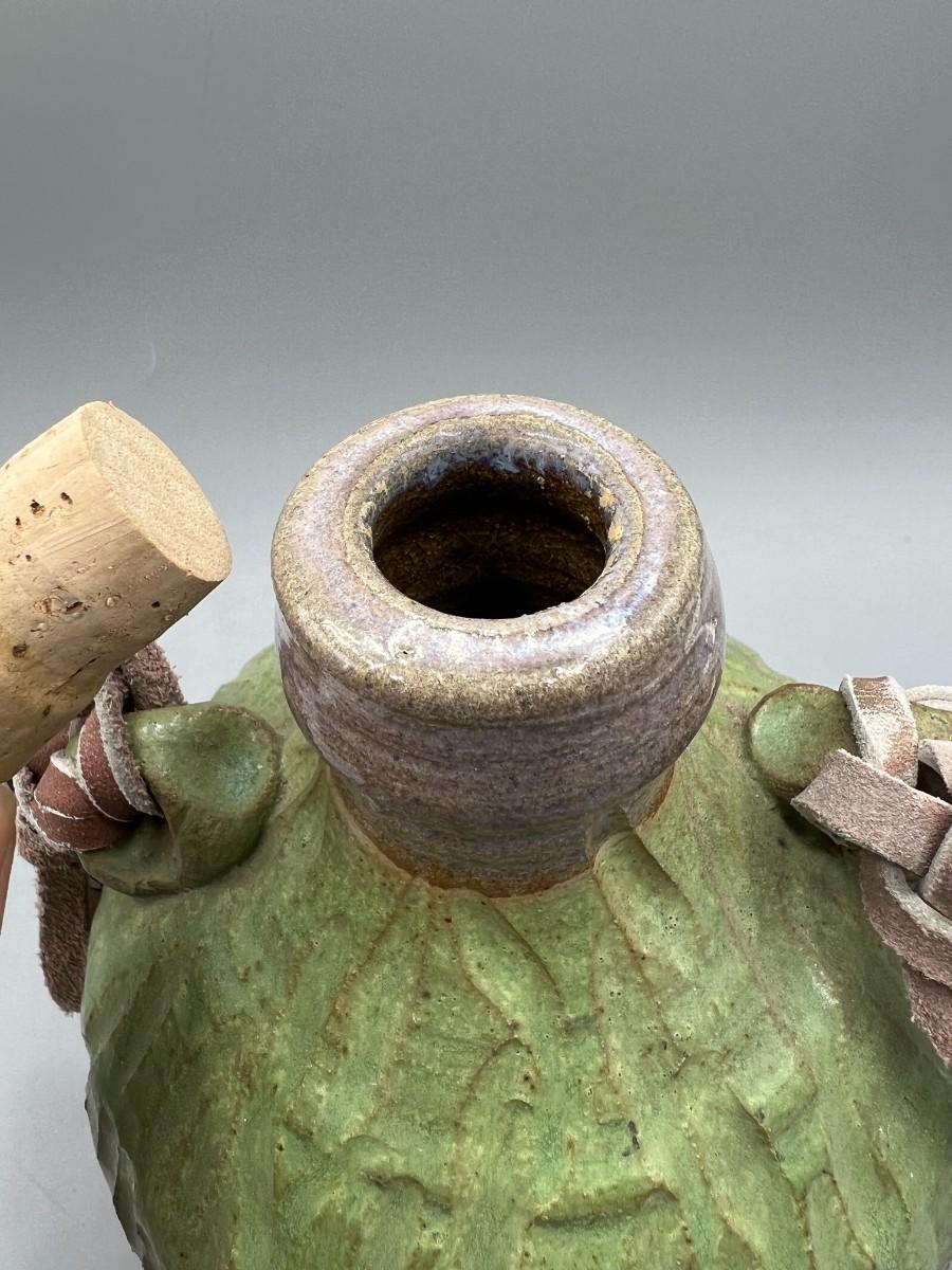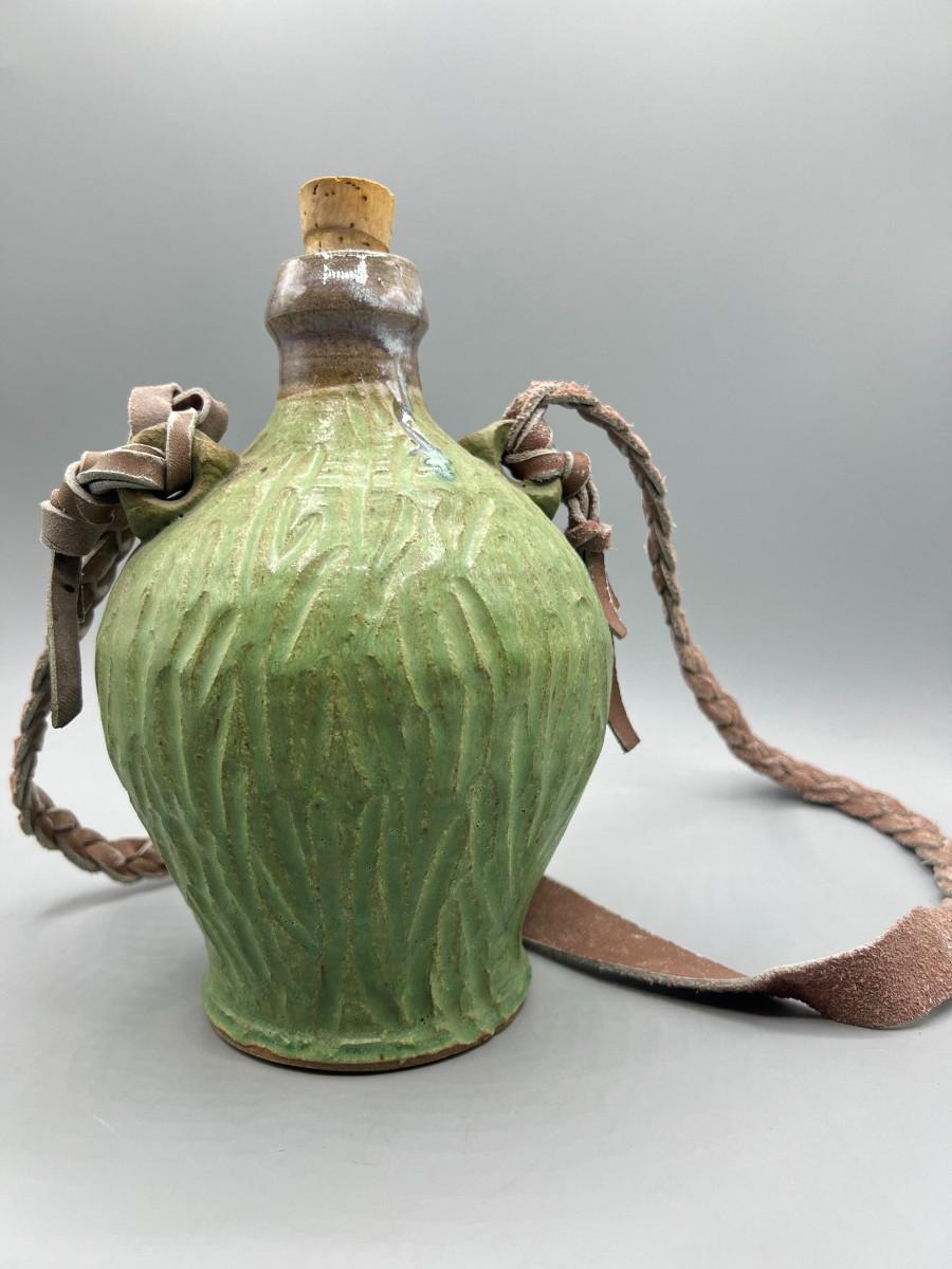 Vintage Ceramic Pottery Strapped Carrying Travel Decanter Corked Bottle