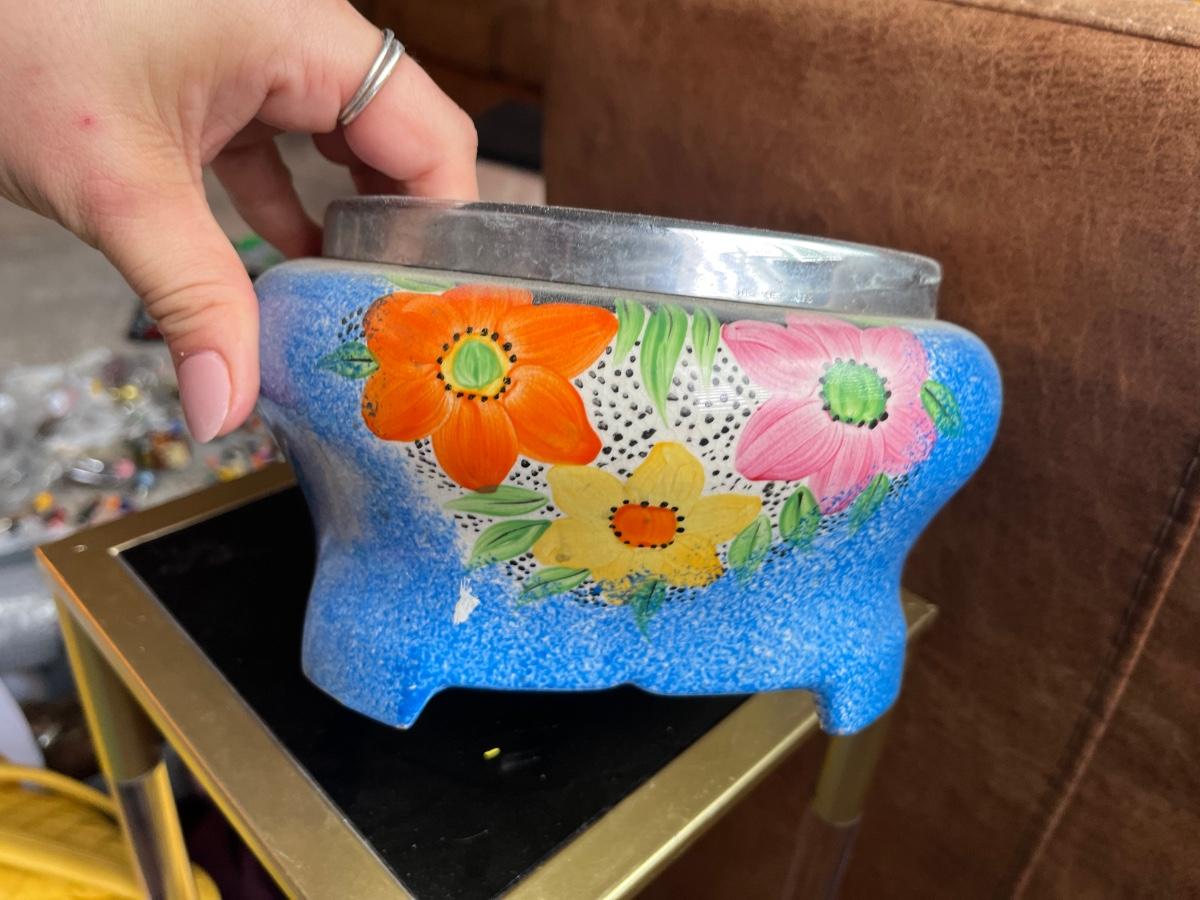 Vintage and Mid century brass, pyrex, stretched glass, lustroware, figurines, drink caddy, vintage glasses, tea sets, otigiri, Westmoreland, Fenton, Indiana glass