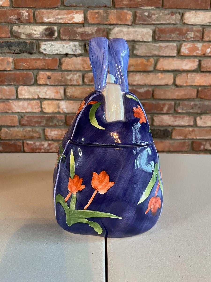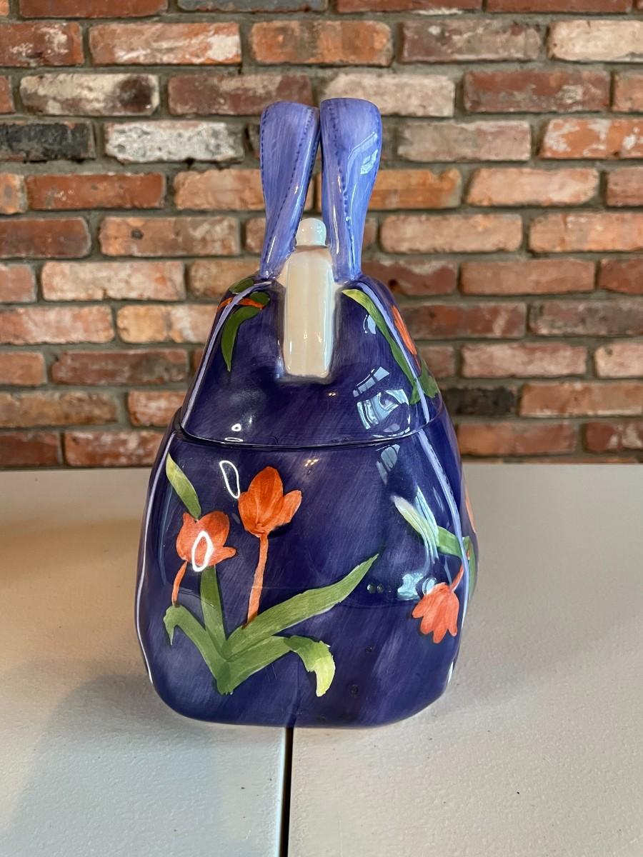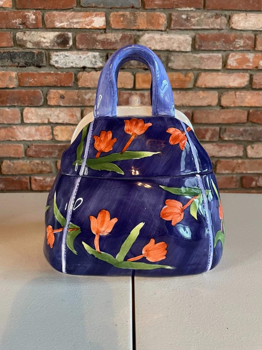 Pink Tulips Design on Blue Background. 9L x 4W x 10H.