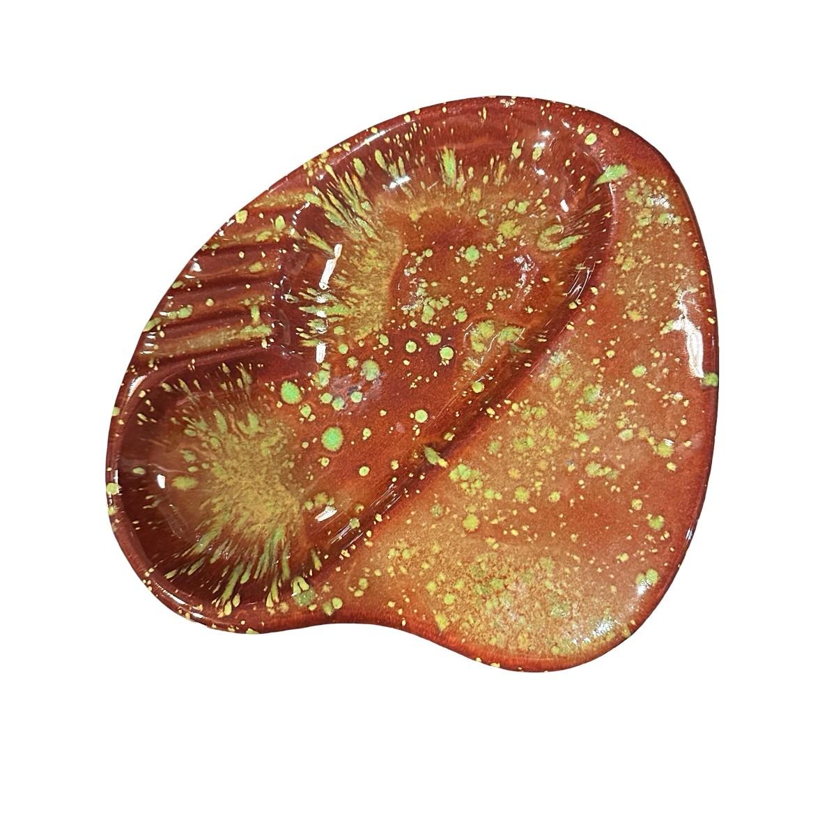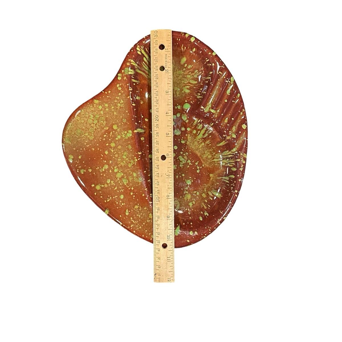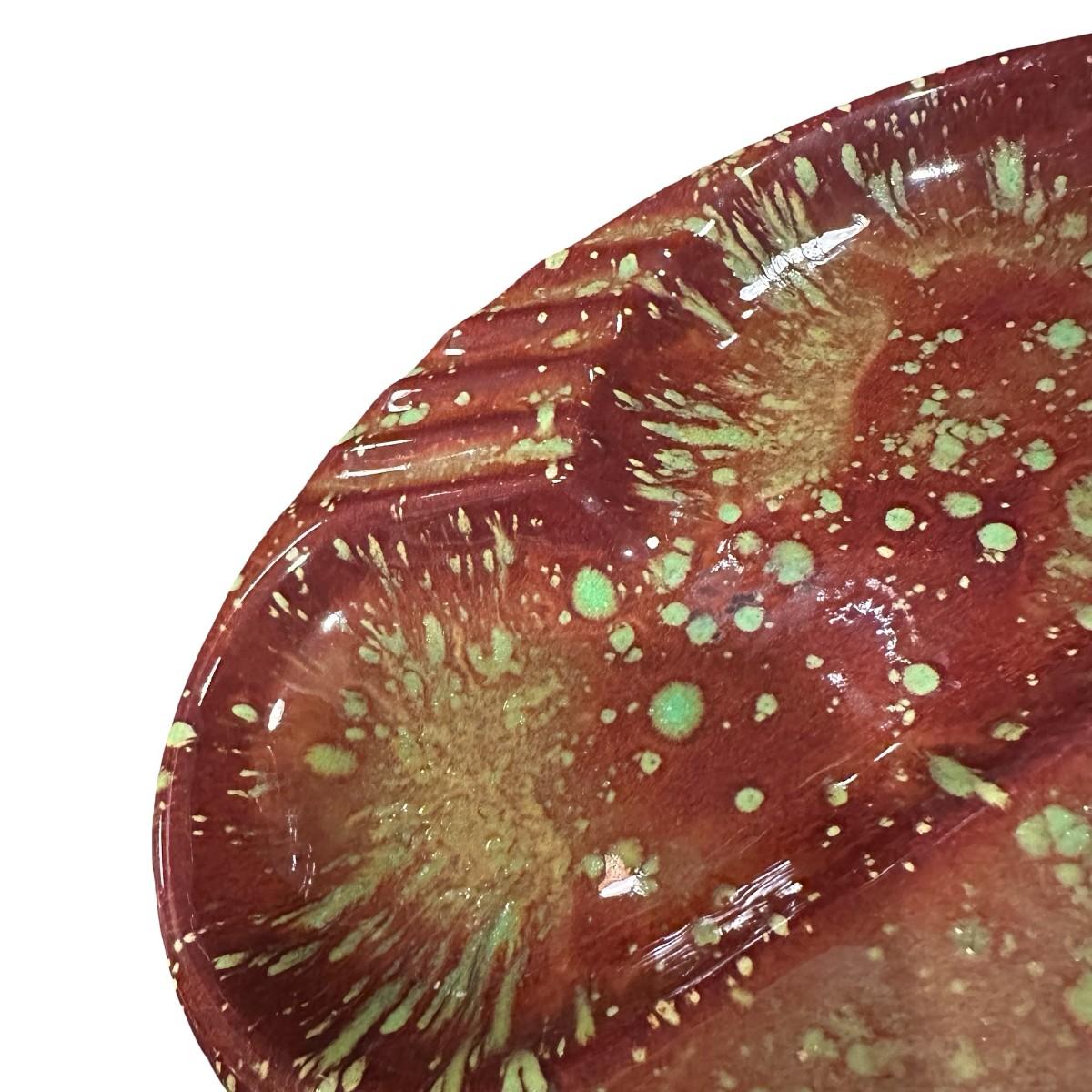 Vintage Ceramic Splattered Ashtray Browns and Greens, 10.5" Long, no chips
