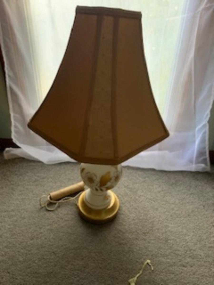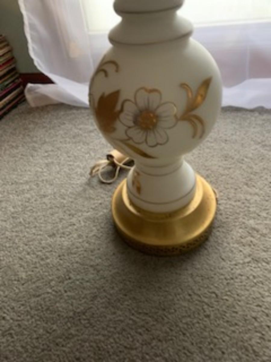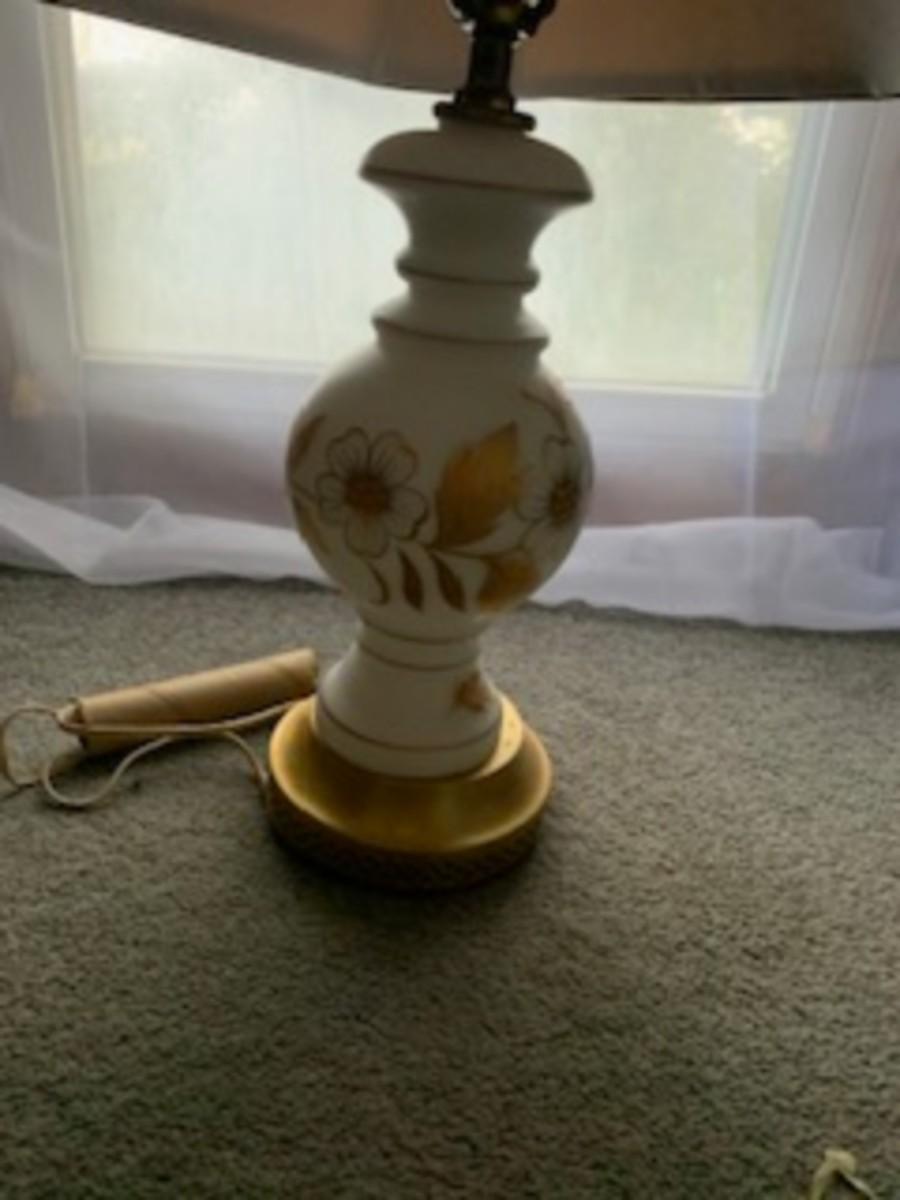 Vintage Ceramic Table Lamp – Gold Floral Base & Hexagonal Shade Works