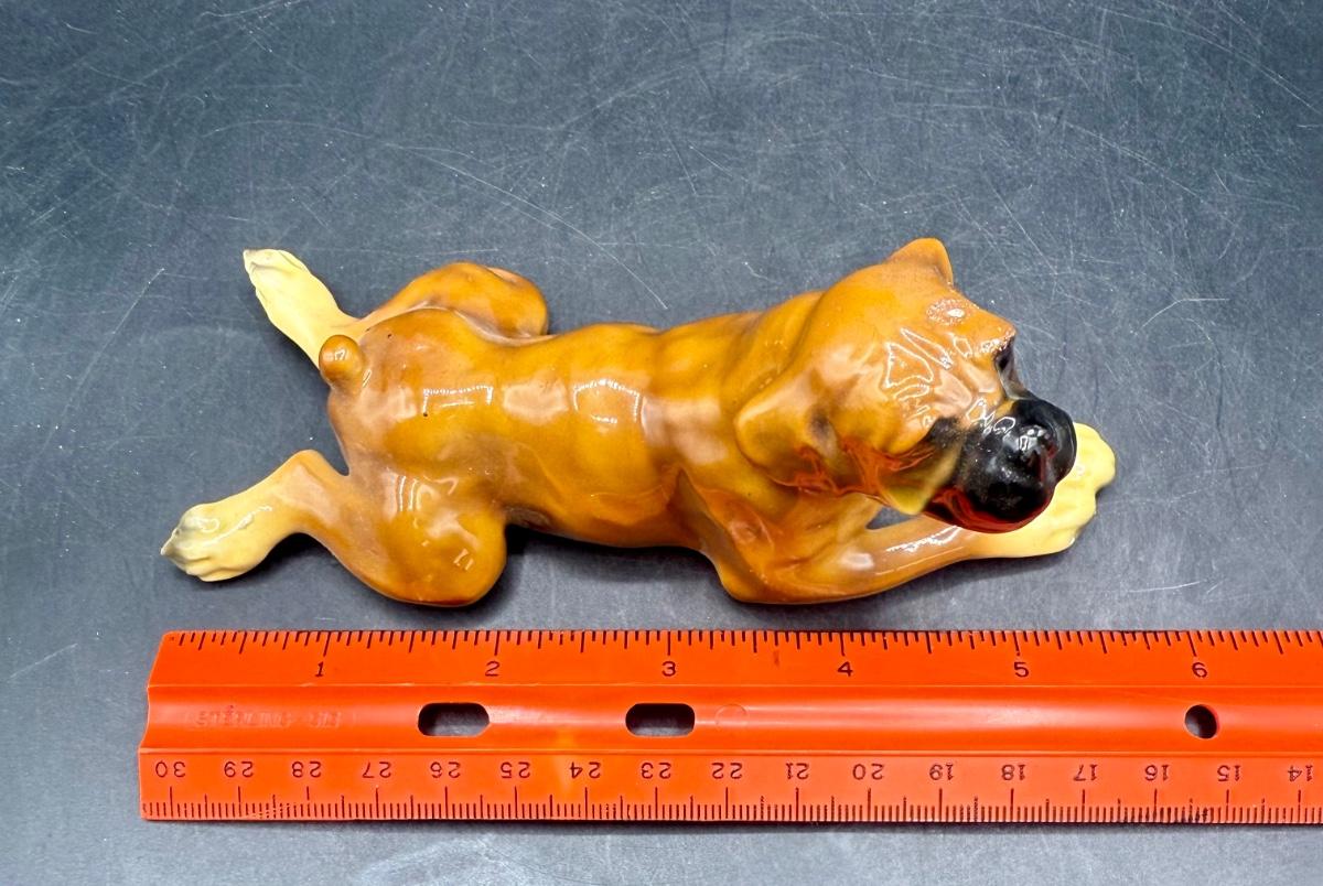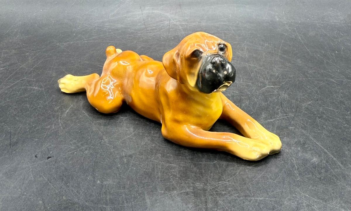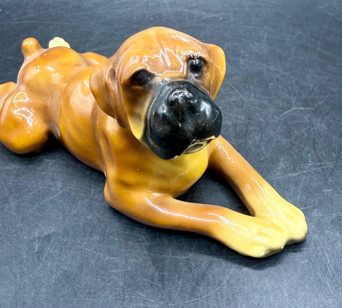 Mortens Studio Reclining Boxer Dog, Antique Boxer Dog Figurine, Good condition.