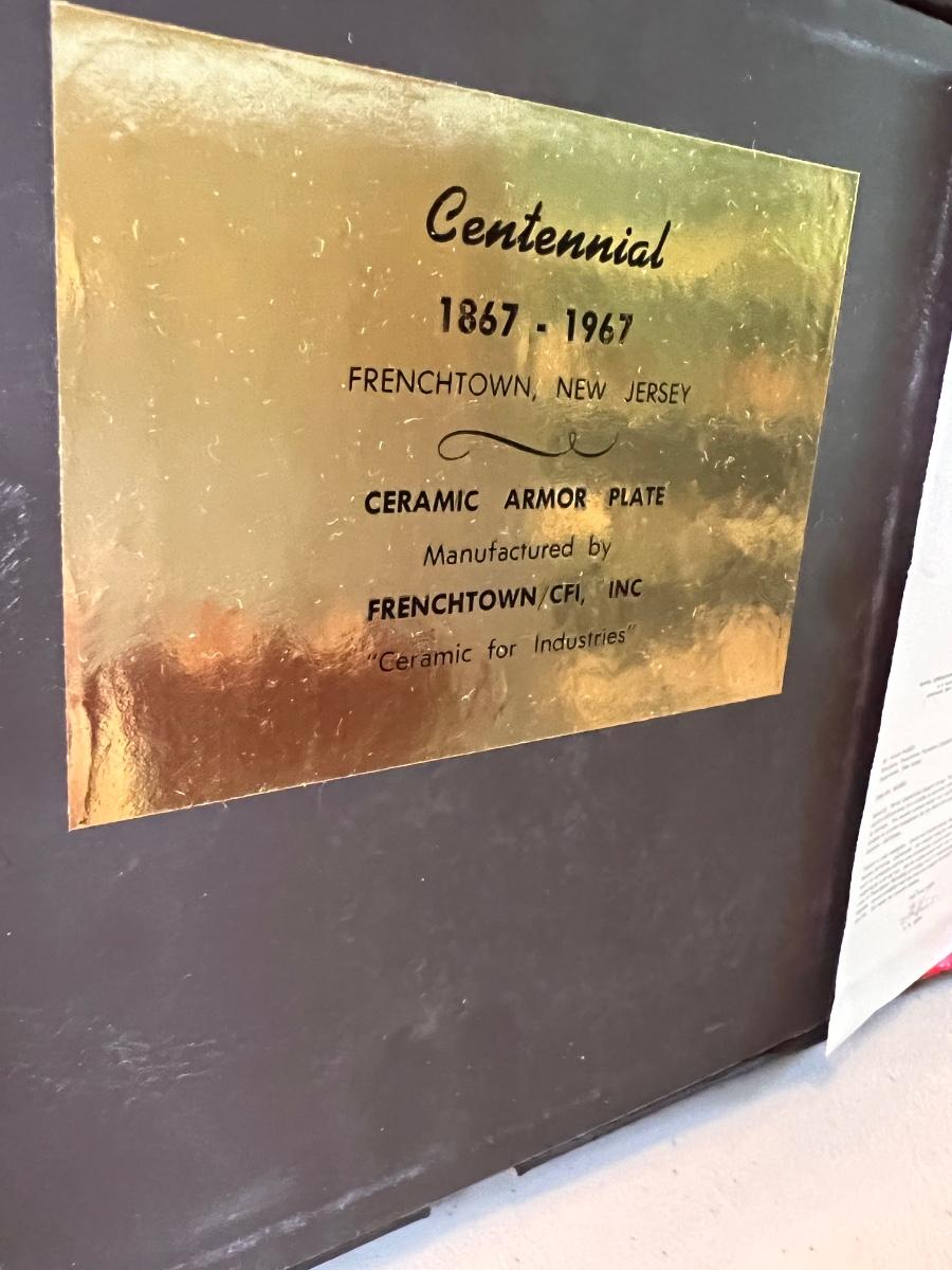 Vintage Centennial 1867-1967 Commemorative Ceramic Armor Plate Tile made by Frenchtown/CFI, Inc.