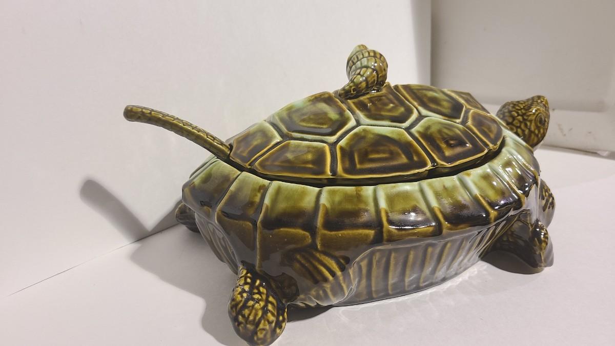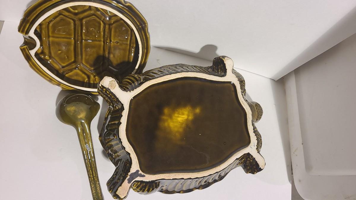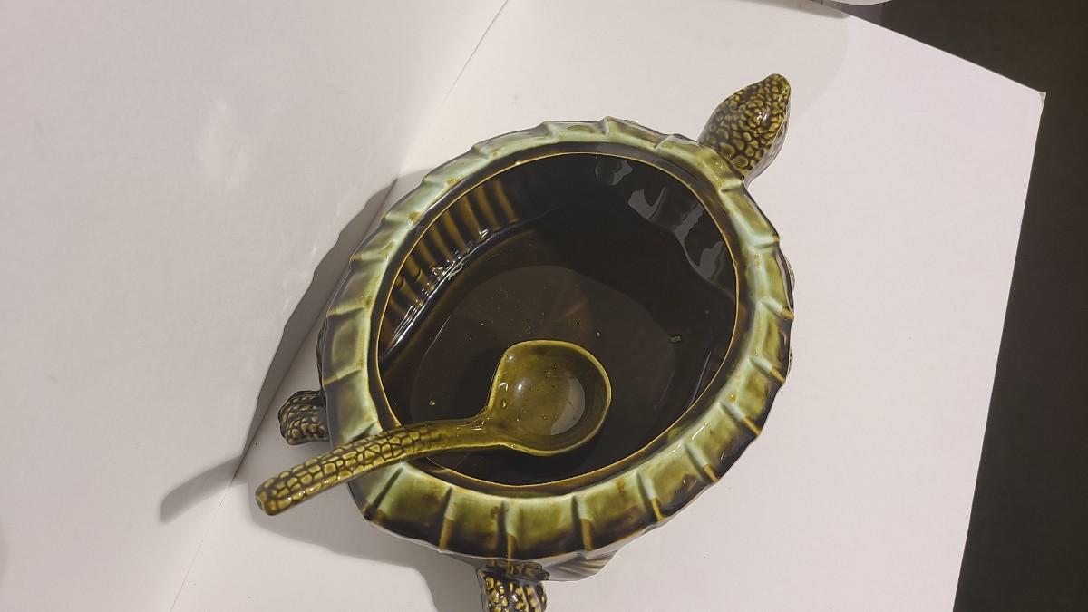 Vintage Ceramic Turtle Soup Tureen with Ladle+Lid