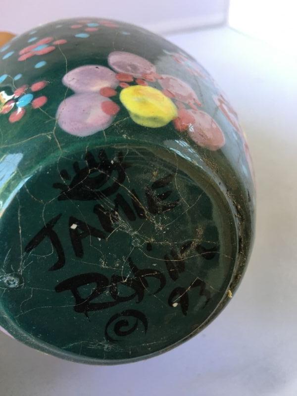 Vintage Ceramic Vase Hand Painted Signed Jaime Robin