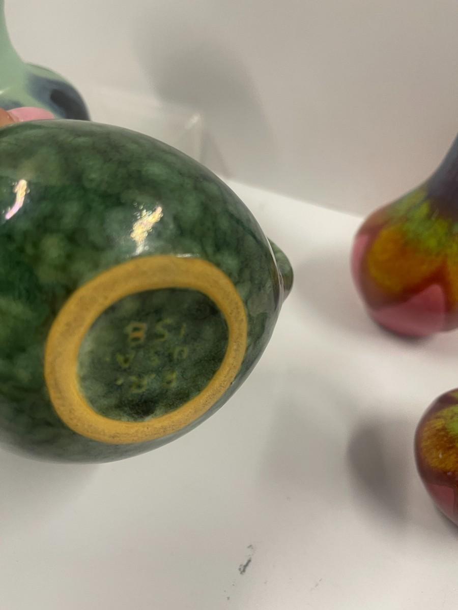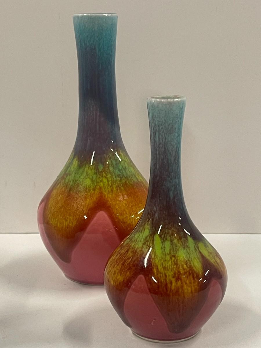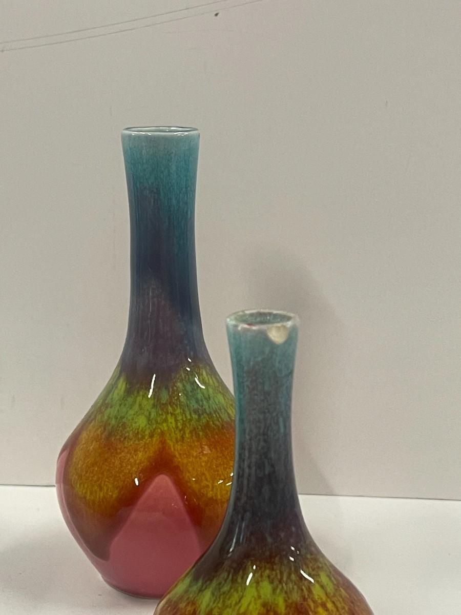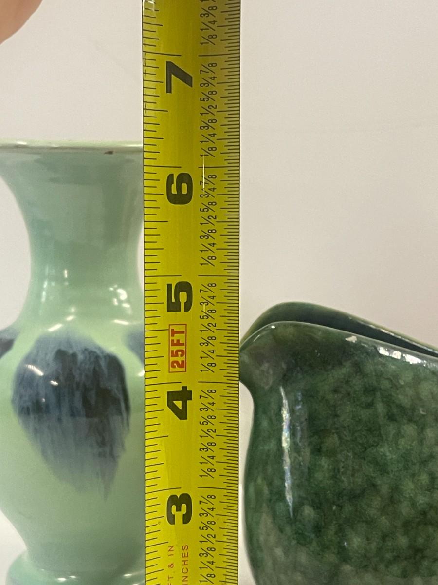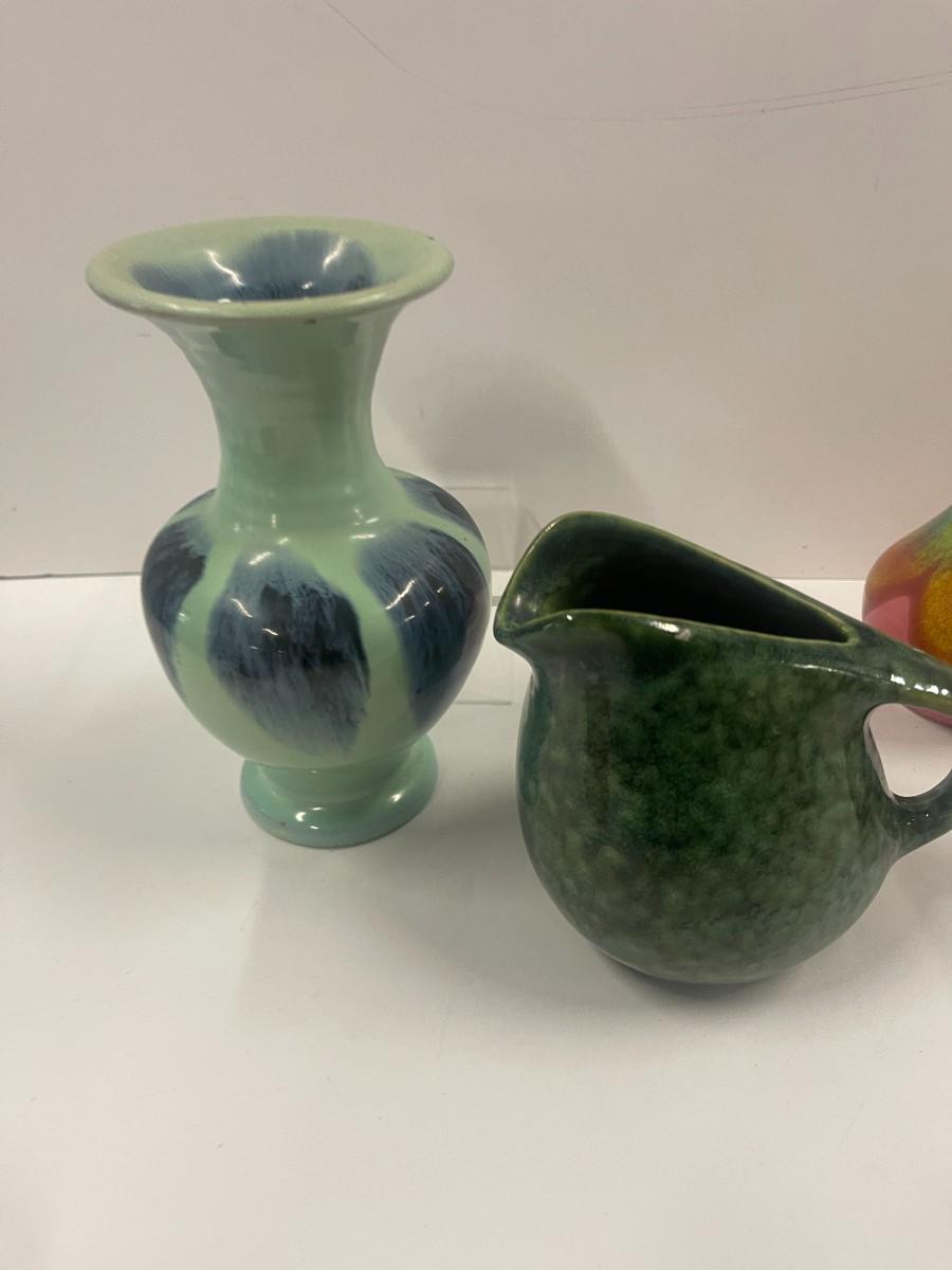 Vintage Ceramic Vases & Creamer. One of the small pink bud vases has a chip.