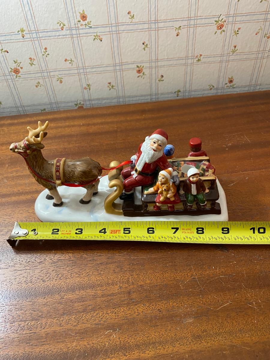 Vintage Ceramic Villeroy & Bach Santa Claus in Sleigh with Children Candle Holder. Good condition, no chips or cracks. 9" length.