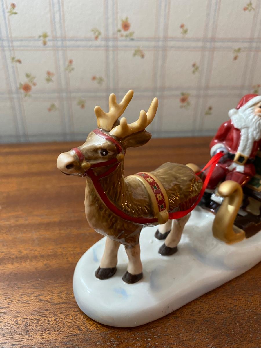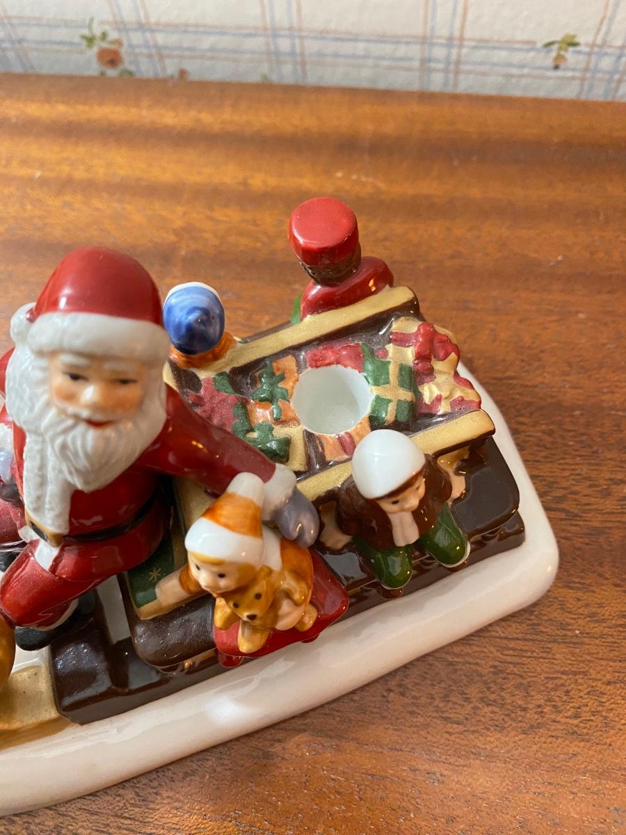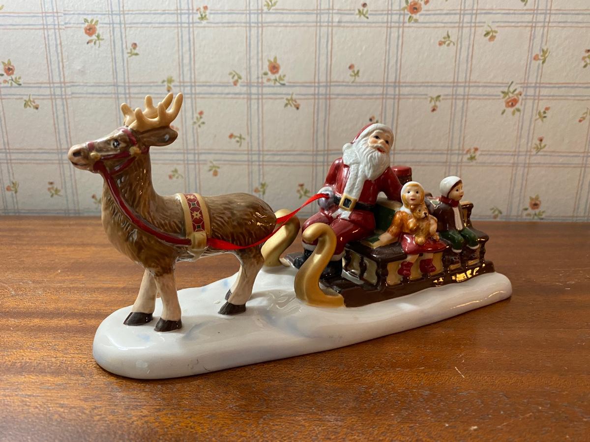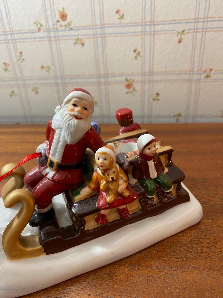 Vintage Ceramic Villeroy & Bach Santa Claus in Sleigh with Children Candle Holder