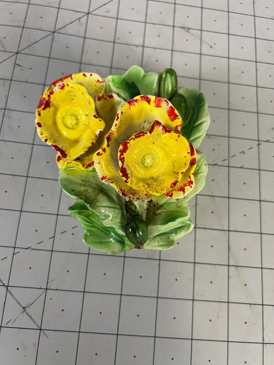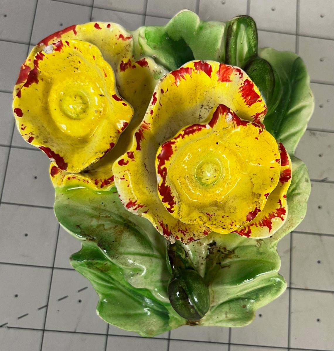 Vintage Ceramic Wall Pocket, Yellow Flowers