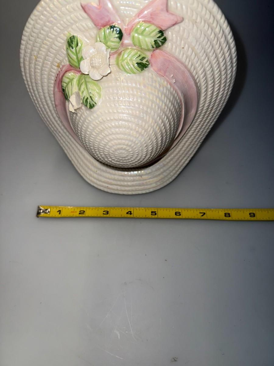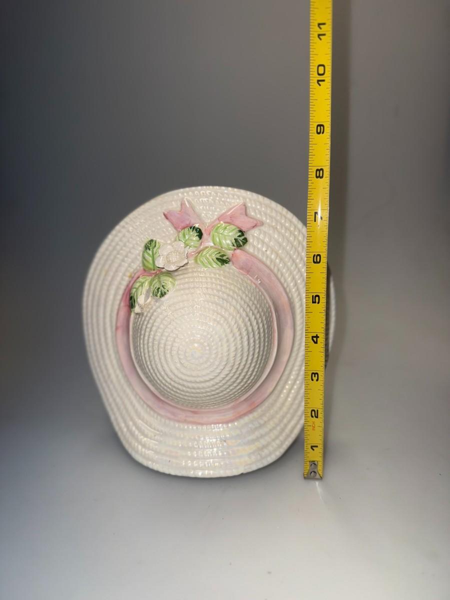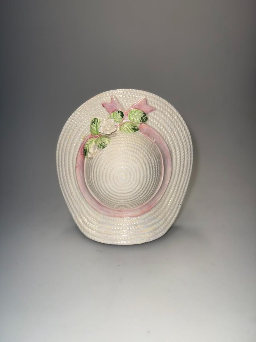 Vintage Ceramic White Hat With Pink Ribbon /Flowers Wall Pocket Vase
