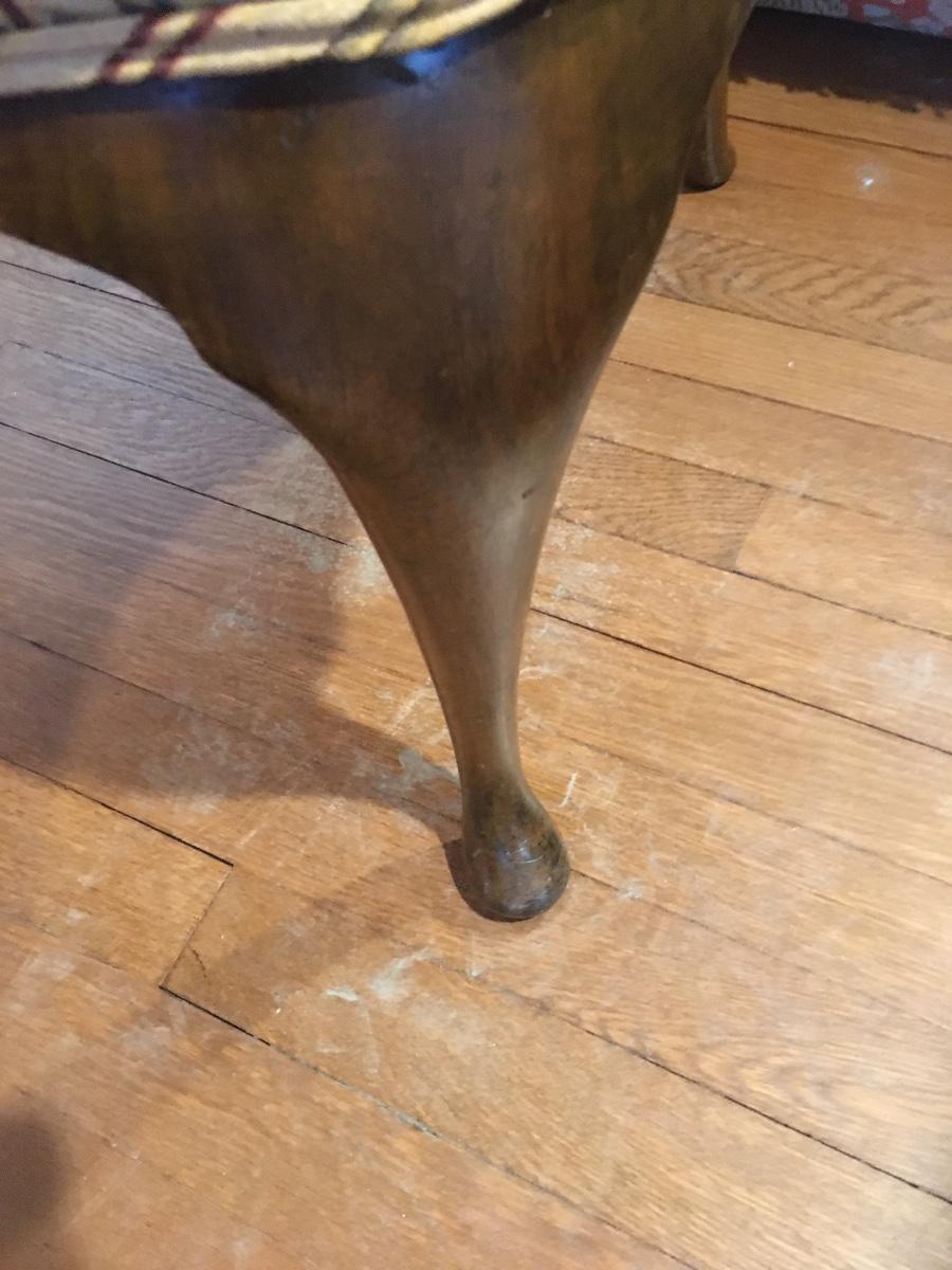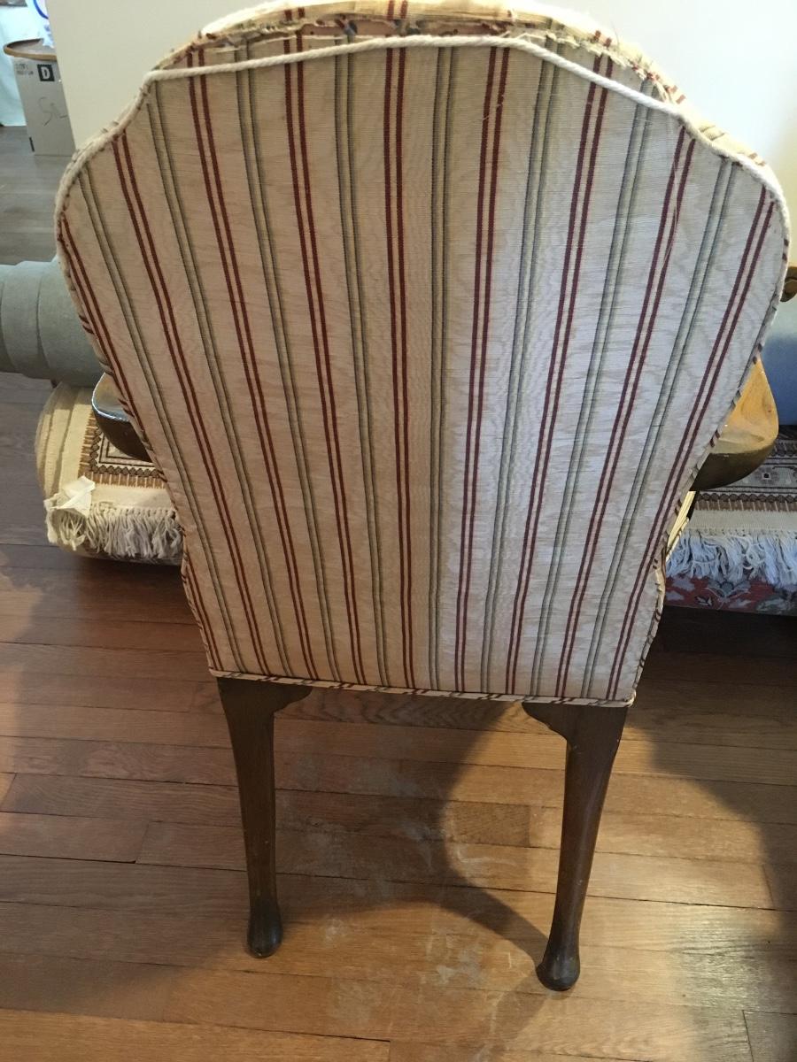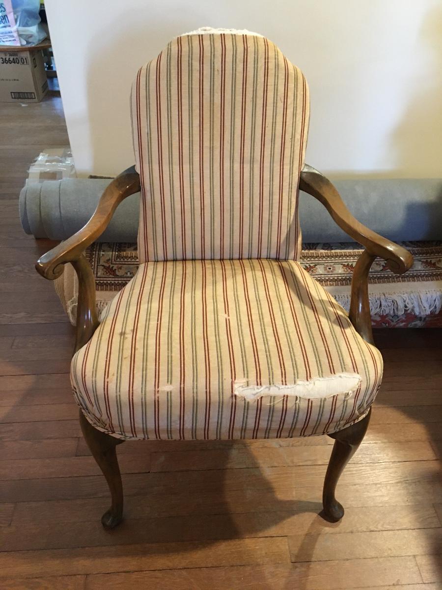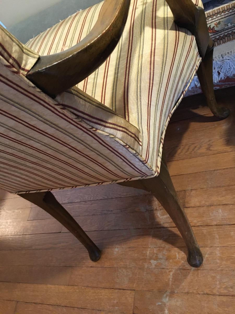 Vintage chair with wooden arms and legs. Great project for reupholstery!