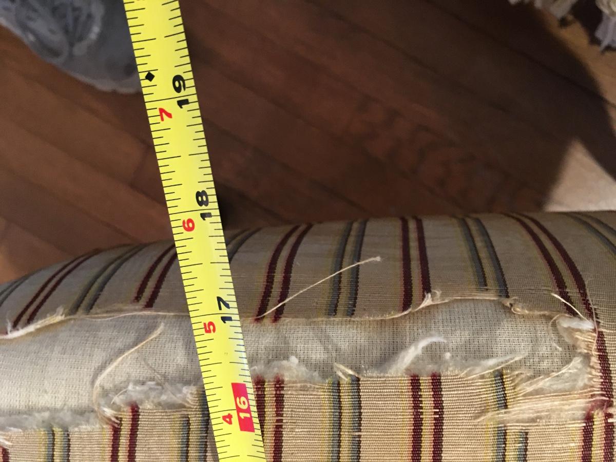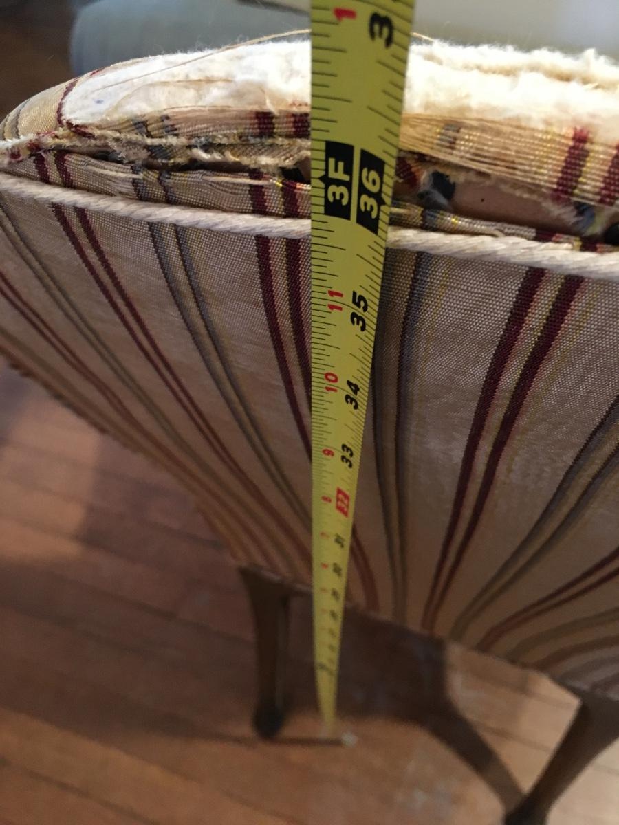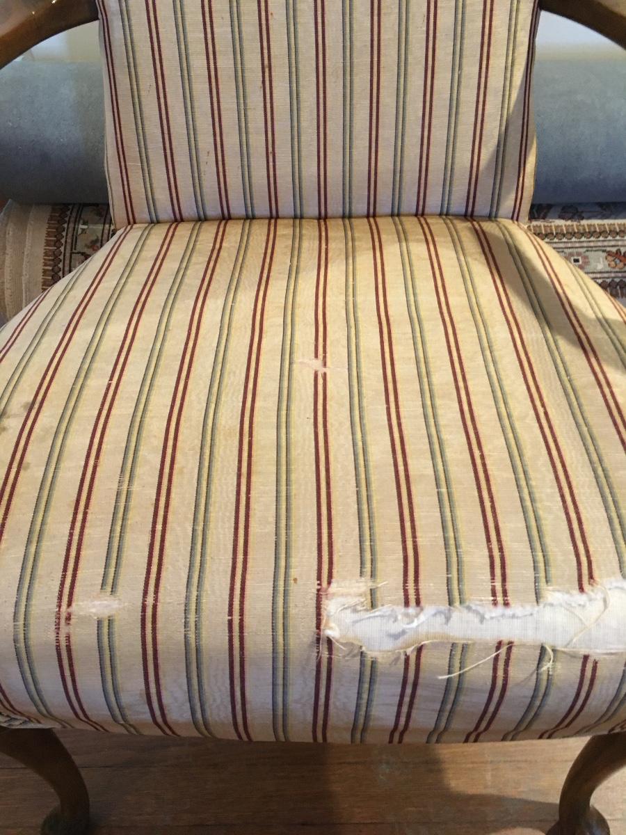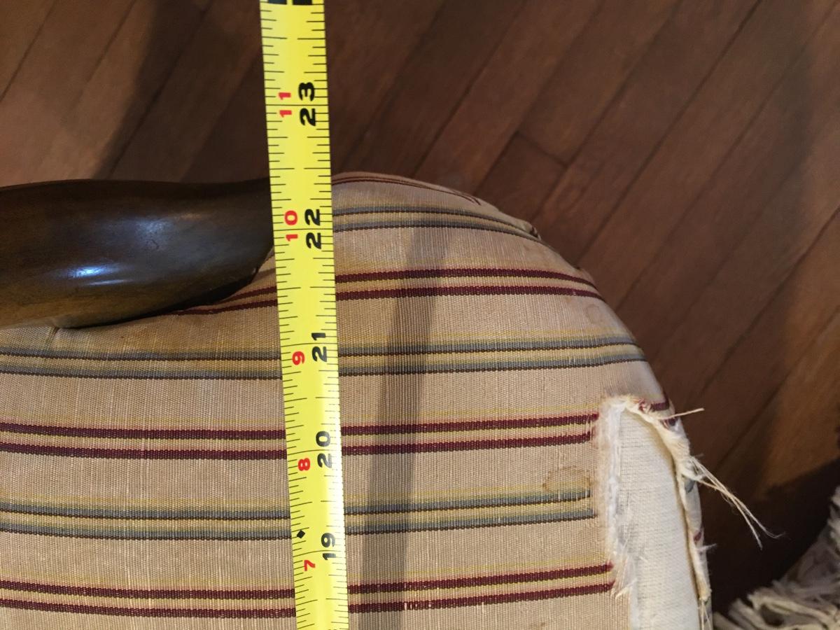 Vintage chair with wooden arms and legs. Great project for reupholstery!