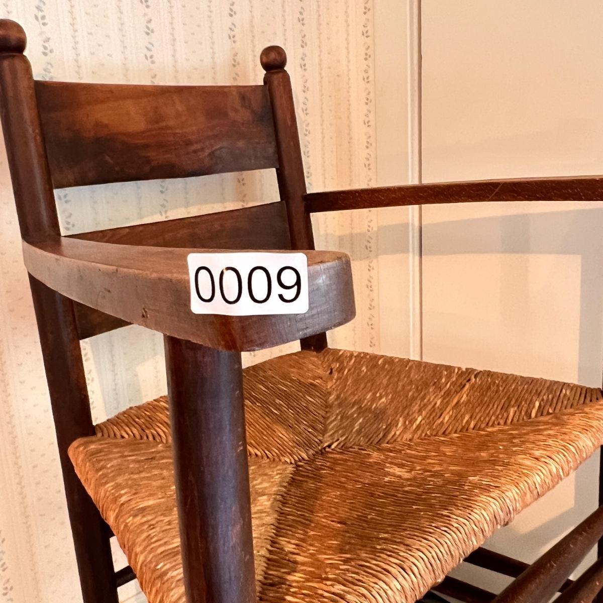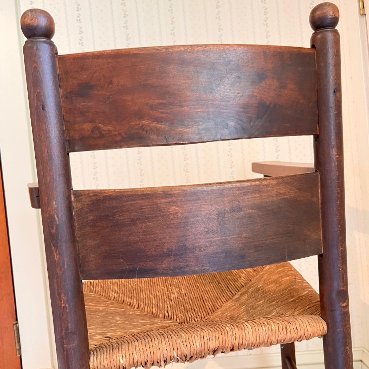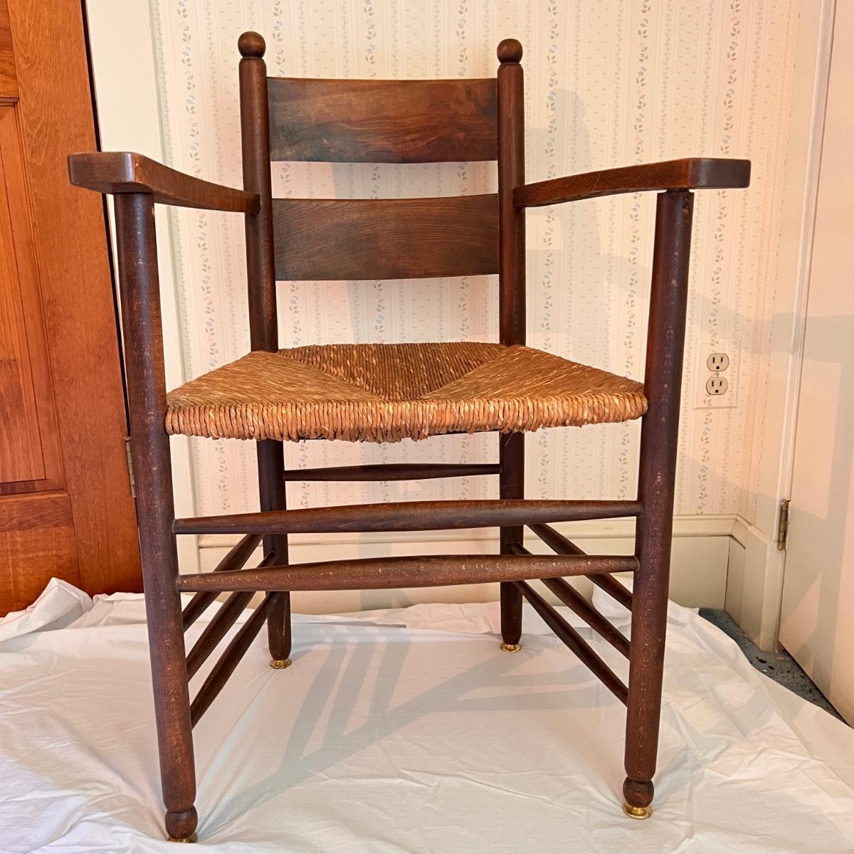 Antique Dutch Ladder Back Oak Rush Seat Armchair