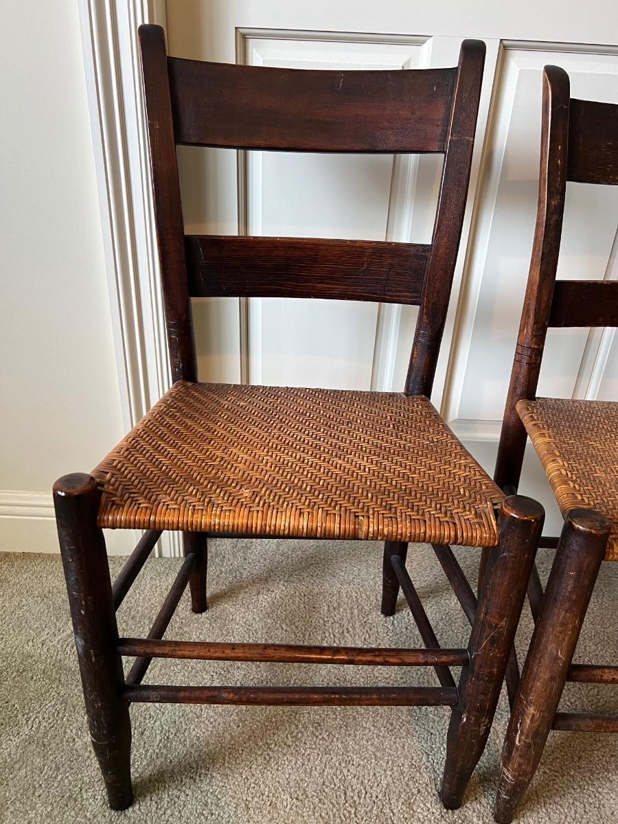 Auction is for the 5 chairs pictured. All chairs are solid and useable as is. See pictures for condition.