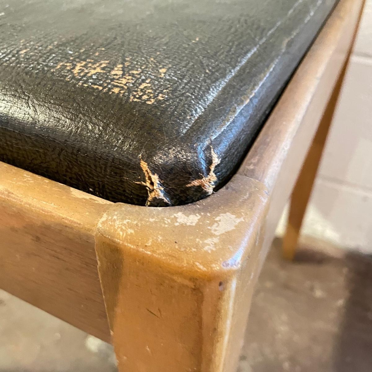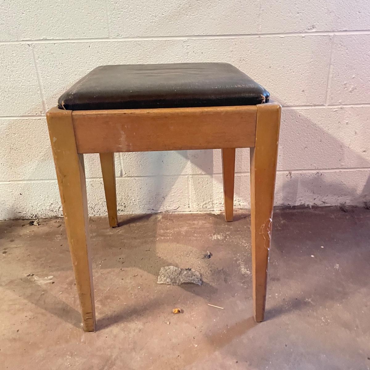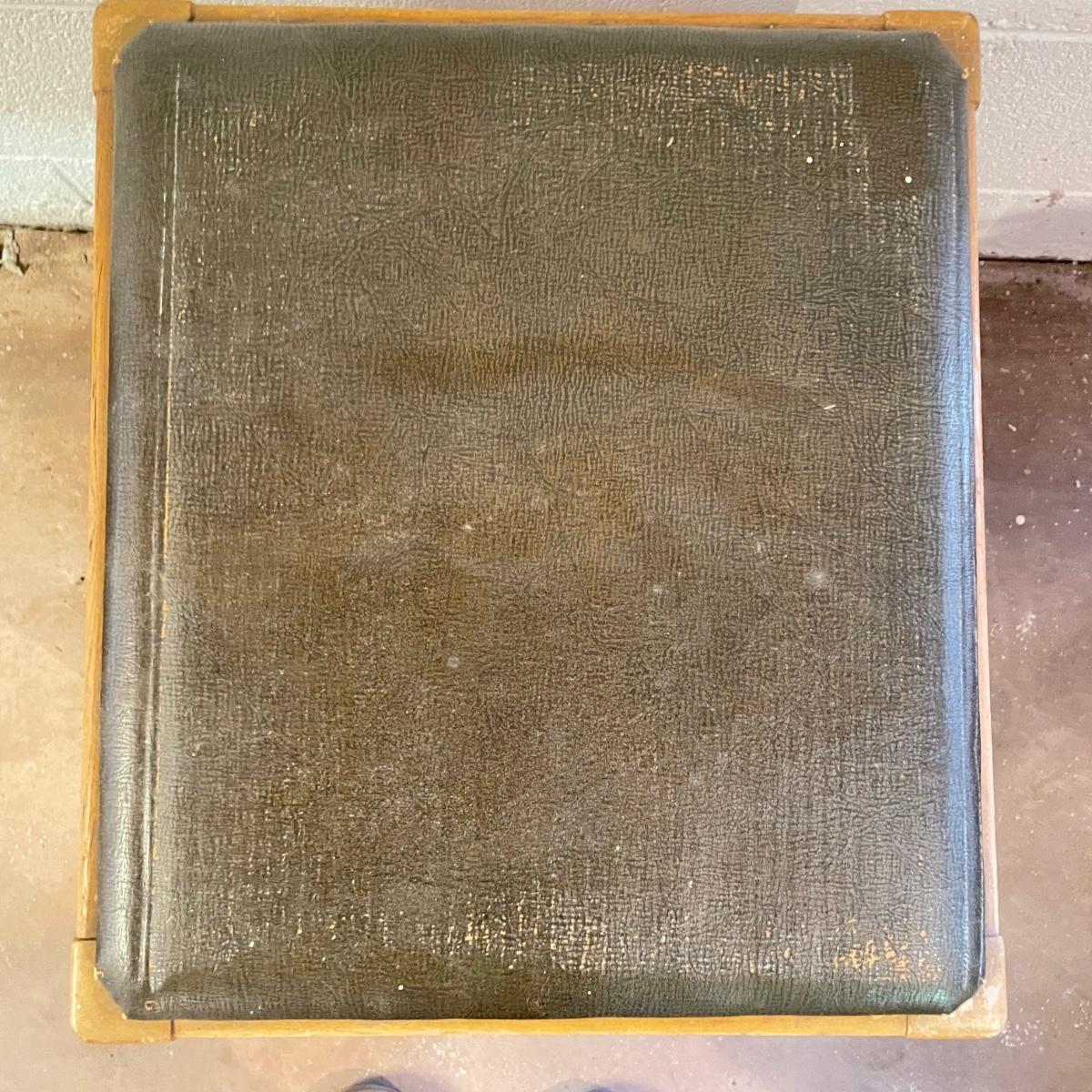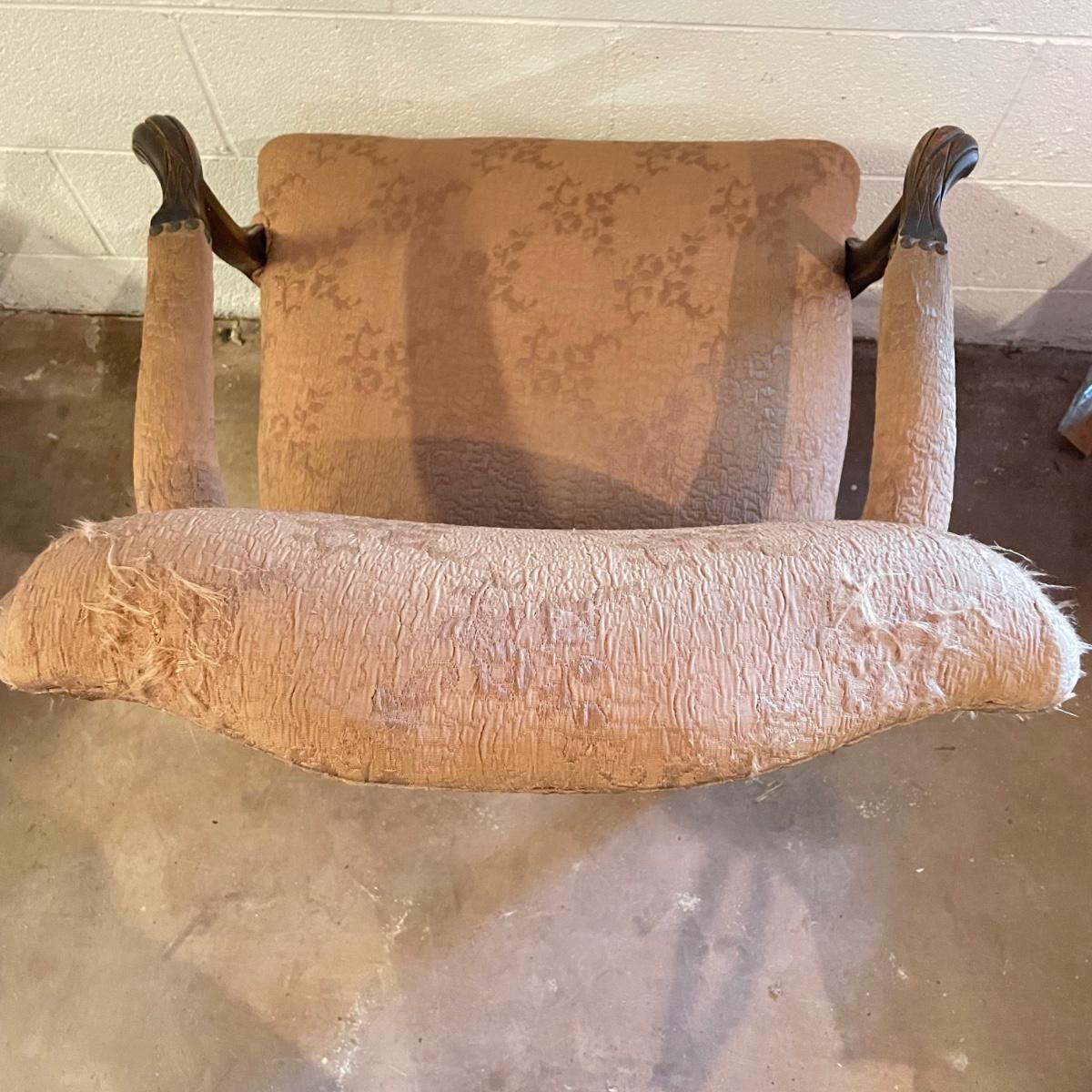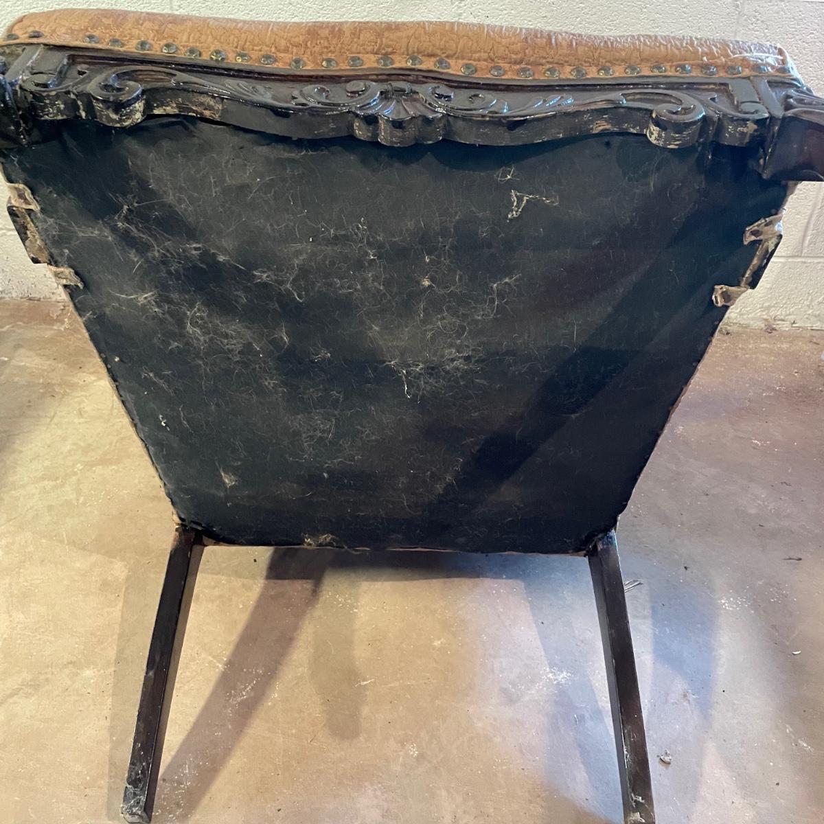 Stunning dark wood arm chair that appears to be antique. Nicely carved wood throughout, but the seat sinks down and the upholstery is very worn. The bones of the chair are very sturdy and this piece deserves to be upgraded with new upholstery and firmer seat cushion. Chair measures approximately 24” x 28” x 35” with a seat height at 18”. The next piece is a Singer Sewing bench with storage. The seat top is fairly stiff, no cushion under its vinyl cover. This piece is also very sturdy, measuring 17” x 15” x 19”. Local pick up only.