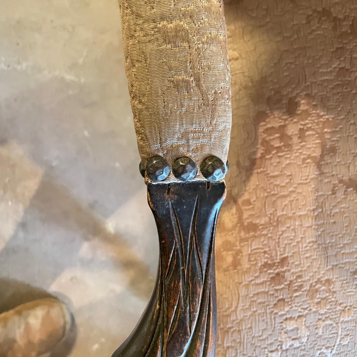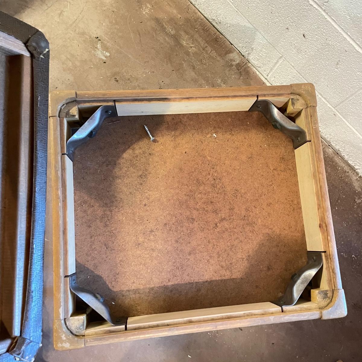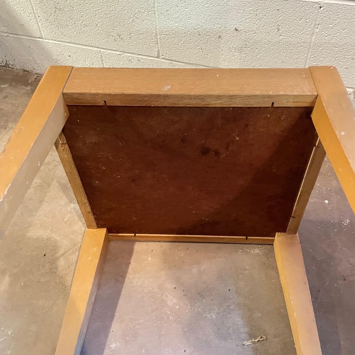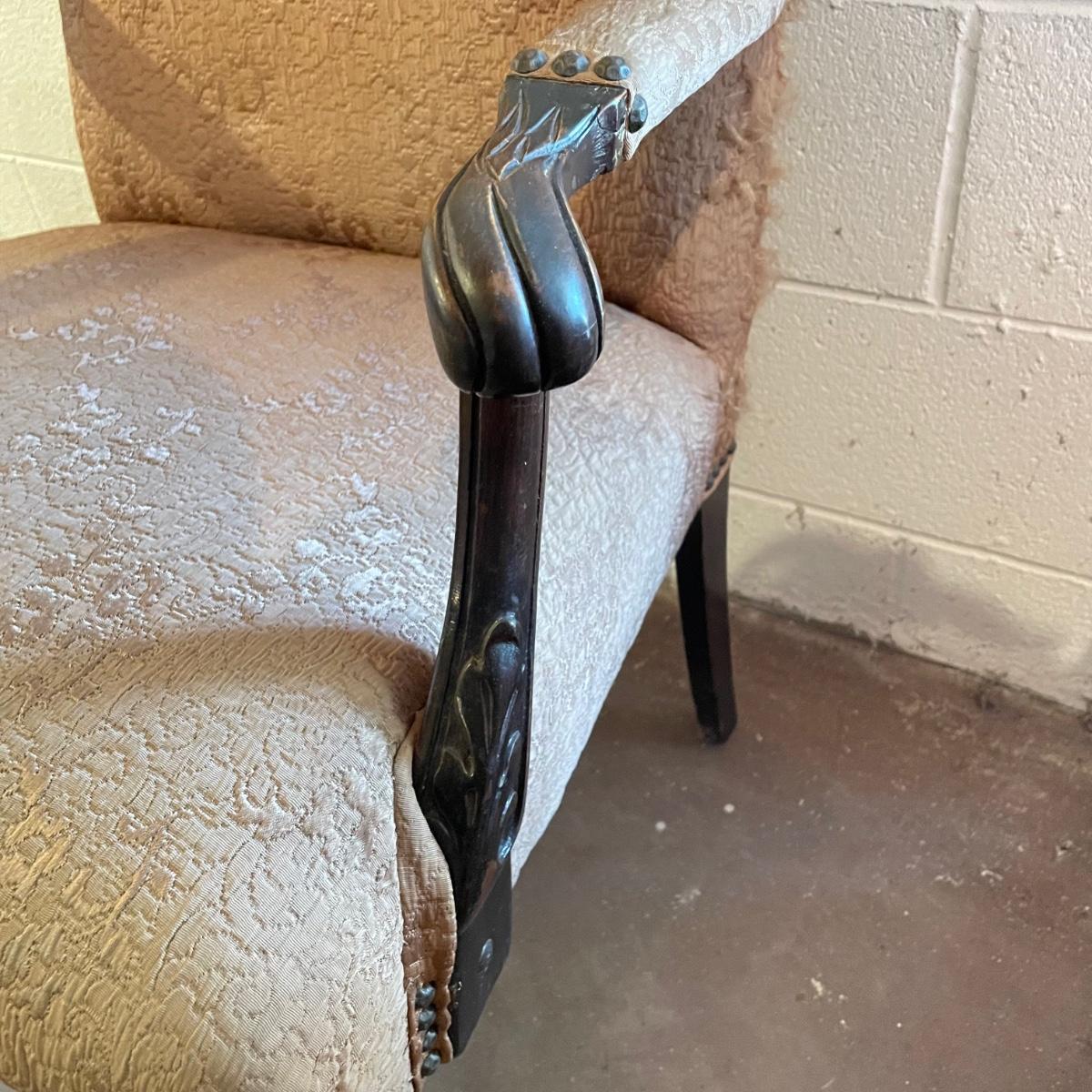 Stunning dark wood arm chair that appears to be antique. Nicely carved wood throughout, but the seat sinks down and the upholstery is very worn. The bones of the chair are very sturdy and this piece deserves to be upgraded with new upholstery and firmer seat cushion. Chair measures approximately 24” x 28” x 35” with a seat height at 18”. The next piece is a Singer Sewing bench with storage. The seat top is fairly stiff, no cushion under its vinyl cover. This piece is also very sturdy, measuring 17” x 15” x 19”. Local pick up only.