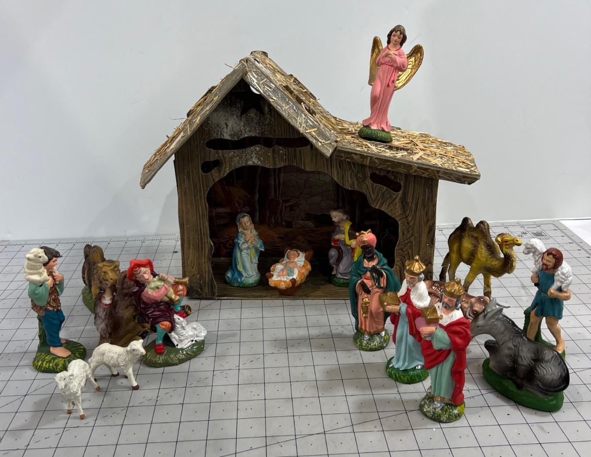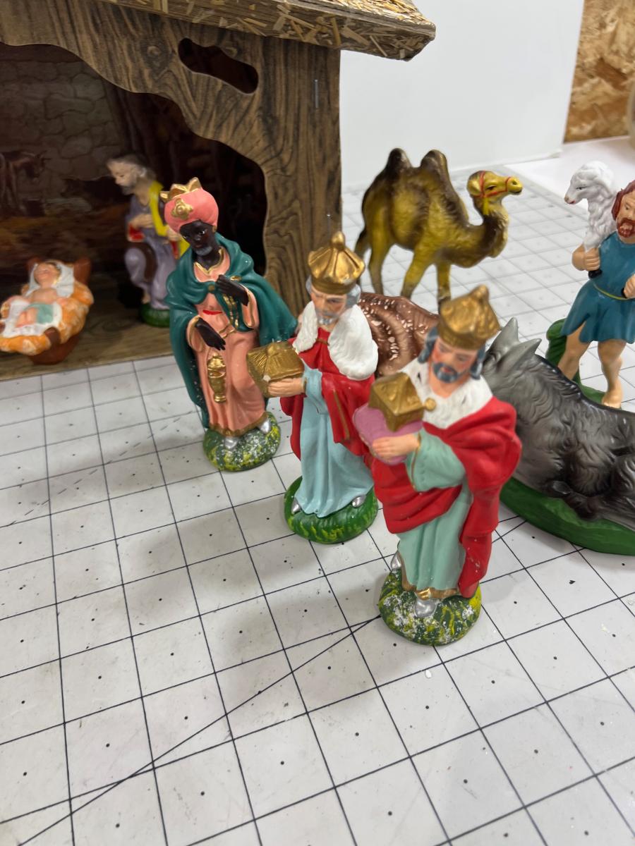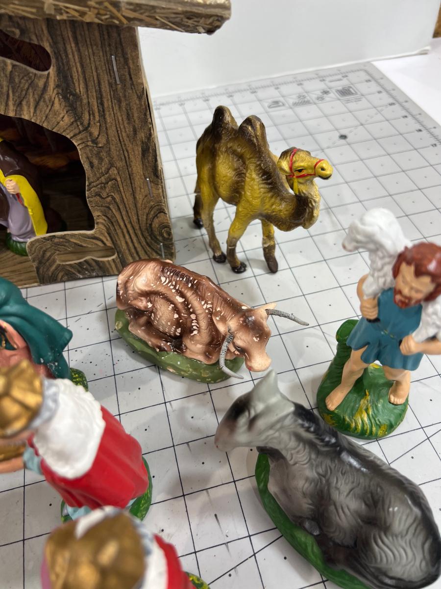 Impressive! Nice! Vintage! Good Condition. Hand Painted JAPAN - COLLECTIBLE!!! Old. Everyone included, including Baby Jesus, Donkey, Cow, Sheep etc.