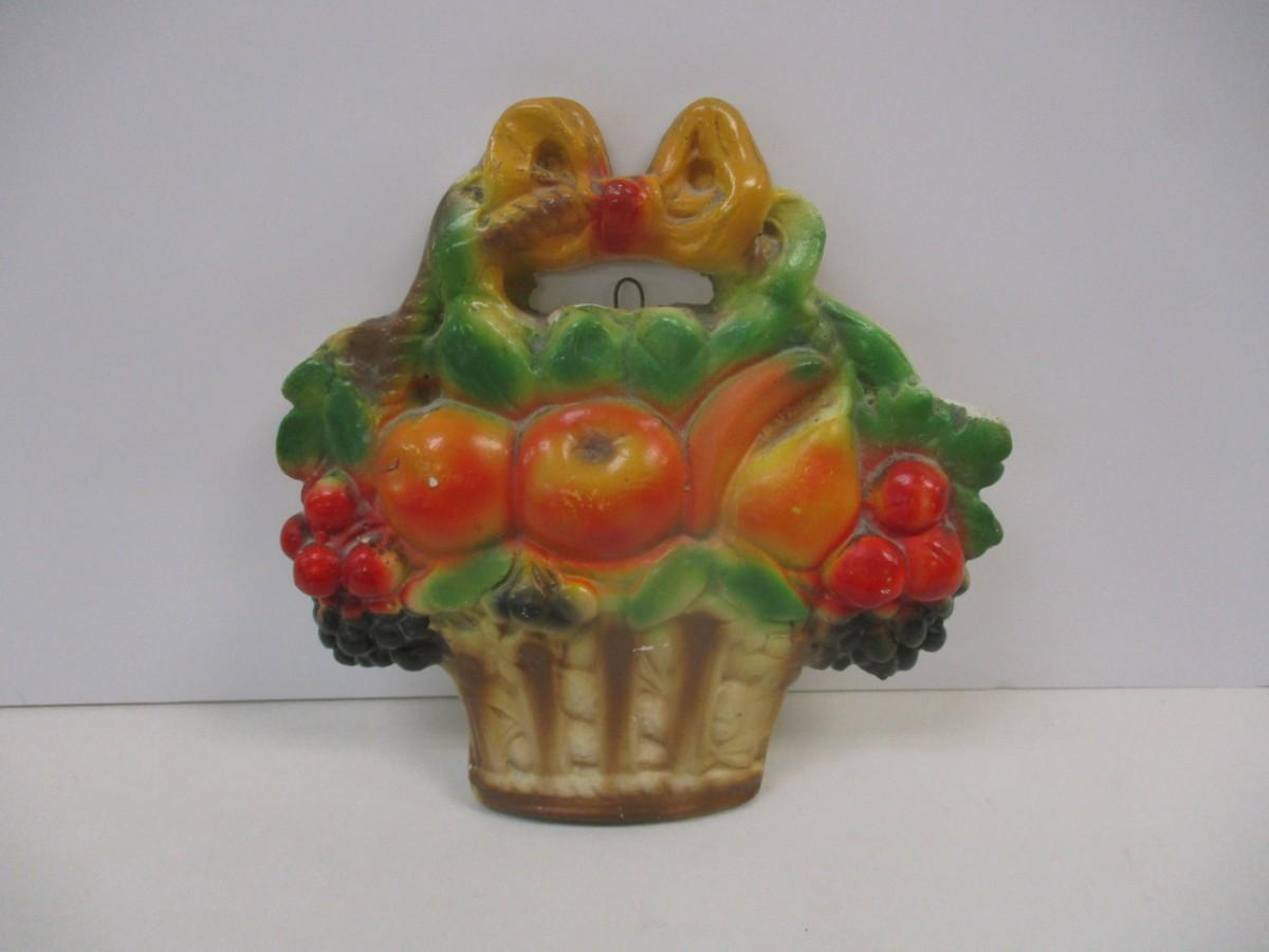 Vintage Chalkware Plaster Wall Plaque Fruit Veggies In Basket 1950's