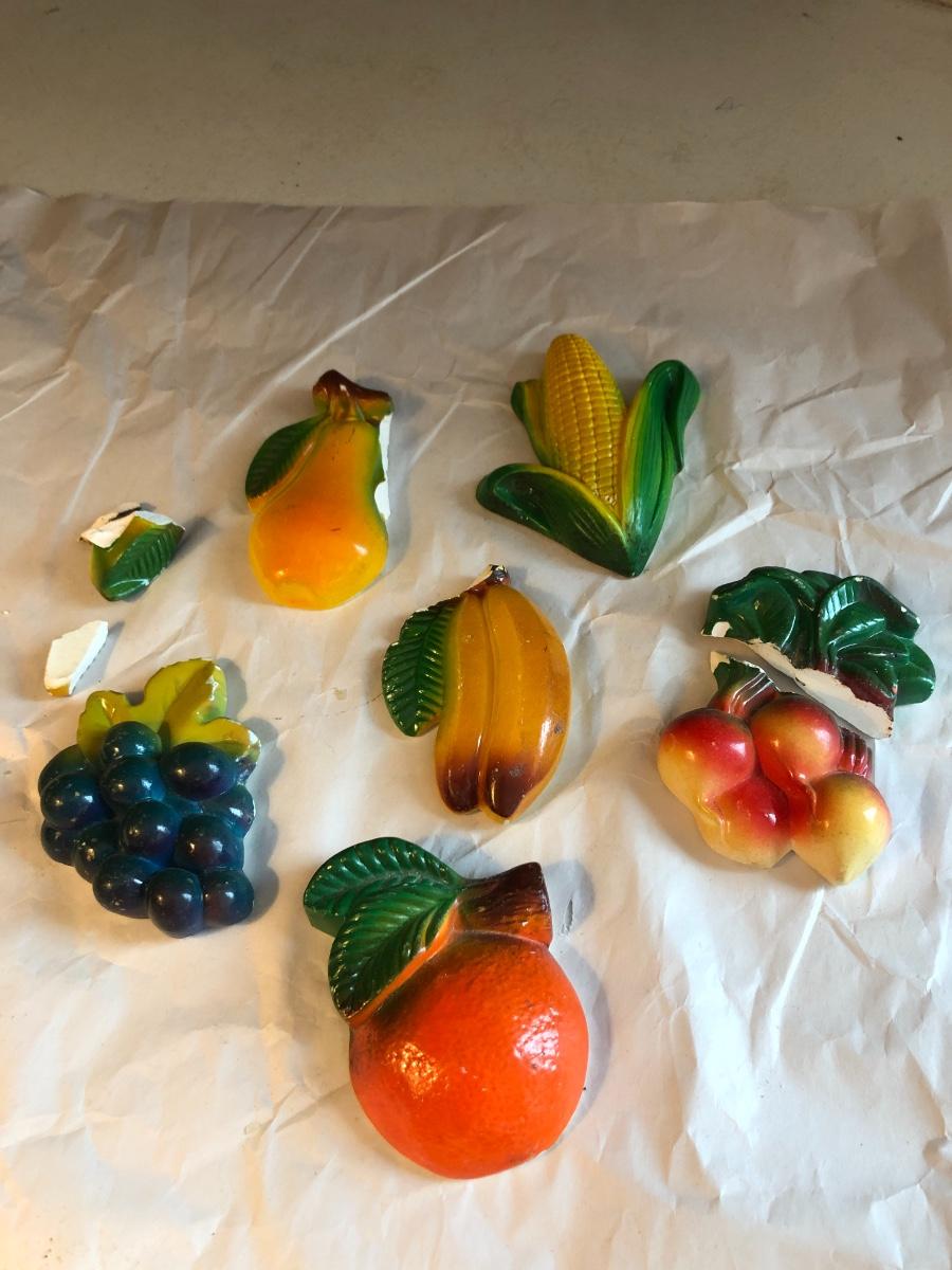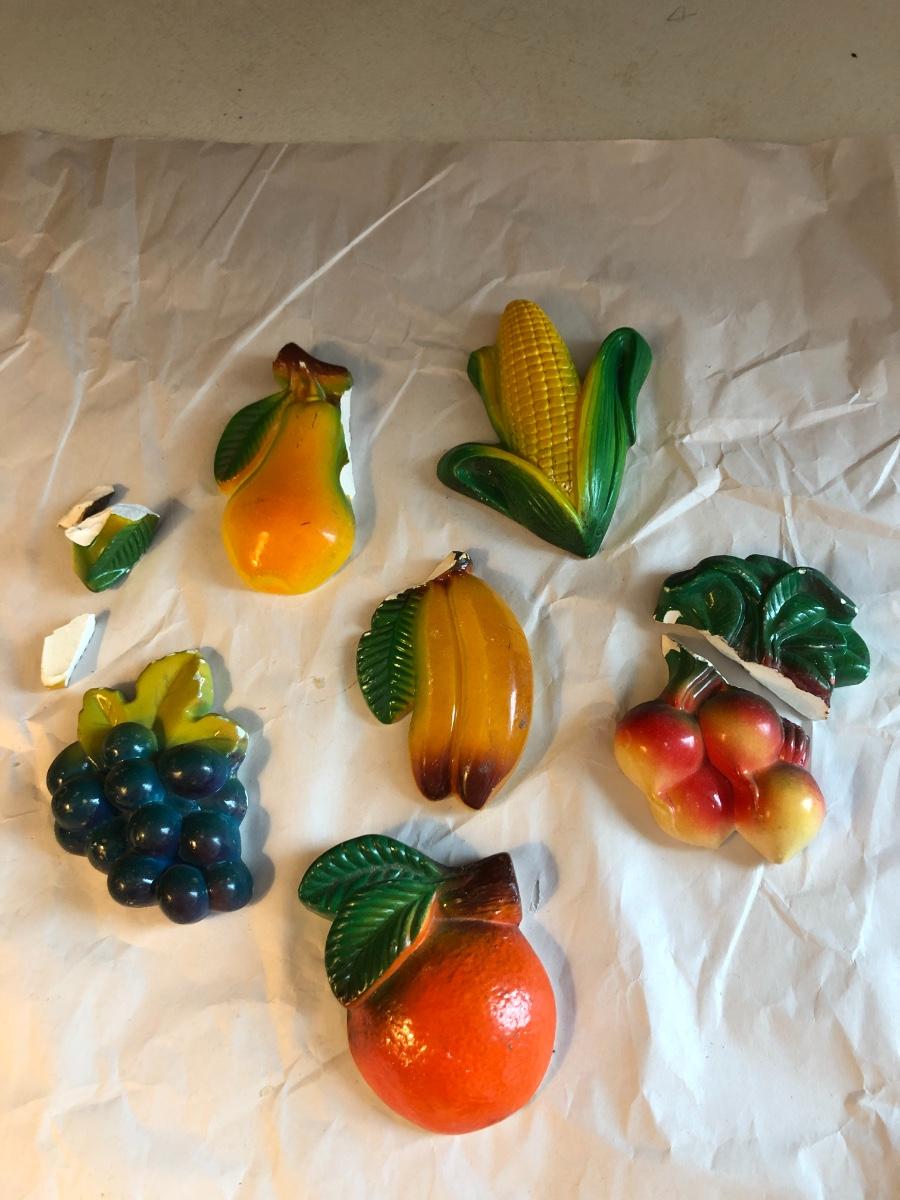 Vintage Chalkware Vegetables Wall Plaques/Hanging Kitchen Art MCM
