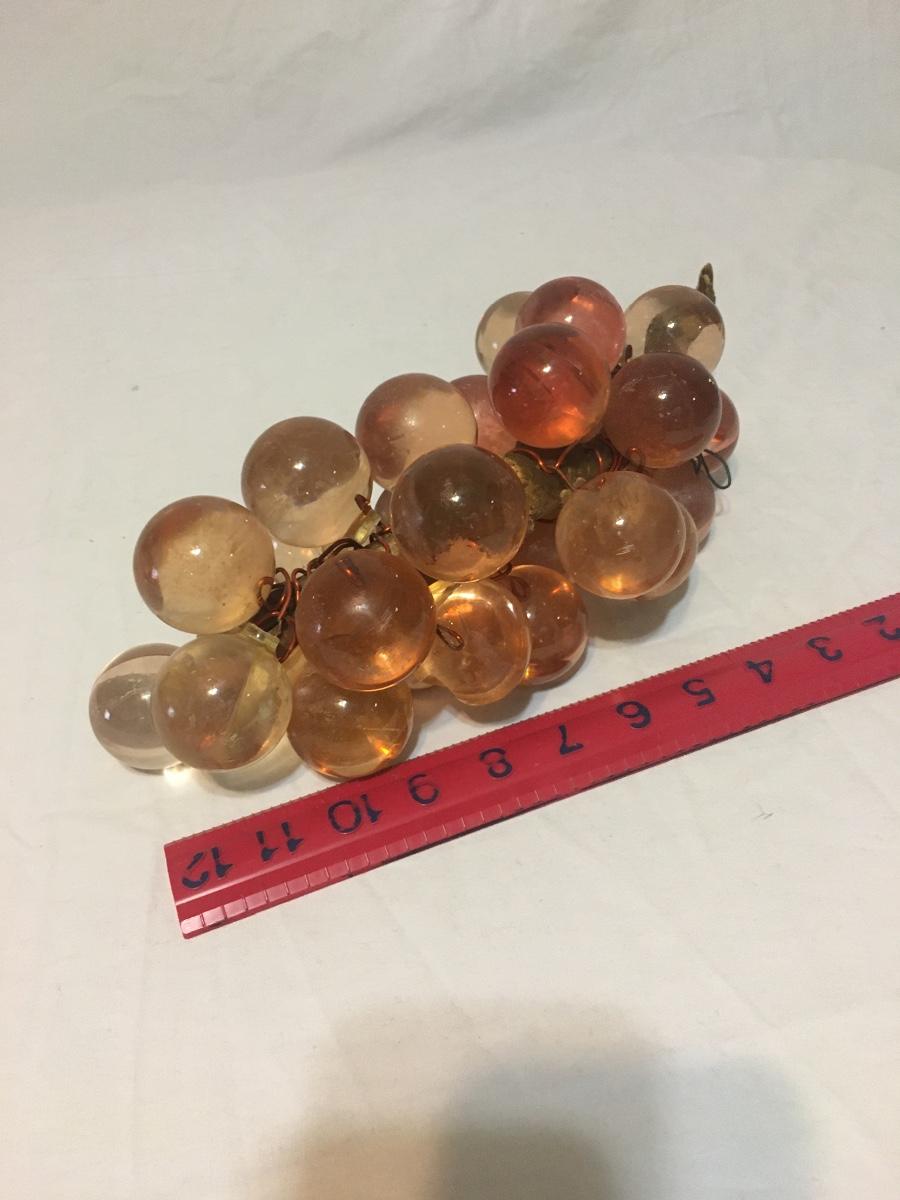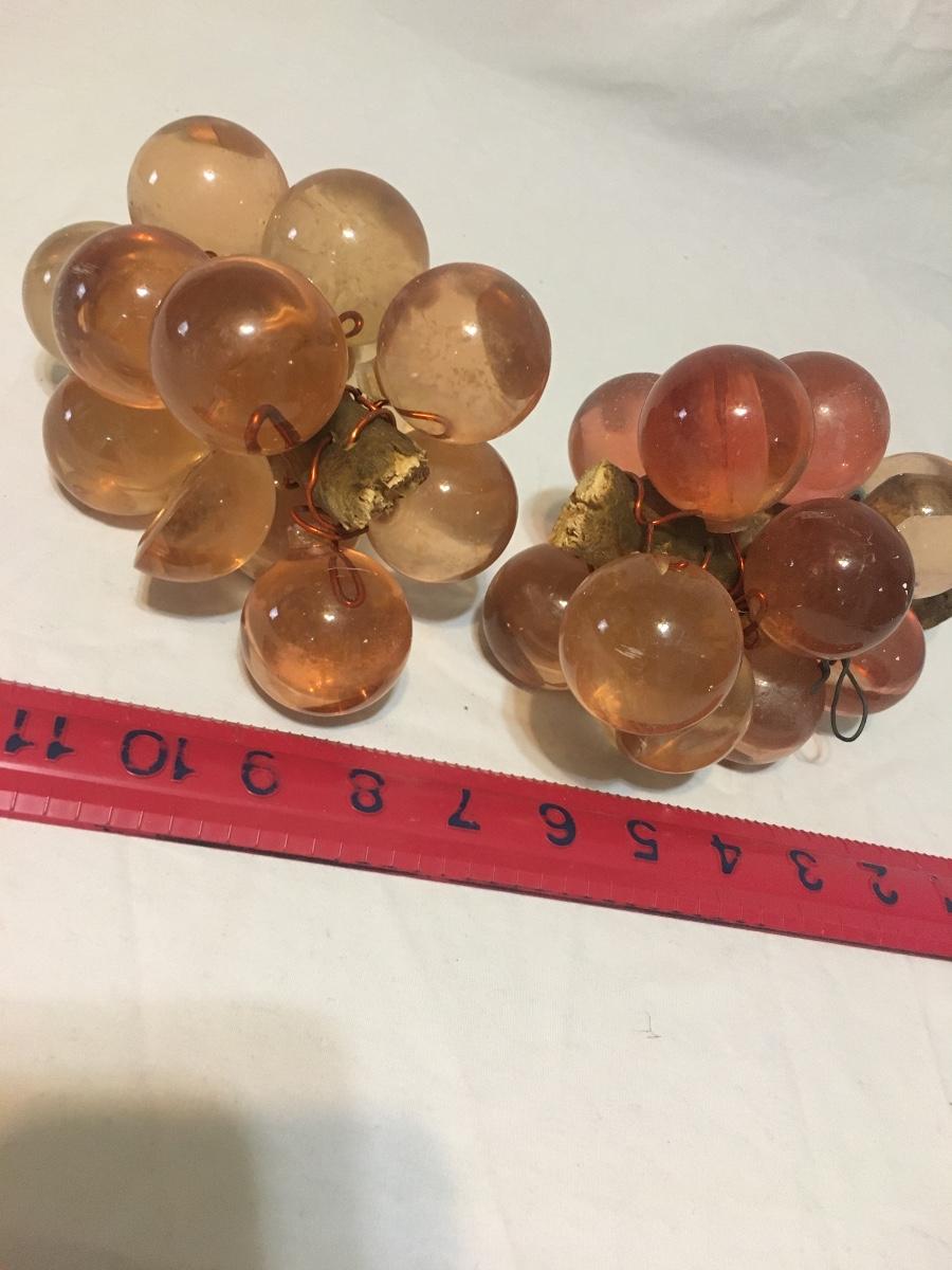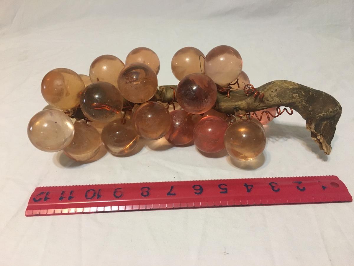 VINTAGE CHAMPAGNE/PINK  LUCITE GRAPE CLUSTER WOOD STEM 13” MCM 50 60’S  Grapes