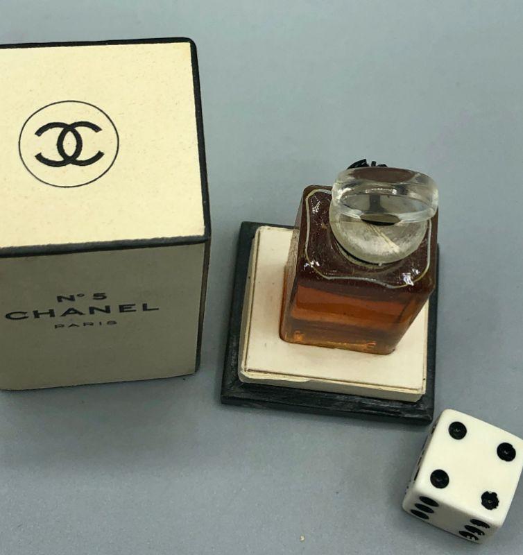 Vintage mini bottle of Chanel No. 5. Opened box but bottle is full.