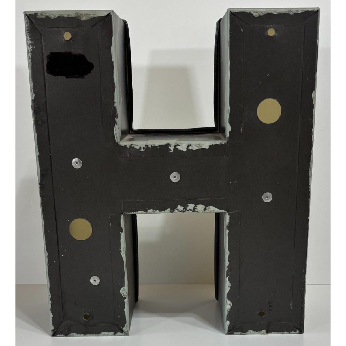 You get one letter "H" that is in good condition with minor wear. This was built to light up, but does not include a chord, nor bulb. It stands approximately 12.5" tall, is 10.25" wide, and is 4 7/8" deep. The white is plastic and framed by plastic and affixed to the rest of the letter, which is metal. Please see all pictures. Thank you for looking. As a reminder, if this is a lot, we do not break up lots. Also, all items are prepacked, so each item is sent individually. Any item that qualifies for media mail and weighs over one pound will be shipped via media mail. Otherwise, the item will be shipped USPS ground advantage, or UPS ground. Shipping for this item is $14.00. Items ship within two days after payment is received. Item SKU is OTH3190.