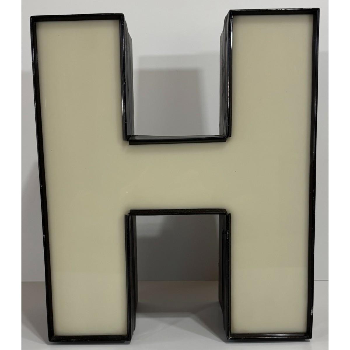 Vintage Channel Letter "H" White w/ Black Frame Metal & Plastic