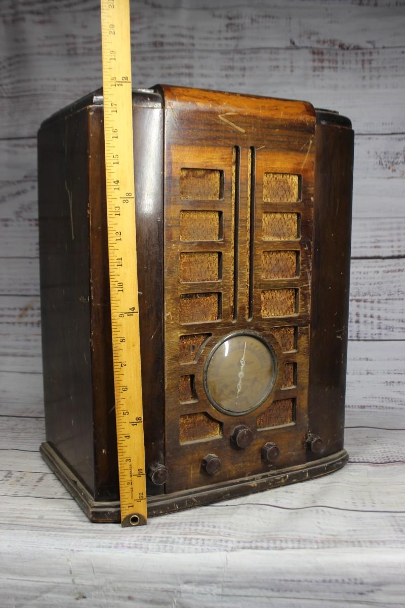 Vintage Chanticleer Radio Co. All Wave Tombstone Radio Model 650, there is some wear to the radio, but there is no significant damage and is in overall fair vintage condition. The power cord has been removed or torn off from the radio and could not be tested, check pictures for more details and for sizing.