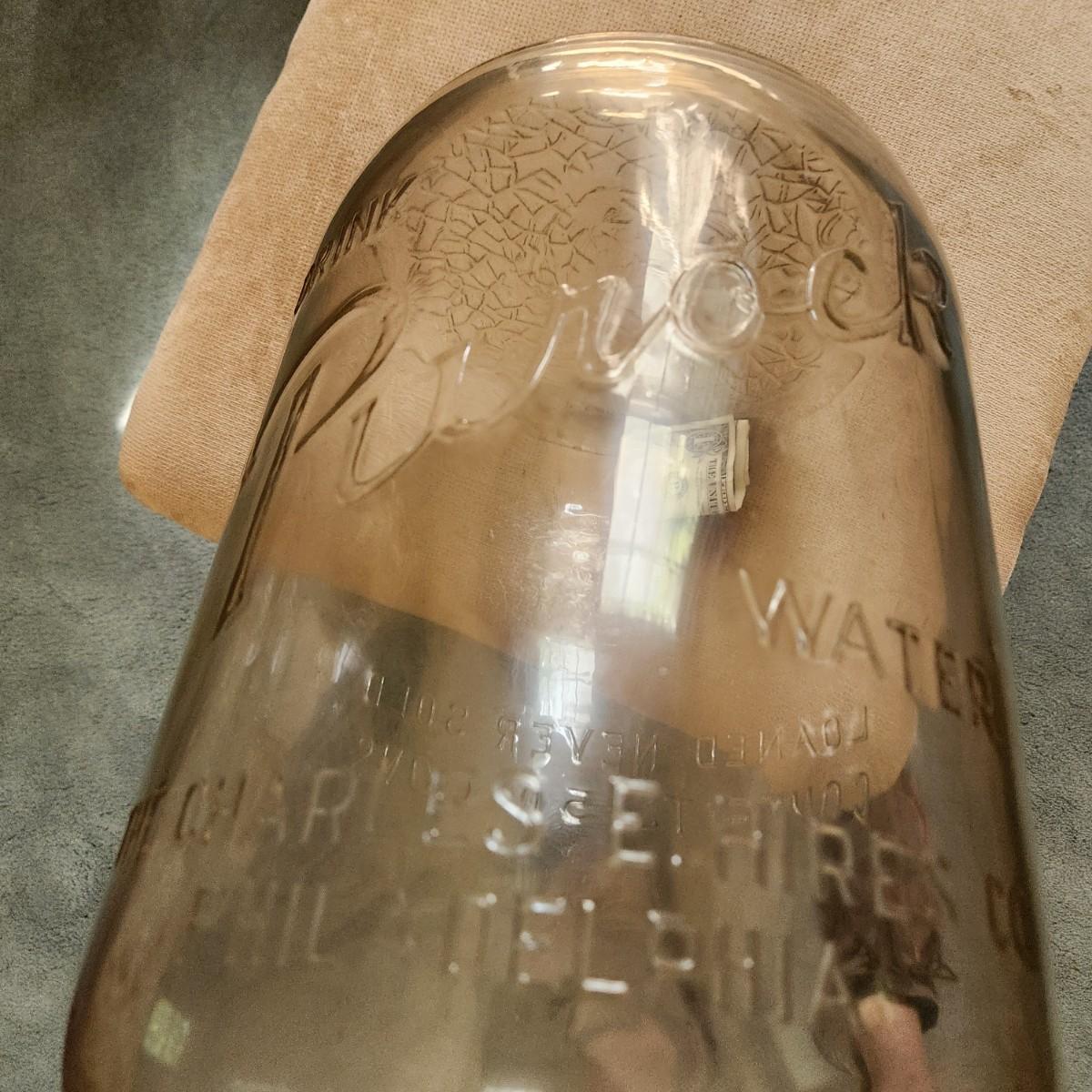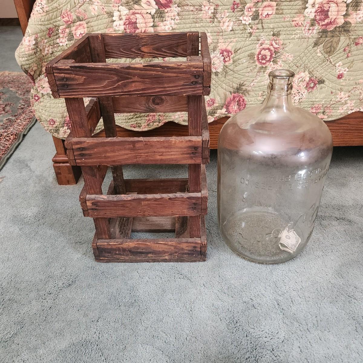 Vintage Charles E. Hires Co Philadelphia PA Purock Owen Illinois Water Jug Carboy w Wooden Crate
