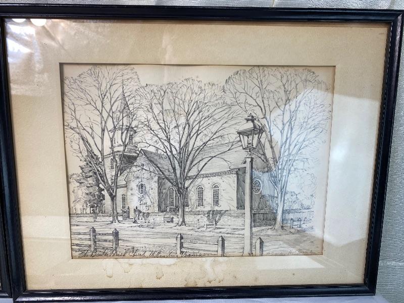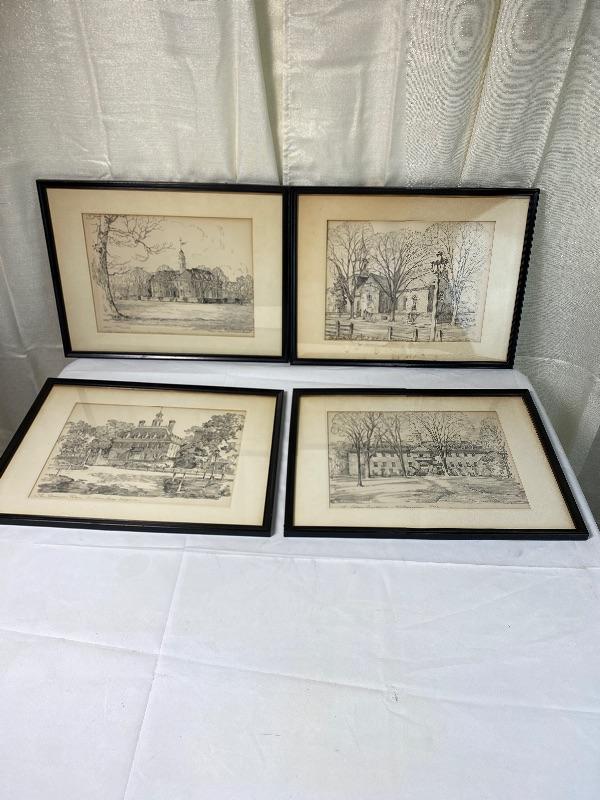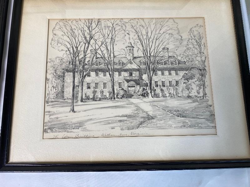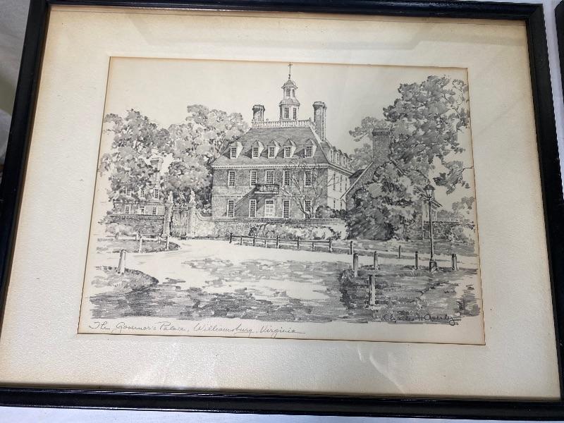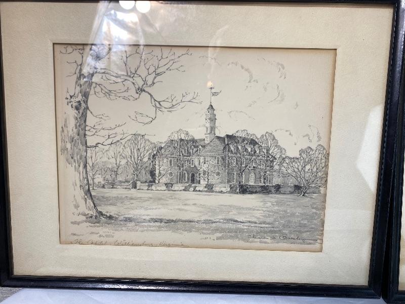 Lot #38 Vintage Charles H. Overly Framed Williamsburg Virginia Pencil Prints