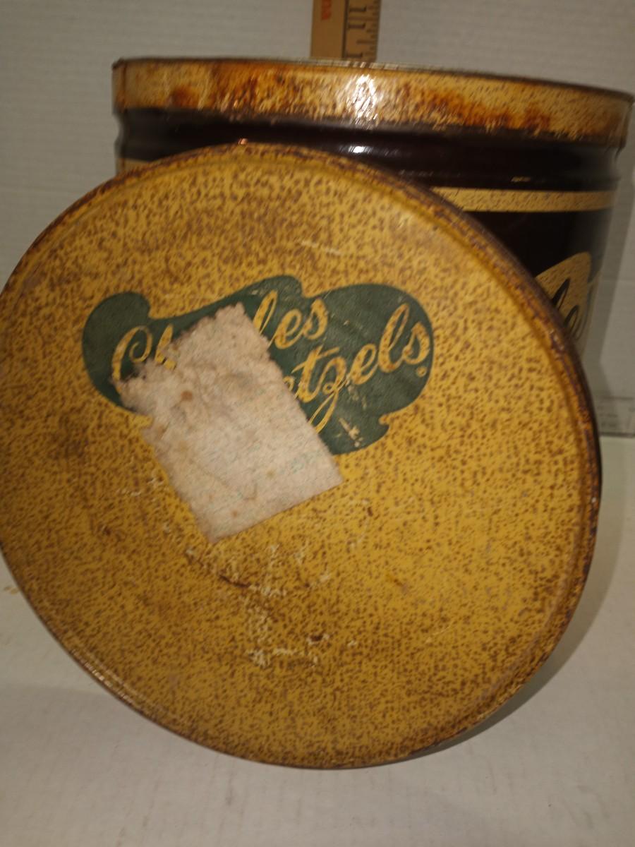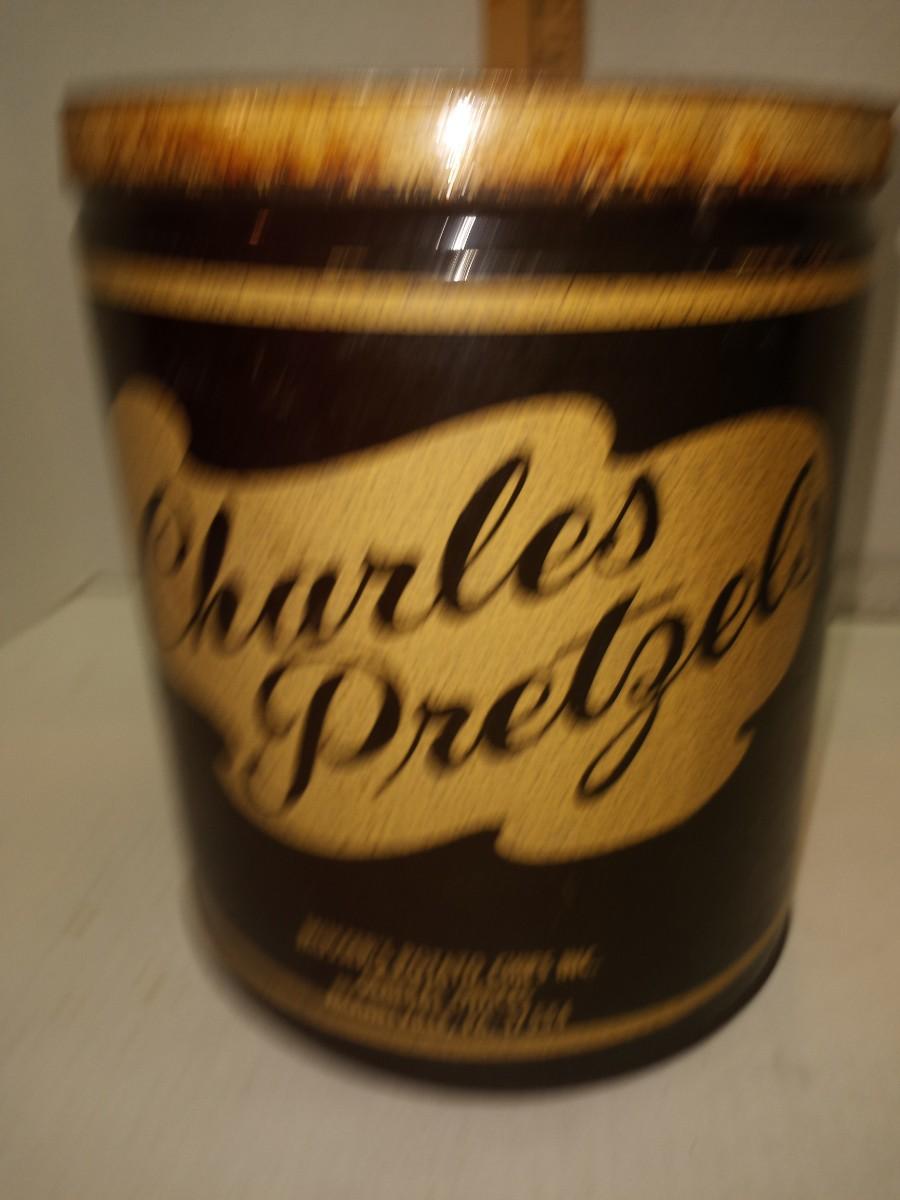 VINTAGE CHARLES PRETZELS TIN - MOUNTVILLE PA ADVERTISING - PRIMITIVE DECOR