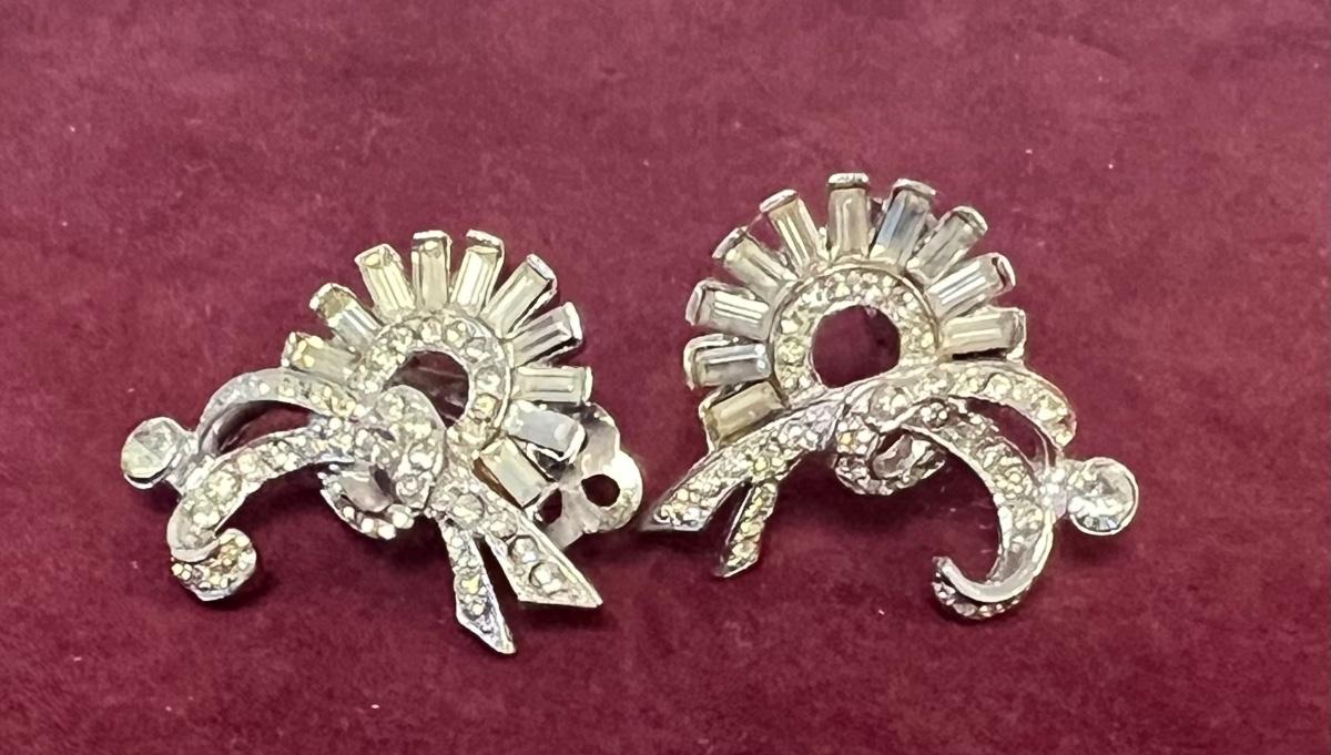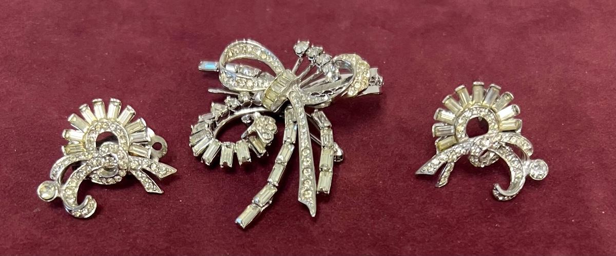 Includes a brooch and a pair of clip-on earrings. The brooch is signed, but the earrings are not. Measurement of brooch: 2.25"W. [LA]
