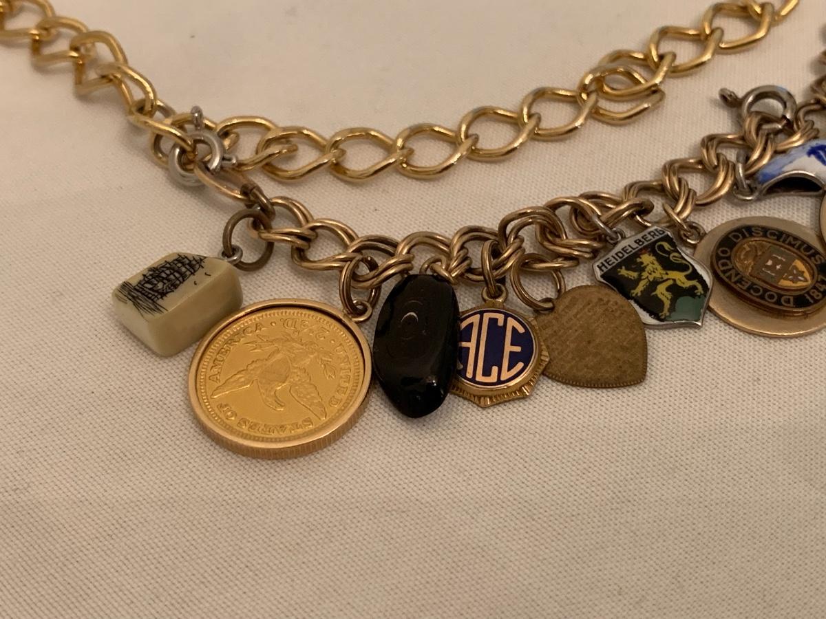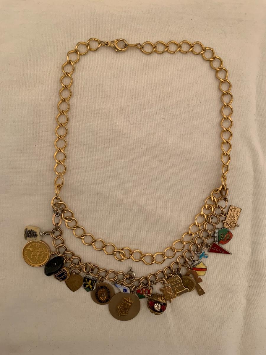 Vintage charm necklace/bracelet with a lifetime collection of charms.