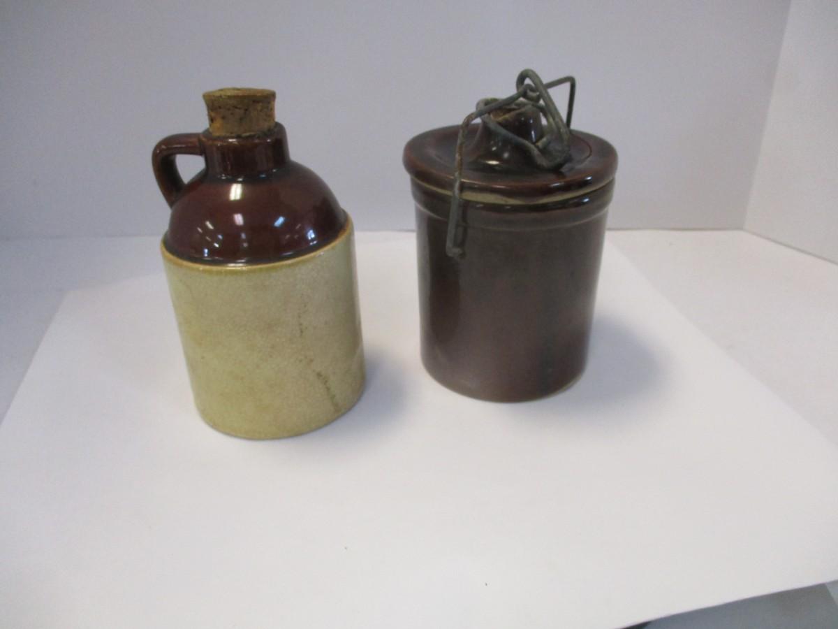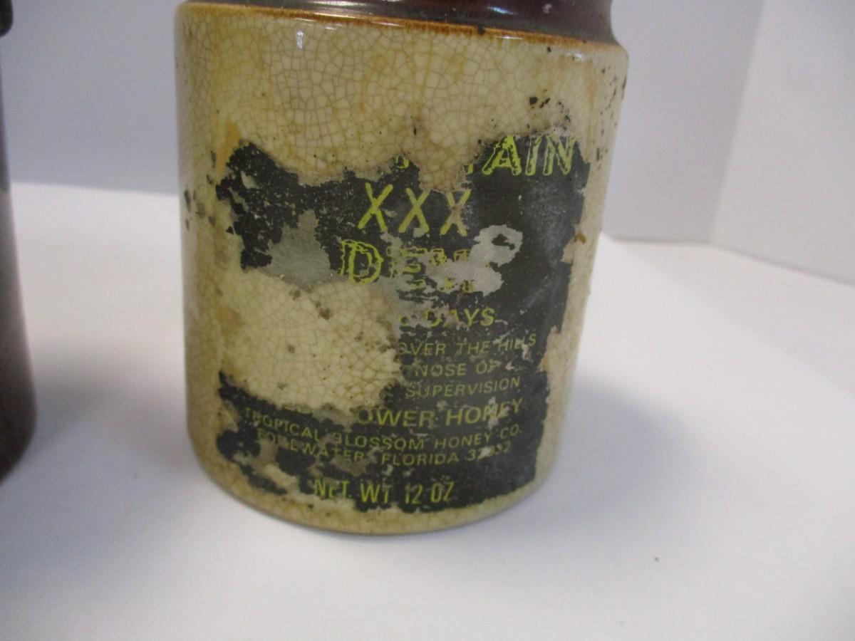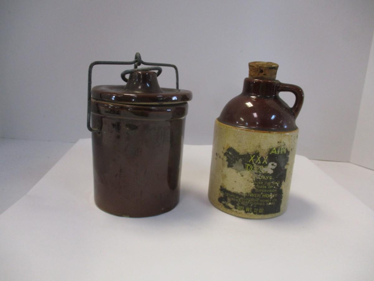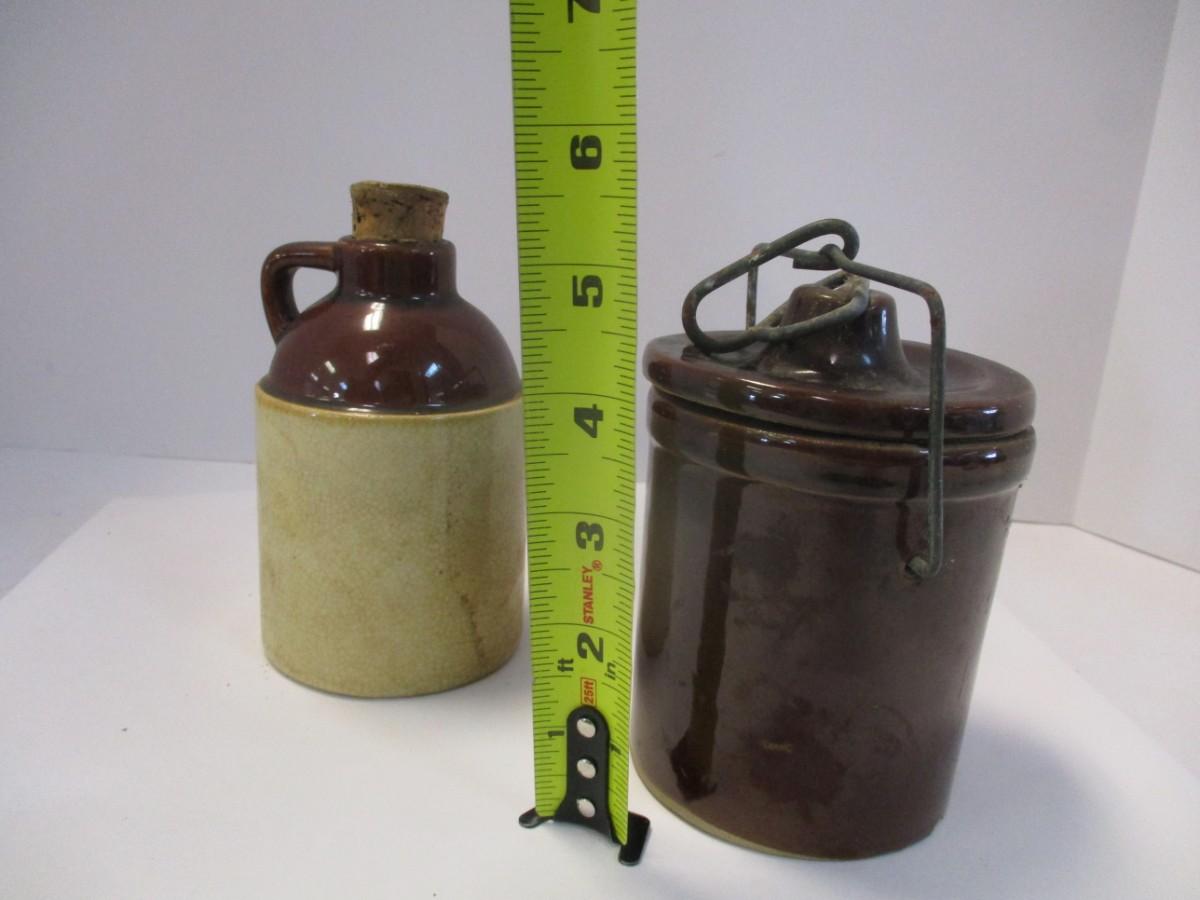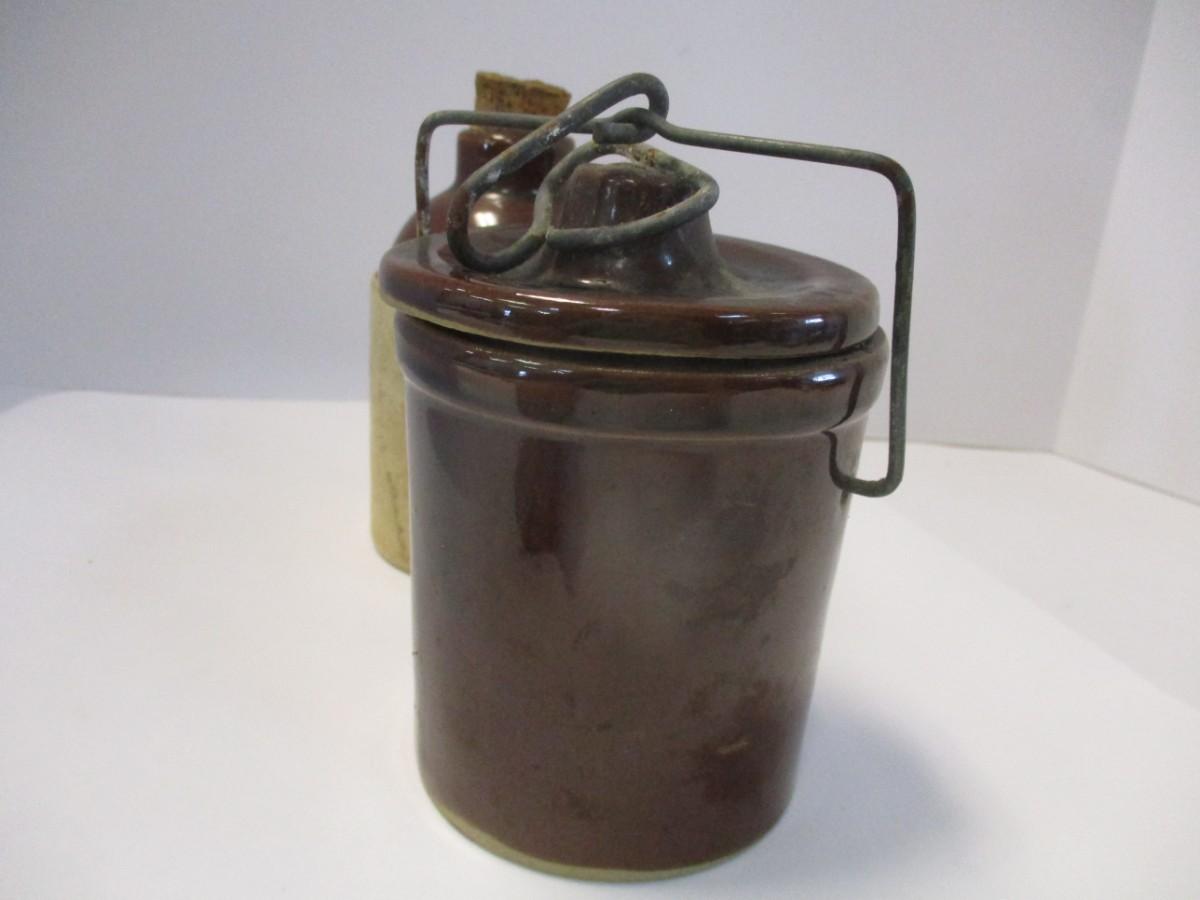 Vintage Cheese Crock w/ Locking Lid & Vintage Small Crock With Cork Honey Stoneware
