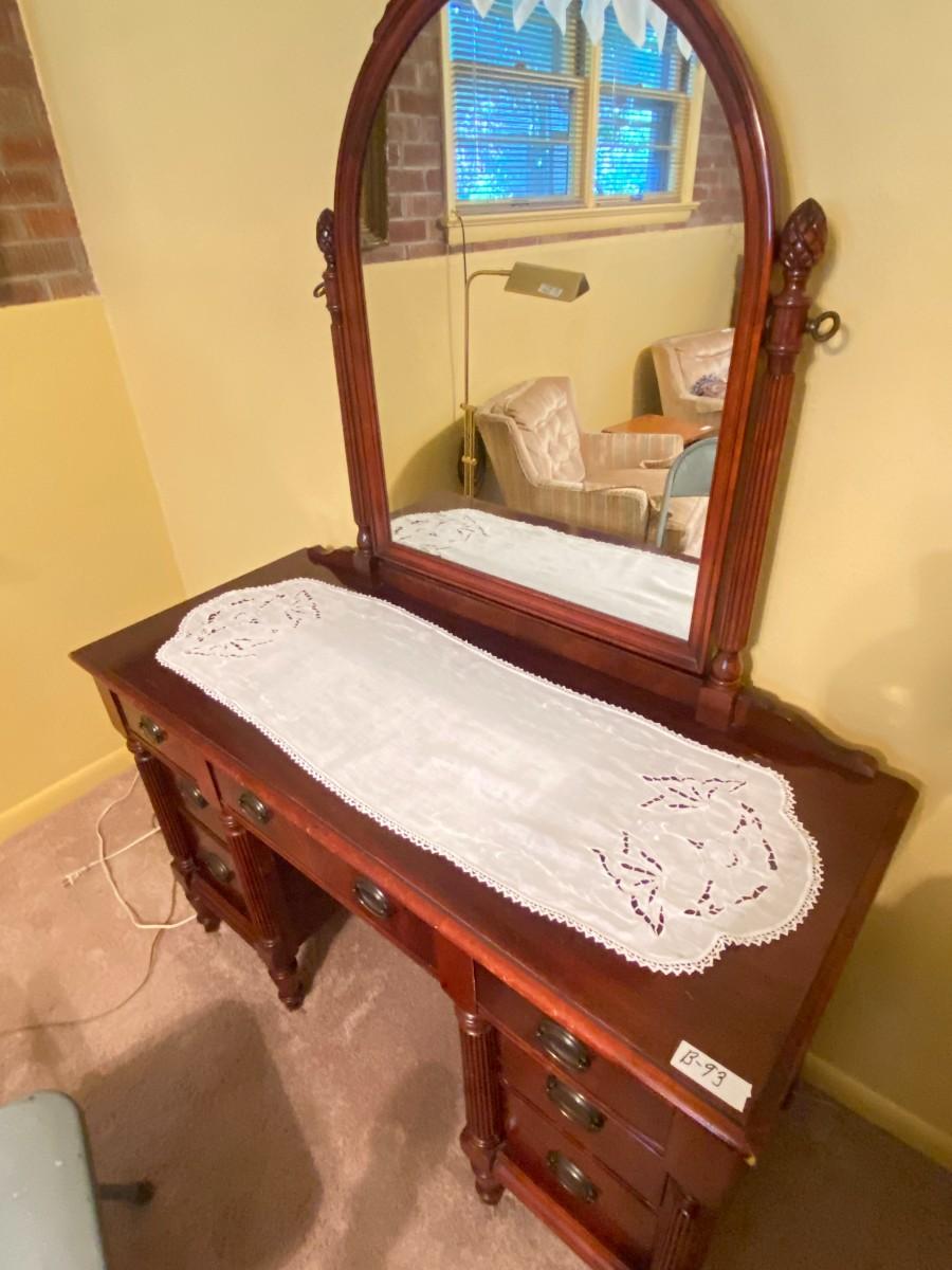 Dresser/Mirror & Bench. 7-Drawer (Sold separately are matching two twin beds, Chest and Lamp Table at lots 91 and 83).