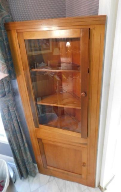 Vintage Cherry Wood Corner Cupboard 29"x16"x69"