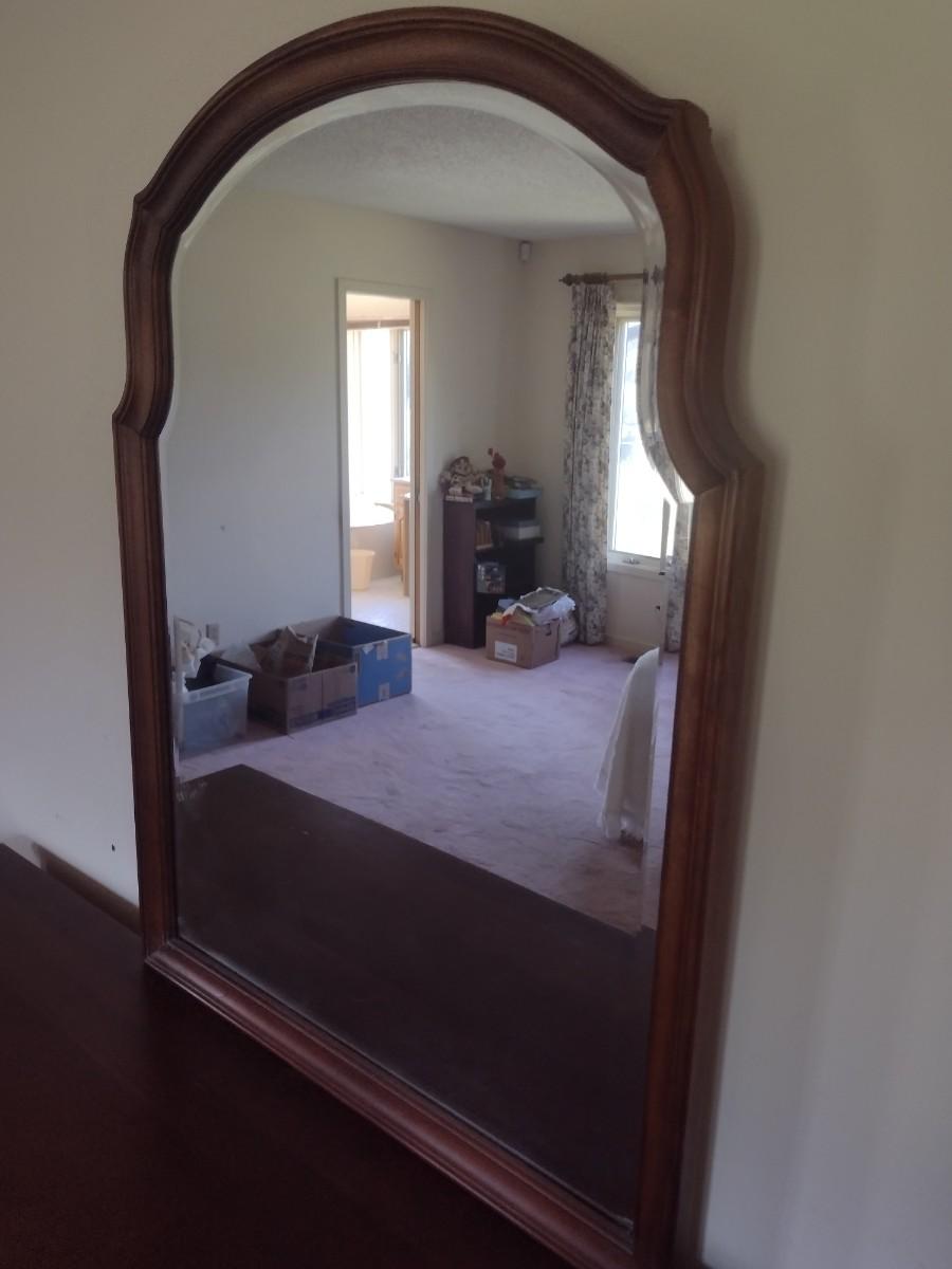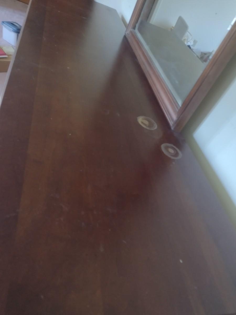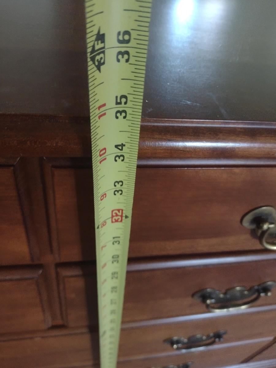 Vintage Cherry Wood Finish 12 Drawer Stretch Dresser with Mirror some wear and staining on finish as shown.
