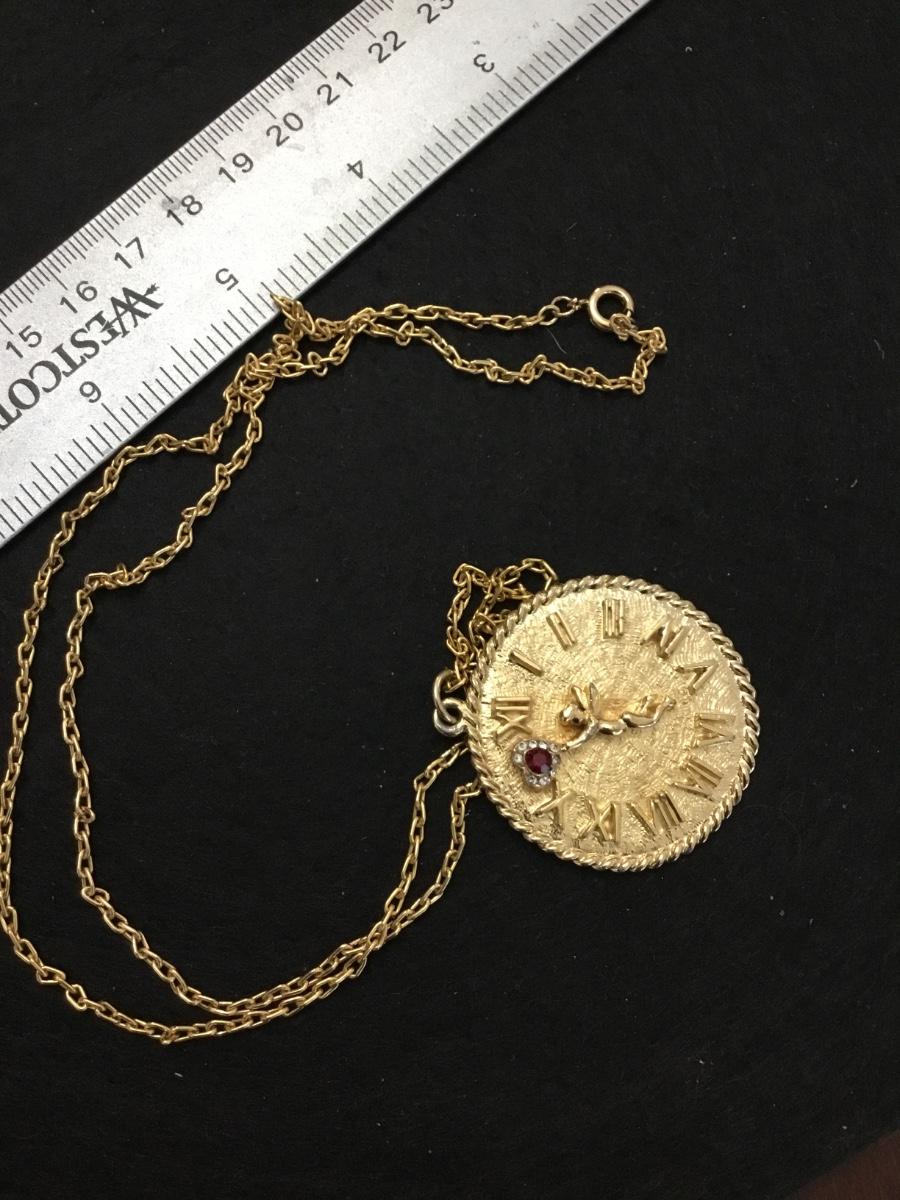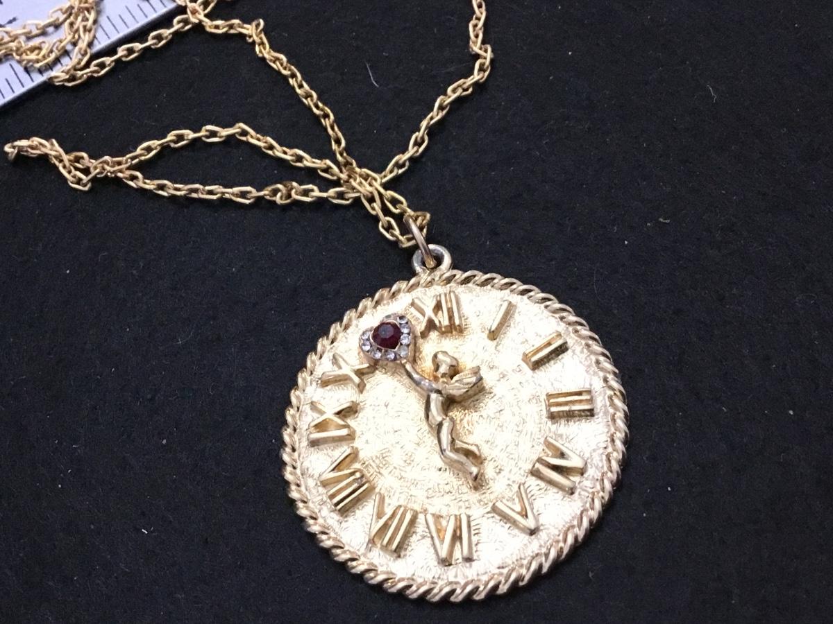 Vintage Cherub Clock Pendant with Rhinestones