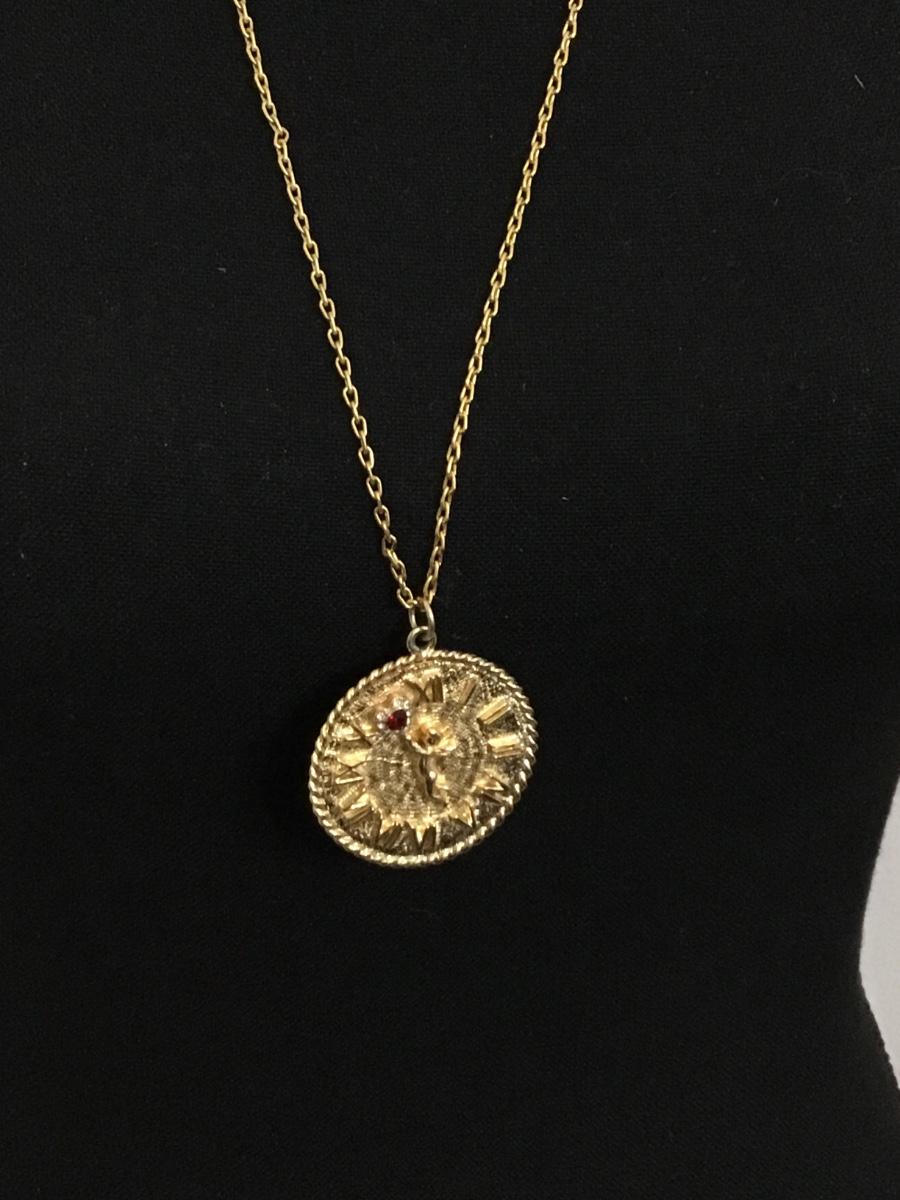 Vintage Cherub Clock Pendant with Rhinestones