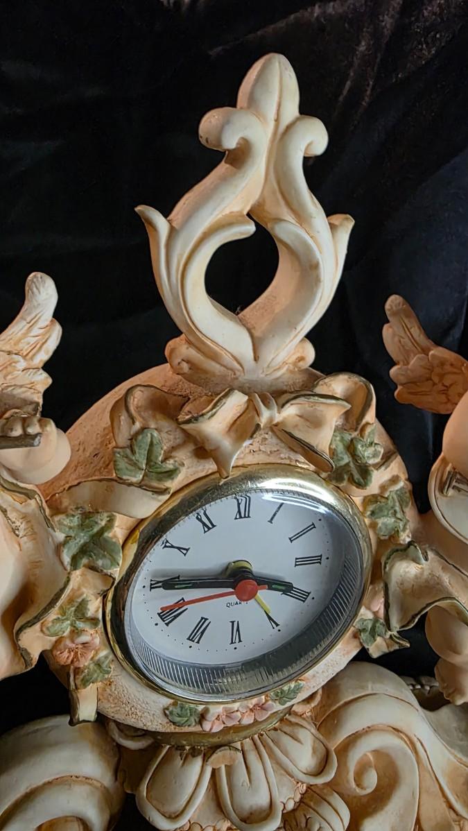Buy on our website at: https://treasuresofbako.com/products/vintage-cherub-mantel-clock-ornate-rococo-floral-table-clock-with-dual-angels-and-roman-numerals?utm_source=copyToPasteBoard&utm_medium=product-links&utm_content=web